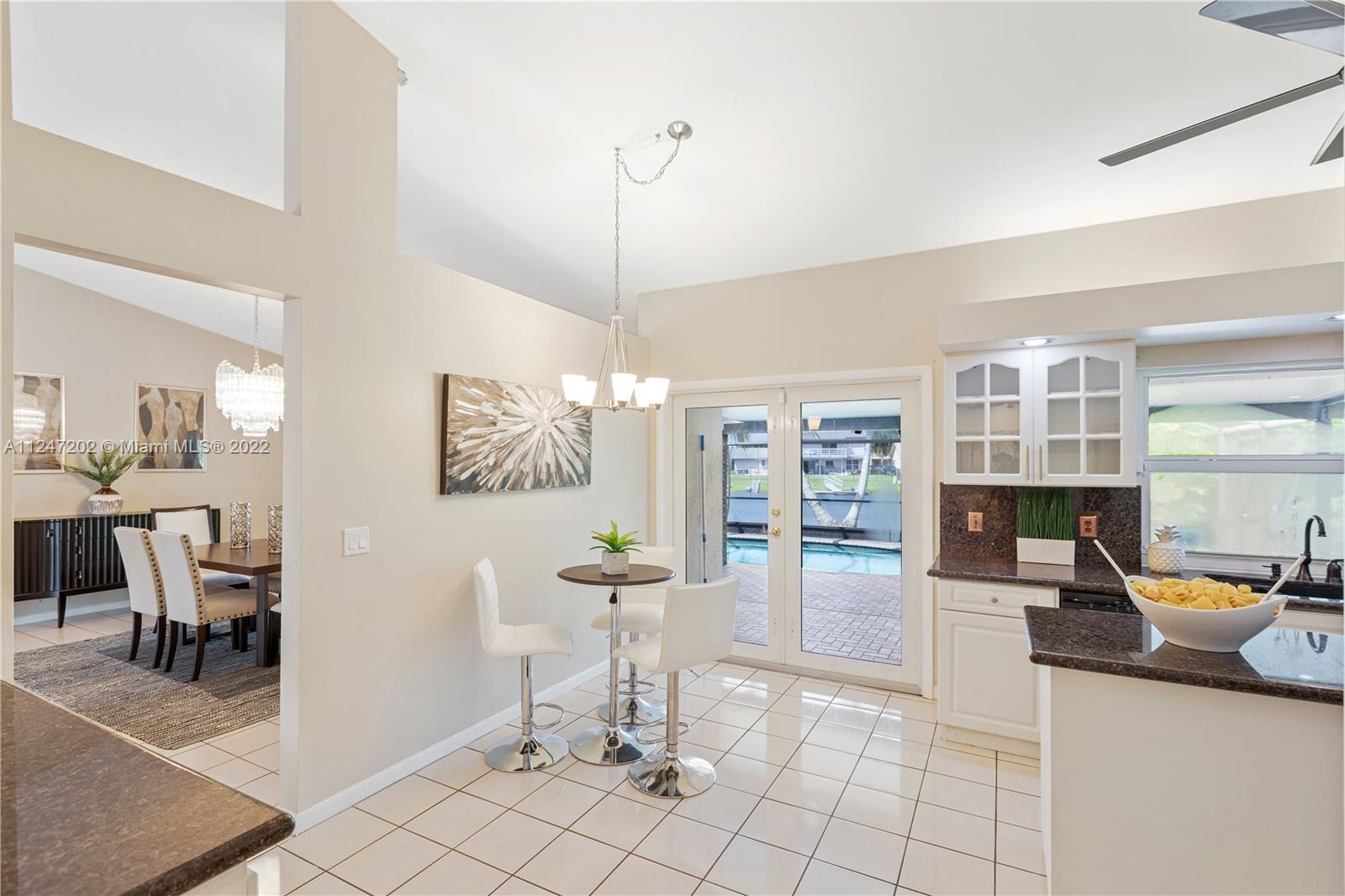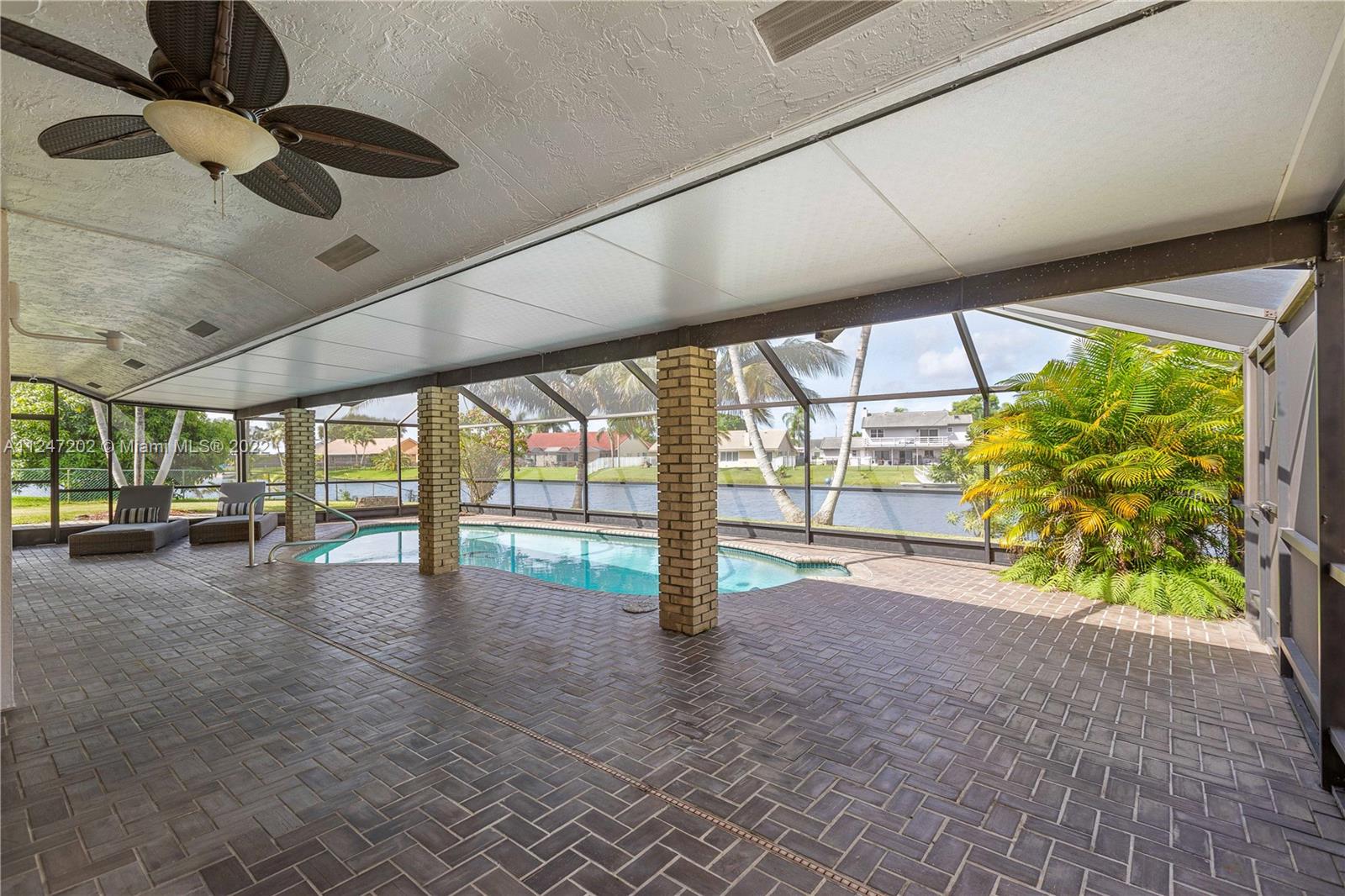 Impeccable home on lovely oversized lot by a tranquil lake. Watch the sun set from pool deck under extended roof. Heated pool/new screens/new sprinklers. HIGH IMPACT GLASS ON 3 SETS OF FRENCH DOORS/ALL WINDOWS. HURRICANE SAFE GARAGE DOORS. Updated kitchen with granite counters. NEW REFRIGERATOR & STOVE, WASHER & DRYER. Huge living/dining room with vaulted ceilings. Elegant master bedroom with Plantation shutters, crown molding. Master bath with walk-in shower, roman tub. A/C system only 4 years old. Newer carpets/fresh paint. Partial garage conversion allows for air conditioned utility room/office as well as space to park your car on epoxied floor. Circular driveway for 8 cars. Easy access to I-75, hospitals, theaters, restaurants & shopping. EXCELLENT SCHOOLS. Low HOA fee.