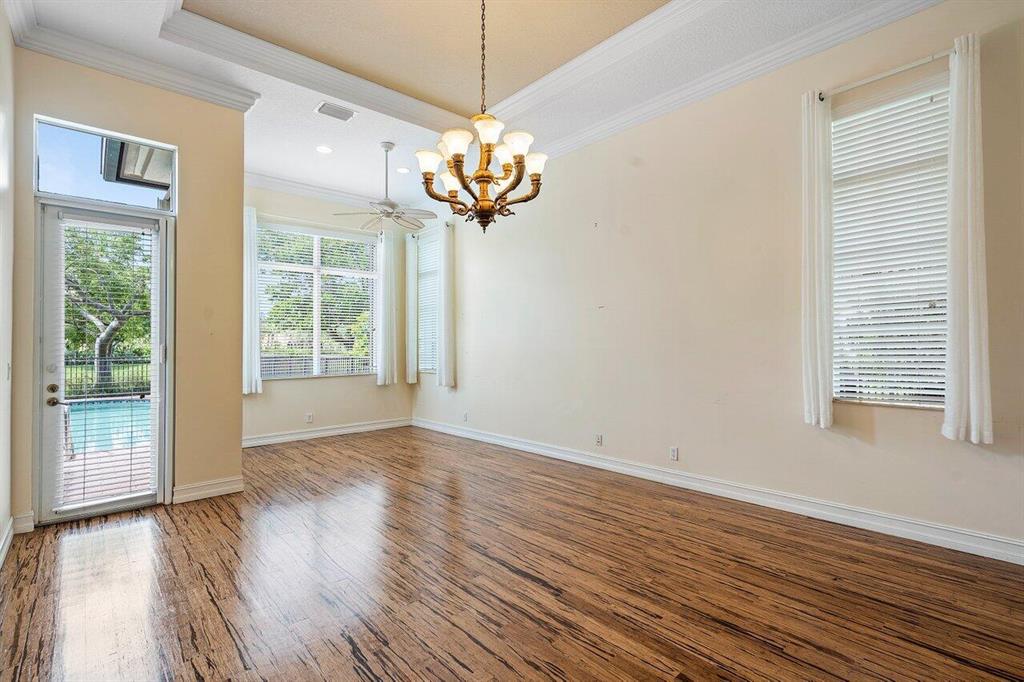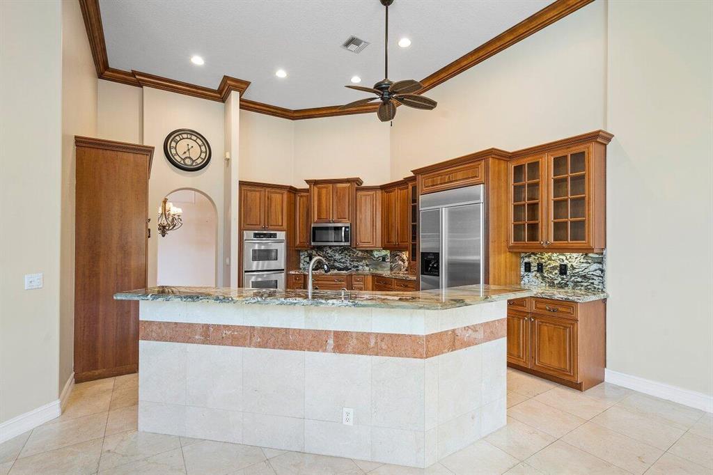 Located on a picturesque cul-de-sac in the very desirable Edgewood Community at Heron Bay is this wonderful one story, 5 bedroom/3 bath home offering a formal dining room, eat in kitchen with granite counter & backsplsash, cherrywood kitchen cabinets and a gas range. Marble and bamboo floors, volume ceilings and custom crown molding throughout. A private backyard offers exceptional outdoor living with scenic lake views, pool, and a screened in porch with an outdoor summer kitchen perfect for entertaining! Heron Bay has Resort Style Amenities and is zoned for A Rated schools.