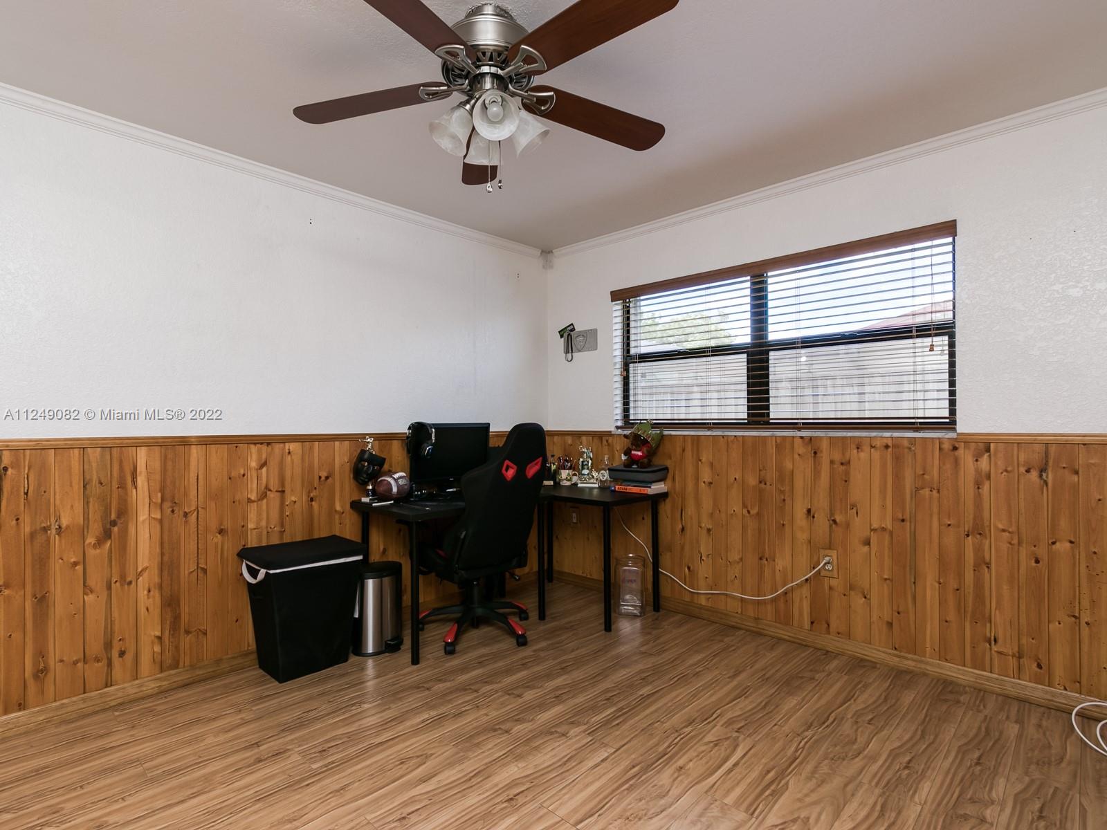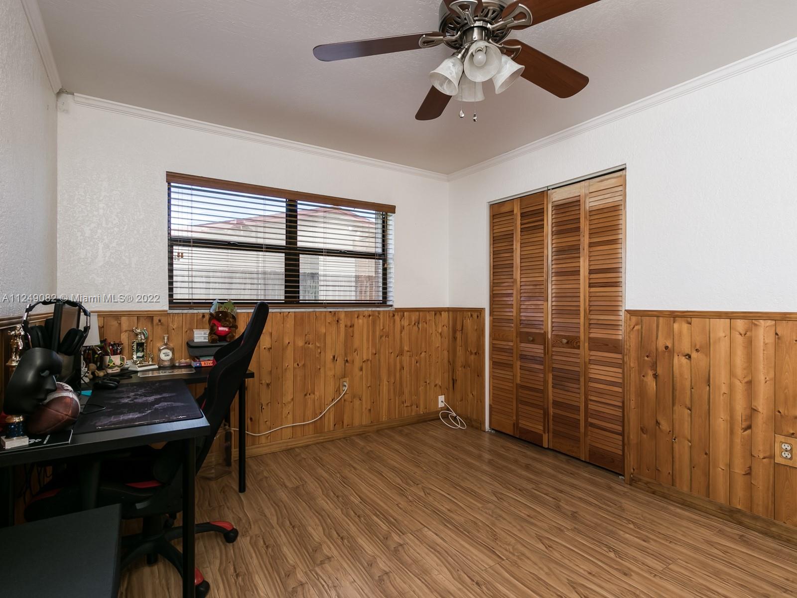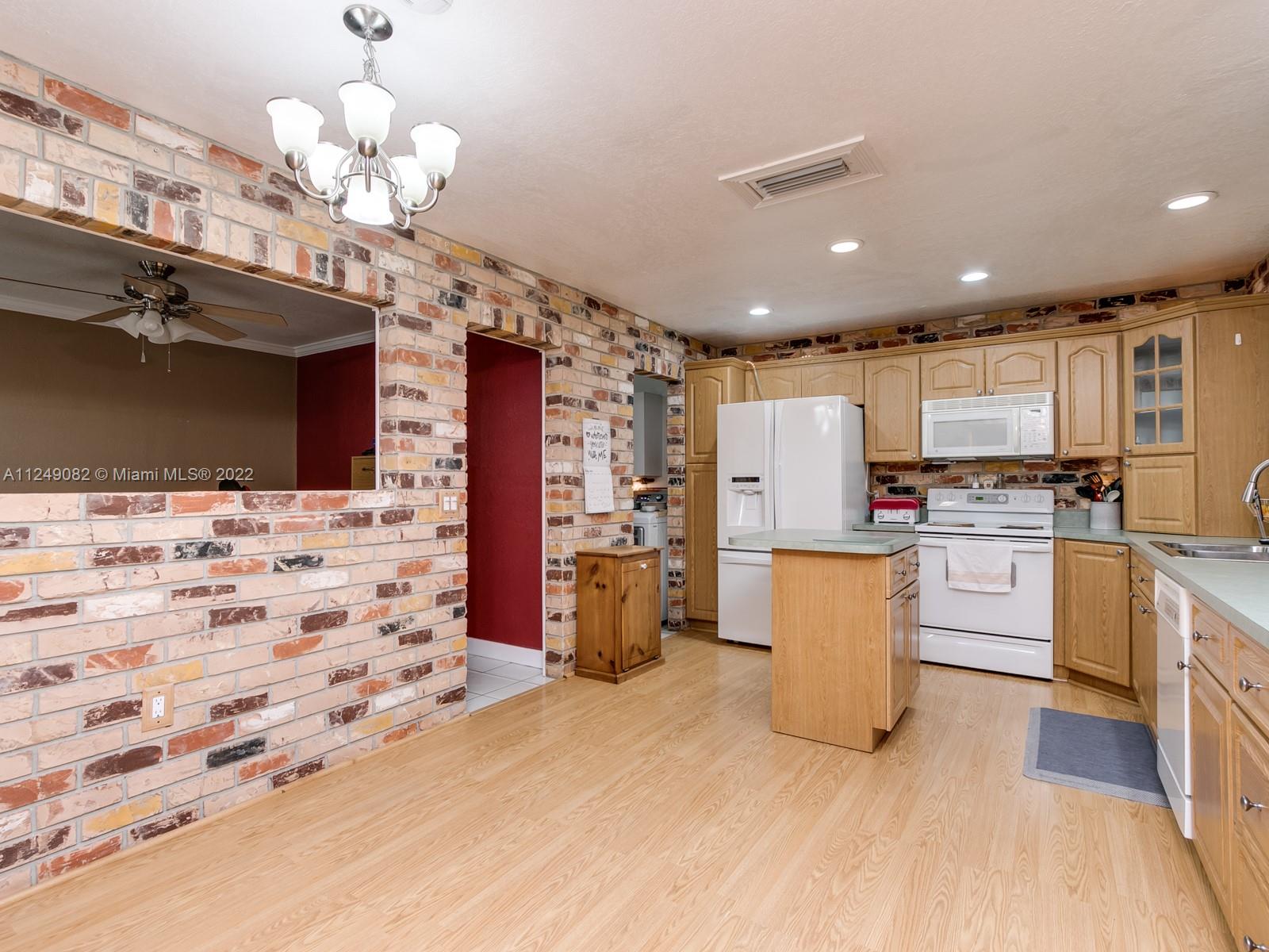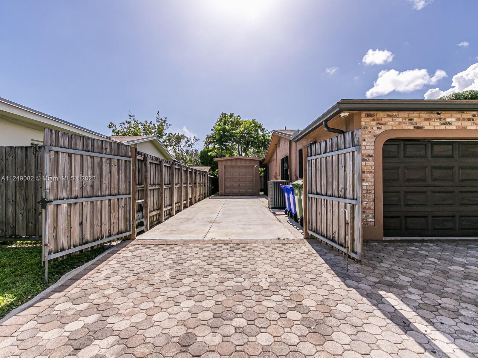 Don't miss out! SPACIOUS 4/2 home with a 2 car garage plus a separate 1 car with storage. X- long concrete driveway to store your boat and other toys while tucked out of sight behind the double gates. Brick paver driveway and patio. Formal living and dining rooms. Very large family room AND country kitchen. Knock down on walls and ceilings.NO POPCORN! Crown molding and decorative door moldings. Laminate and wood flooring. NO CARPET! Remodeled master bathroom and shower with wood cabinets and granite counter and gorgeous tile. Master has a walk in cedar lined closet. Separate electric for a generator and able to connect to an air compressor in garage. Hurricane shutters through out. This home reflects true pride of ownership! Desirable Pembroke Pines neighborhood has no HOA .Fully fenced.