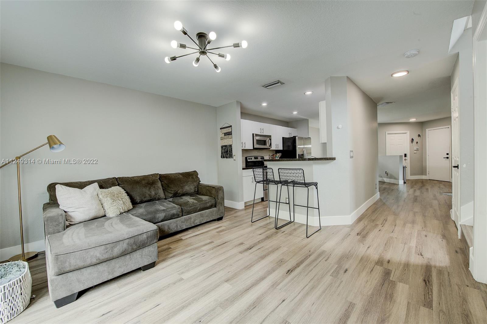 Escape rising costs and enjoy the benefits of this immaculately updated townhome conveniently located to everything you'll need in South Florida. From design-forward custom cabinetry, to the protection of a new roof and high impact windows, this townhome shows pride in ownership from every angle. Stay in with the comfort of your cool new a/c unit or step outside and bask in the sun AND the envy of your neighbors with your private oversized backyard. Step back in and you'll enjoy a plethora of tasteful updates from new flooring to custom closet cabinetry, no details were missed including a generator connector already installed. Make the move today as these townhomes are rarely ever on the market and with offers being reviewed nightly, this is one date you can't afford to be late for!