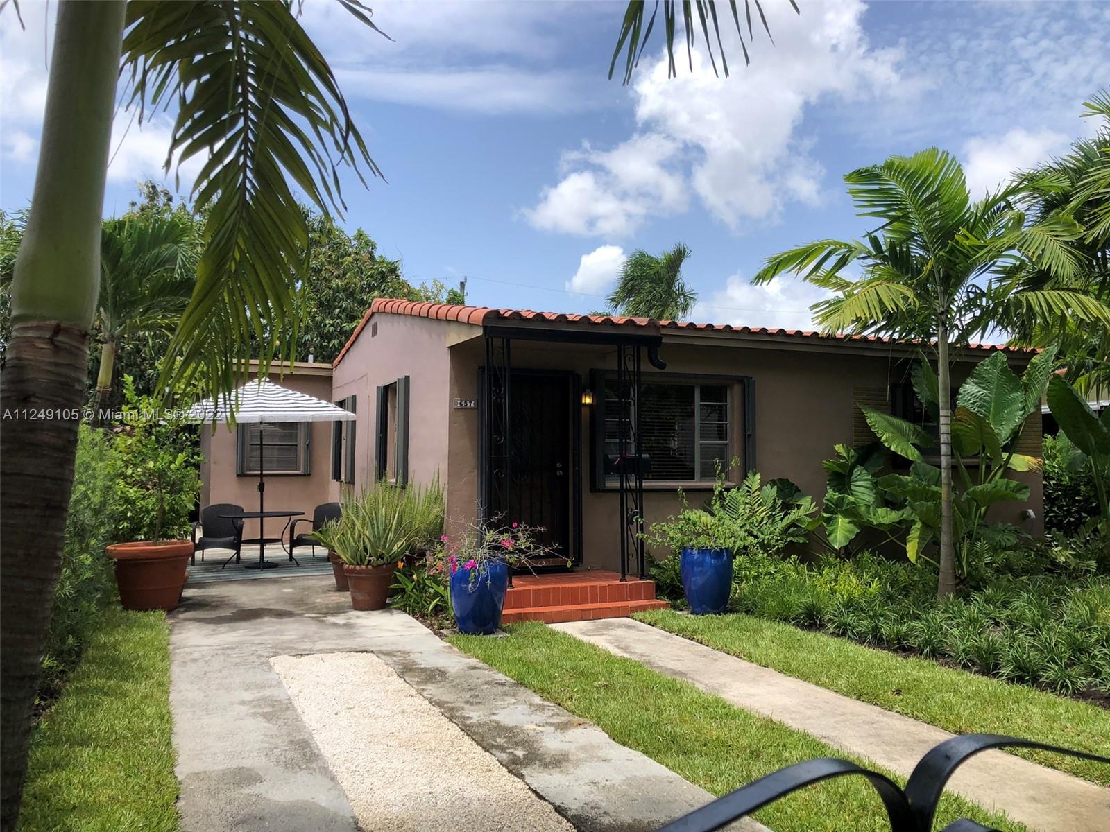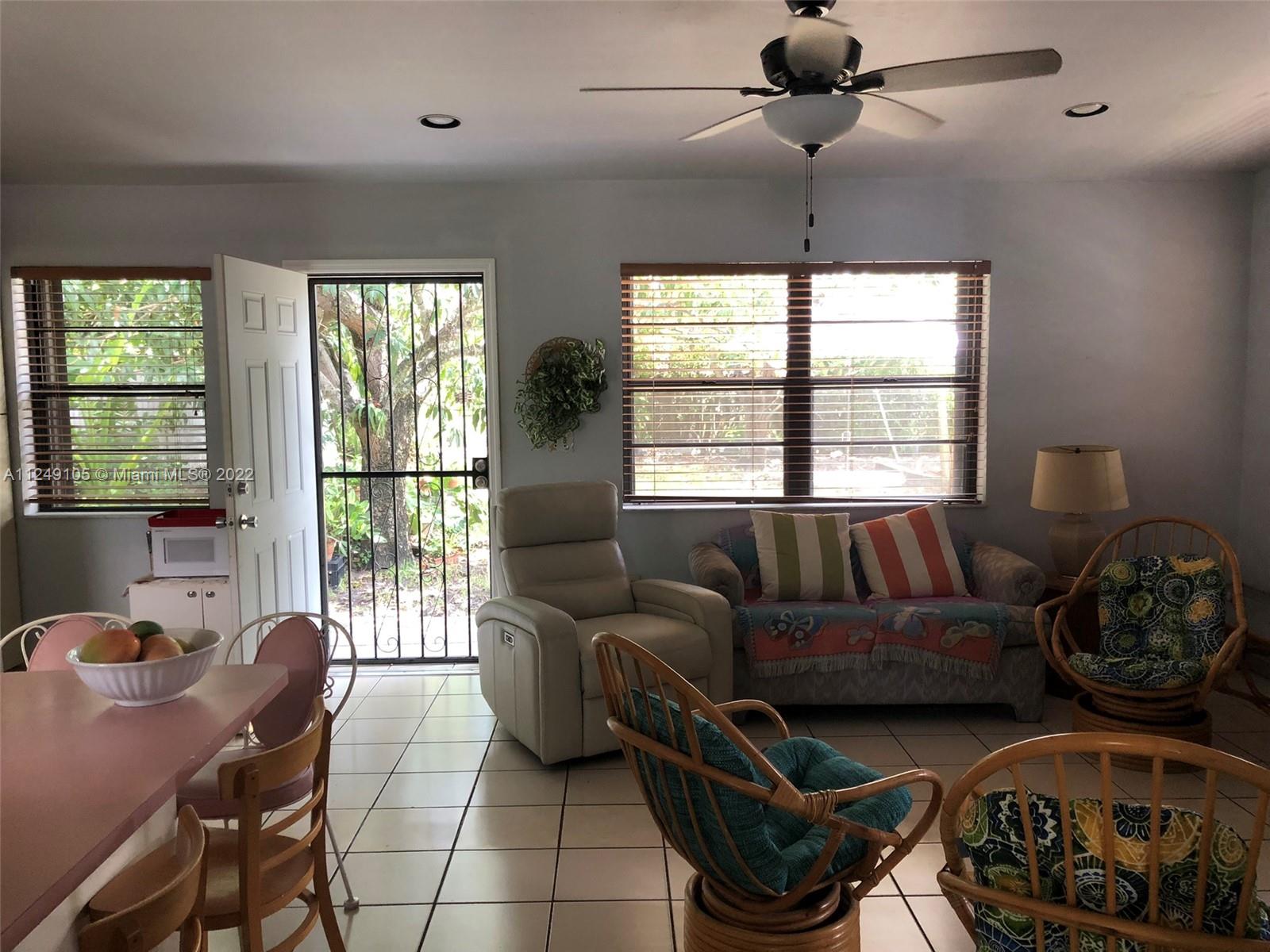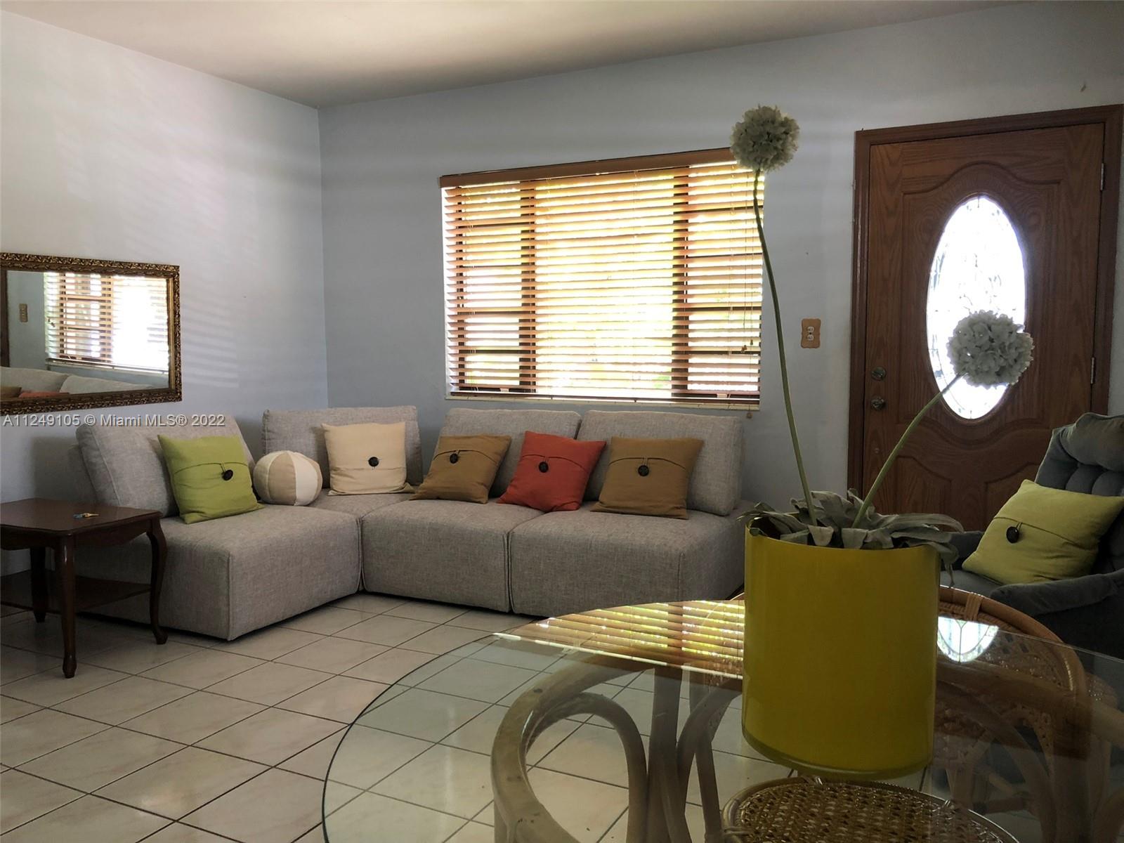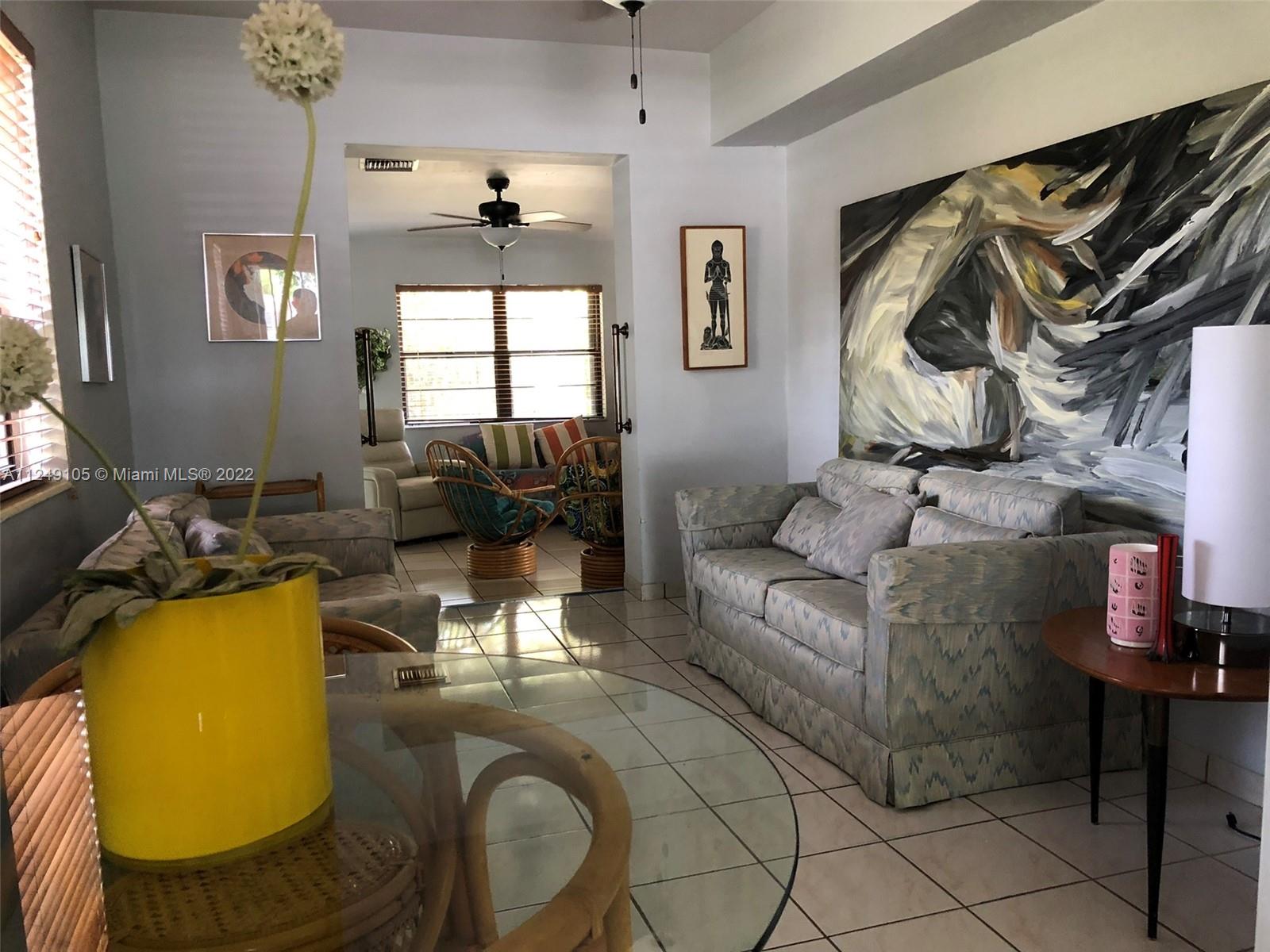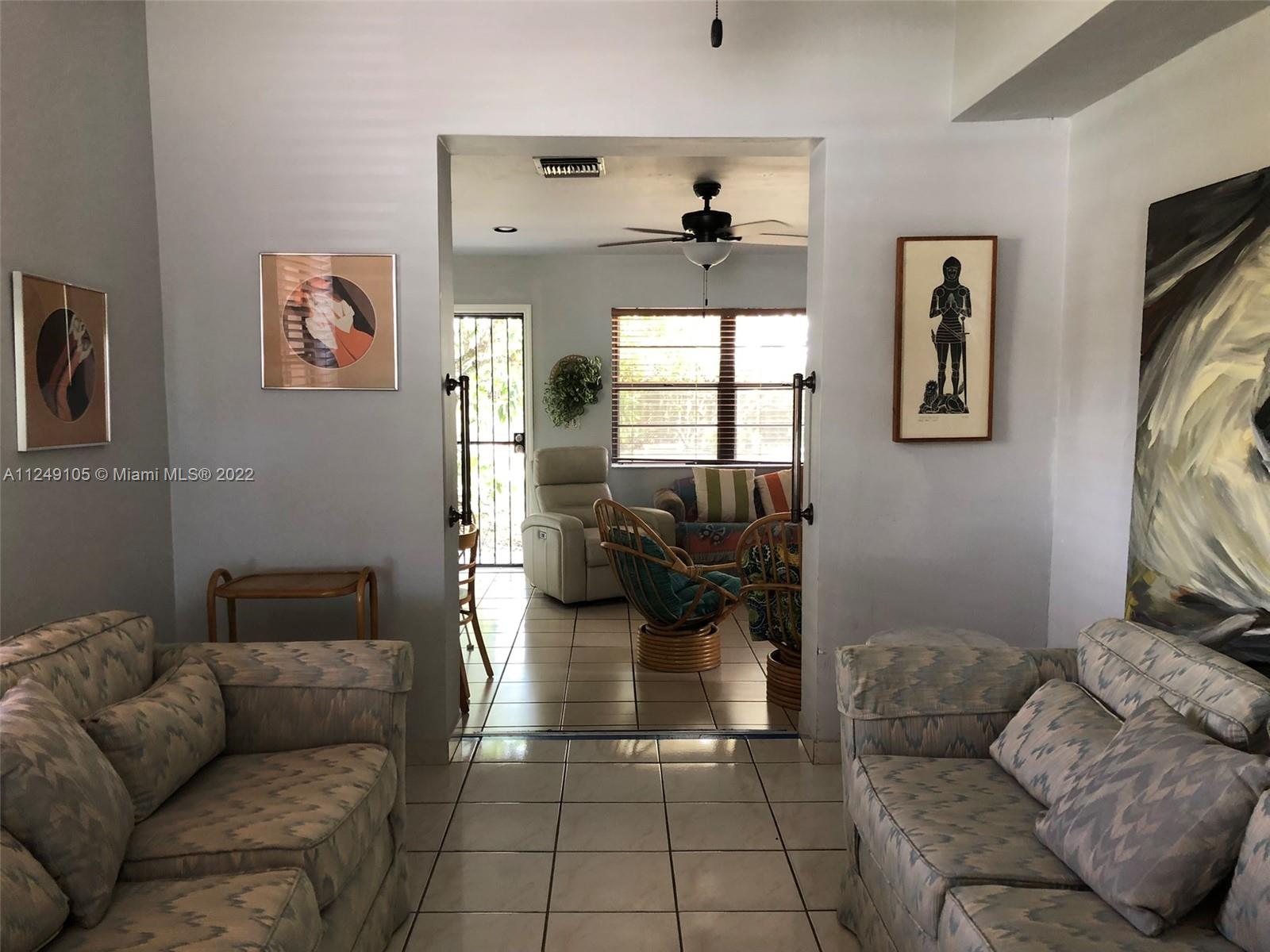 Cute starter home with room to expand, property has an open feel from the moment you walk in. It has two living spaces which could be converted to 3rd bedroom and bath. Neutral ceramic tile floors throughout, spacious kitchen with island, 2 bedrooms with large closets and large family room. Hurricane accordion shutters, barrel tile roof and rainbird sprinkler system with timer. Backyard has plenty of room to expand on a 135 ft deep fenced lot. Yard has matured fruit trees (mango and avocado). Front yard has decorative railing fence with beautiful exotic landscaping and serine water feature to sit and enjoy. Excellent neighborhood across the street from Mae Walters Elementary School.