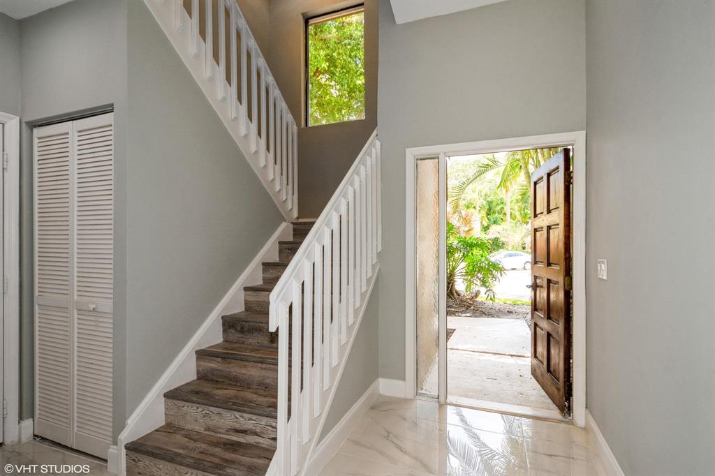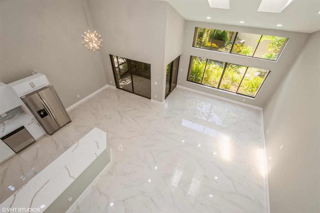 An absolutely renovated masterpiece in highly desired East Boca. 3BR/2.5BTH with first floor master suite .Master BR has a spacious closets. LED mirrors and Smart Mirror TV in master bathroom, full shower and bath with ultra modern touches. Open floor living room with 20FT. valued selling and skylights will fill this modern space with natural day light. Italian porcelain floors throughout the lover level. Porcelain countertops in the kitchen , brand new SS appliances .Dining area and breakfast area offer motion activated LED lights.Two BRMs located on the second floor . Full bathroom with walk-in custom shower and LED lights. Selling fans in all BRMs. New 2022 AC, new 2022 tankless water heater. Freshly painted attached 2 car garage. This unit is not attached to any other property