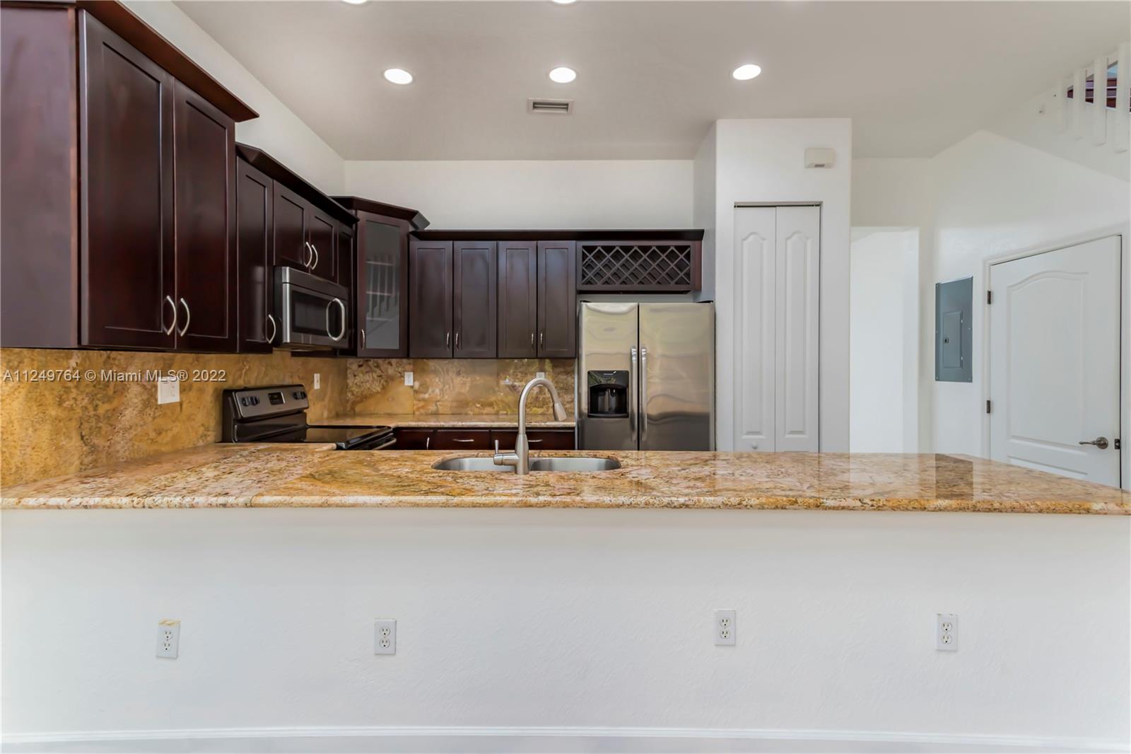 BEAUTIFUL TOWNHOUSE IN THE MANNED GUARD GATED COMMUNITY OF COBBLESTONE! THIS HOME FEATURES TILE FLOORING ON THE LOWER LEVEL AND UPGRADED WOOD LAMINATE FLOORING ON THE STAIRS AND UPPER LEVEL. INTERIOR WAS RECENTLY PAINTED WHITE AND VOLUME CEILINGS THROUGHOUT. SPACIOUS UPGRADED KITCHEN WITH GRANITE COUNTERTOPS, GRANITE BACKSPLASH & DARK WOOD CABINETRY. 2 MASTER SUITES BOTH LOCATED ON THE UPPER LEVEL, ONE OF THEM HAS A BALCONY. PRIVATE BACK COURTYARD AREA. NEWER A/C & ACCORDION SHUTTERS THROUGHOUT! LOCATED NEAR GUEST PARKING LOT!