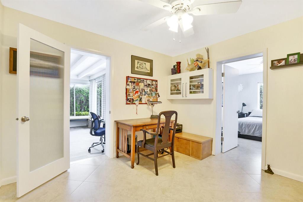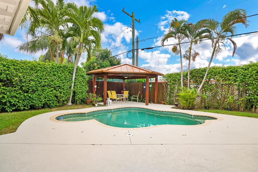 Sophisticated, retro European flair to this mid-century modern home located in the highly sought-after area South of Southern (SoSo) East of Olive! The home is 2 bedrooms, 3 full bathrooms with 2 multipurpose rooms that can be re-imagined to be 2 additional bedrooms, or office, den, or gym. This home has been tastefully updated and is meticulously maintained. The kitchen is well appointed with breakfast bar open to dinning and seating area. The home is light and bright with expansive windows along the back of the home overlooking the pool and outdoor gazebo seating deck. Additional features include wood beamed ceilings, a front porch that enhances the curb appeal and exudes charm. Within close proximity to Flagler Drive with bike trail, vibrant Clematis , Rosemary Square the Intracoastal
