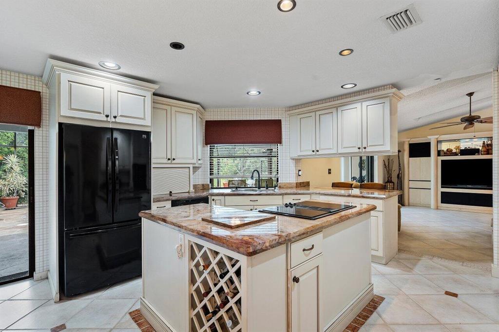 Nestled on one of the largest lots in Pine Ridge we have a gorgeous 4/2 home with all the bells and whistles for you to enjoy. Some of the features are: Gorgeous remodeled kitchen with red/rust granite, new guest/cabana bath with 9 jet jacuzzi, new water heater, new dishwasher, new washer, huge driveway w/ tons of parking, over 1/3 acre lot, accordion shutters all the way around, double anchored roof, hurricane rated garage door, plantation shutters for shade and privacy, range + cooktop, bonus 55 inch tv & surround sound system with patio speakers and more. Open house Saturday 8/6/22 12pm till 2pm come by! Enjoy a swim in your private pool surrounded by gorgeous landscaping and a HUGE back yard. This home is in one of the most desirable school zones and overall locations.