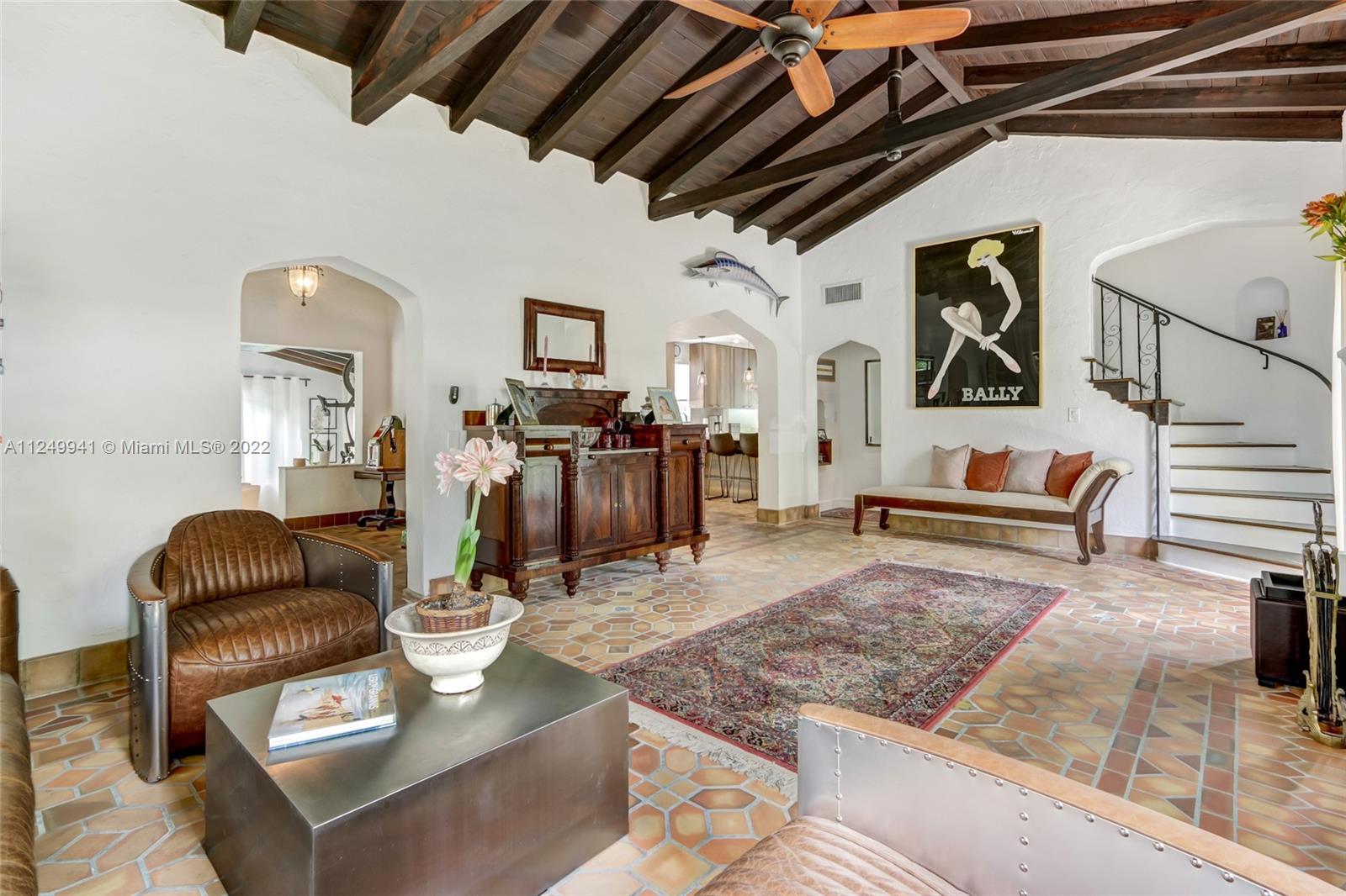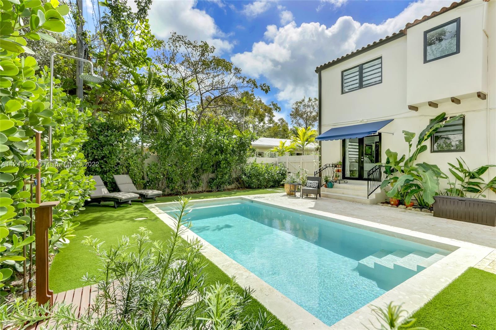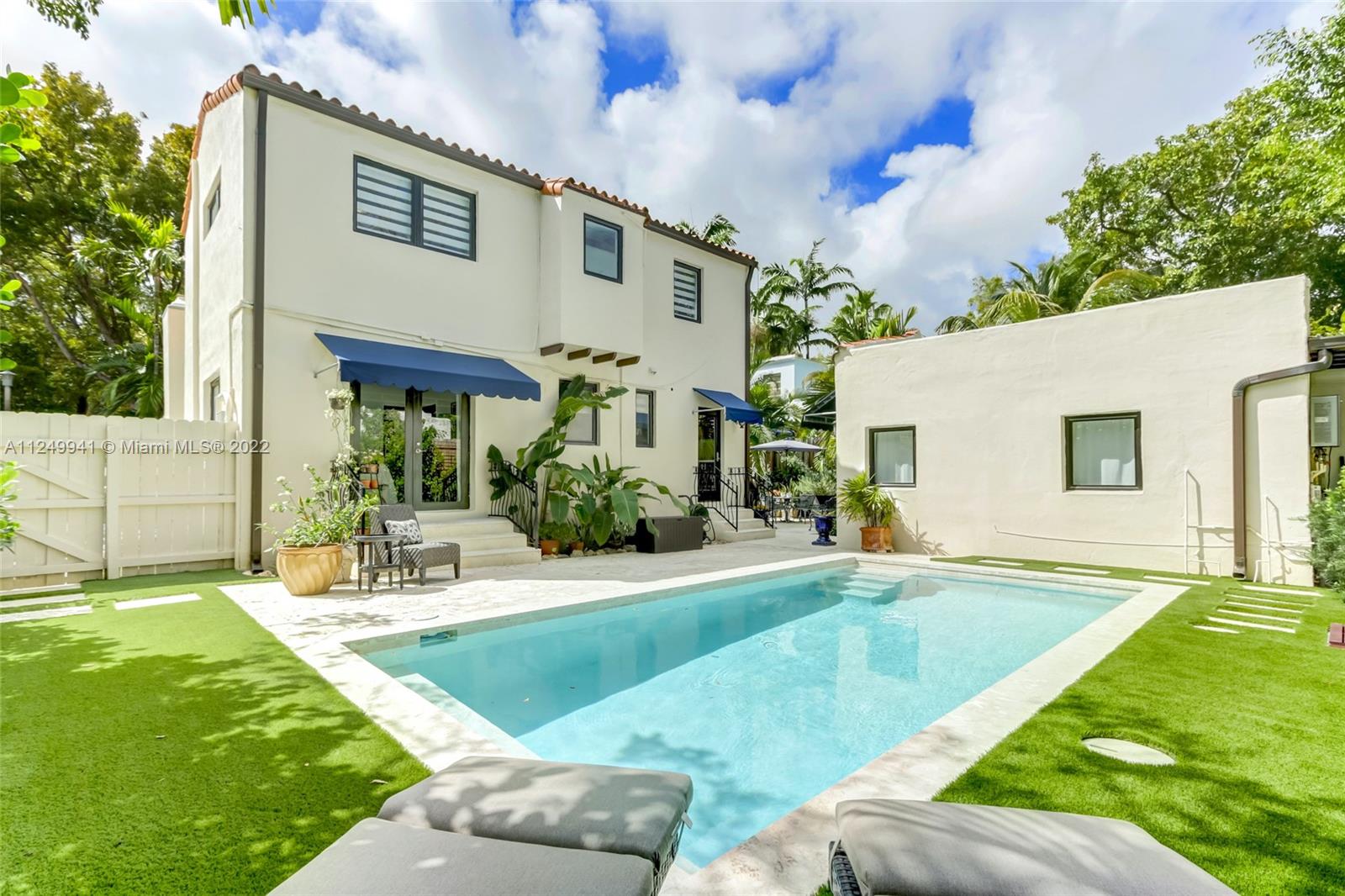 Stunning Spanish Mediterranean home in Morningside. Main house is three bedrooms and two and a half bathrooms with one bedroom on the first floor. Detached Guest House has a full bath, kitchen, washer & dryer. Vaulted ceilings, original quarry tile, iron work staircase, built in bookcases, fireplace and many other charming details from 1926! Impact windows and doors throughout. Gourmet kitchen with counter seating, stainless steel appliances, Viking gas range and abundant cabinet space. Balcony off of second floor bedroom. Tropically landscaped yard with new pool. Walk to Morningside Park and many shops and restaurants on the Upper East Side. This home is NOT located in a flood zone!