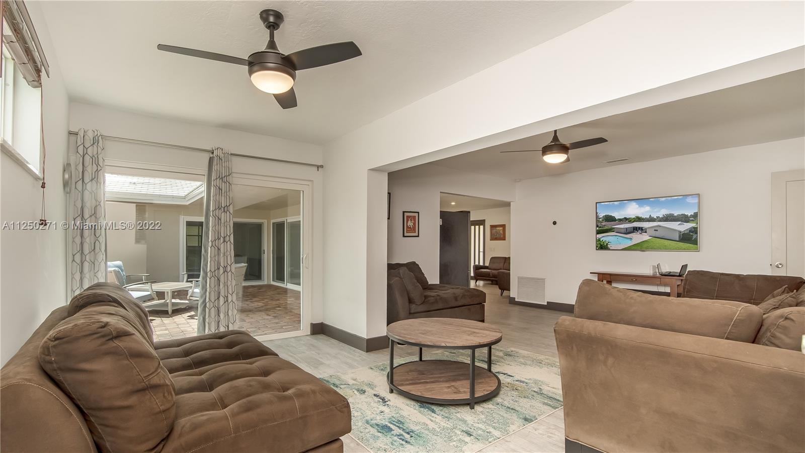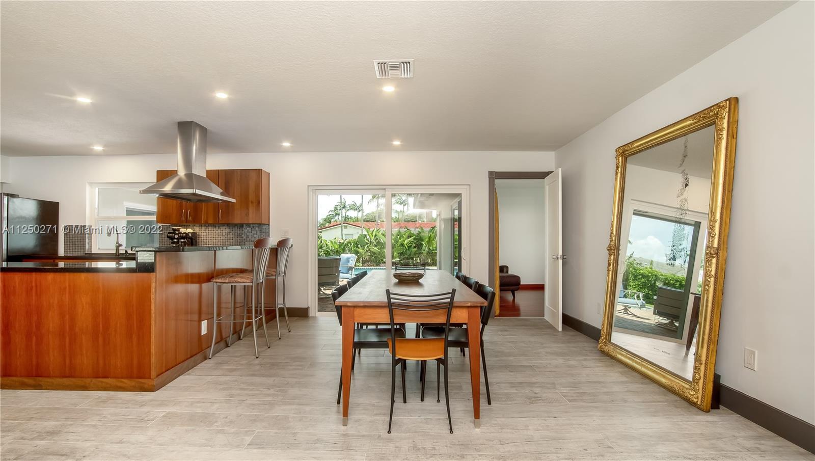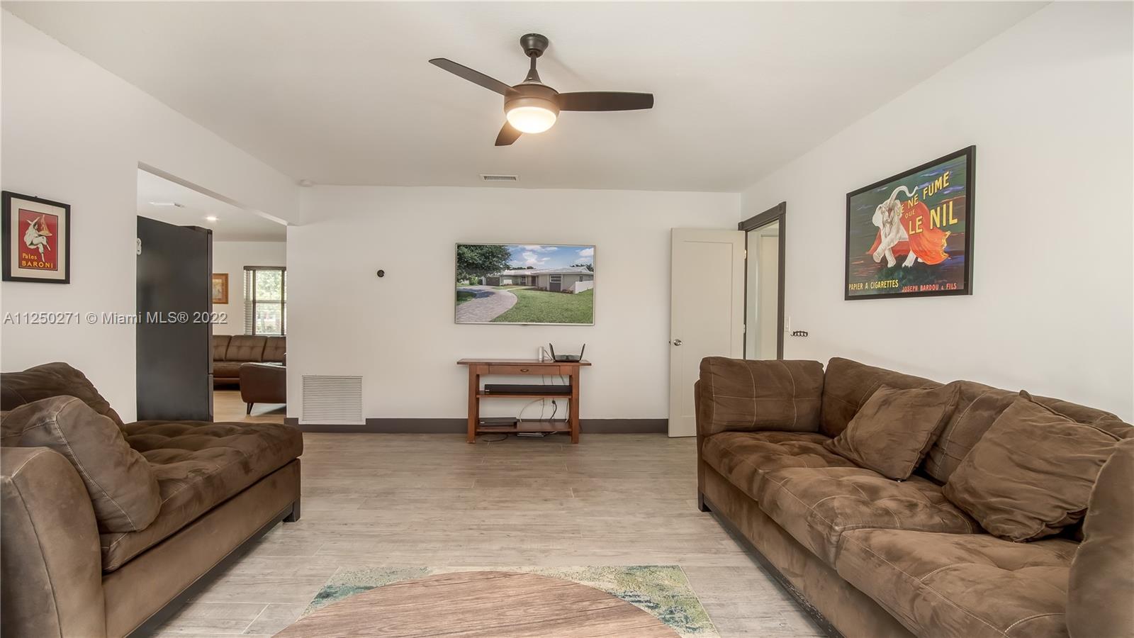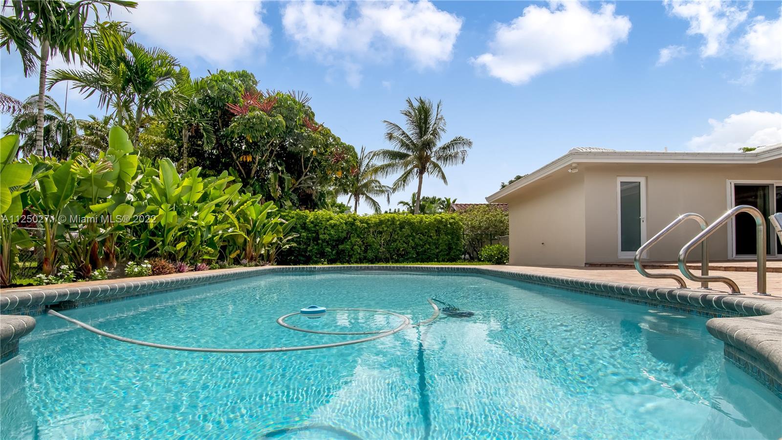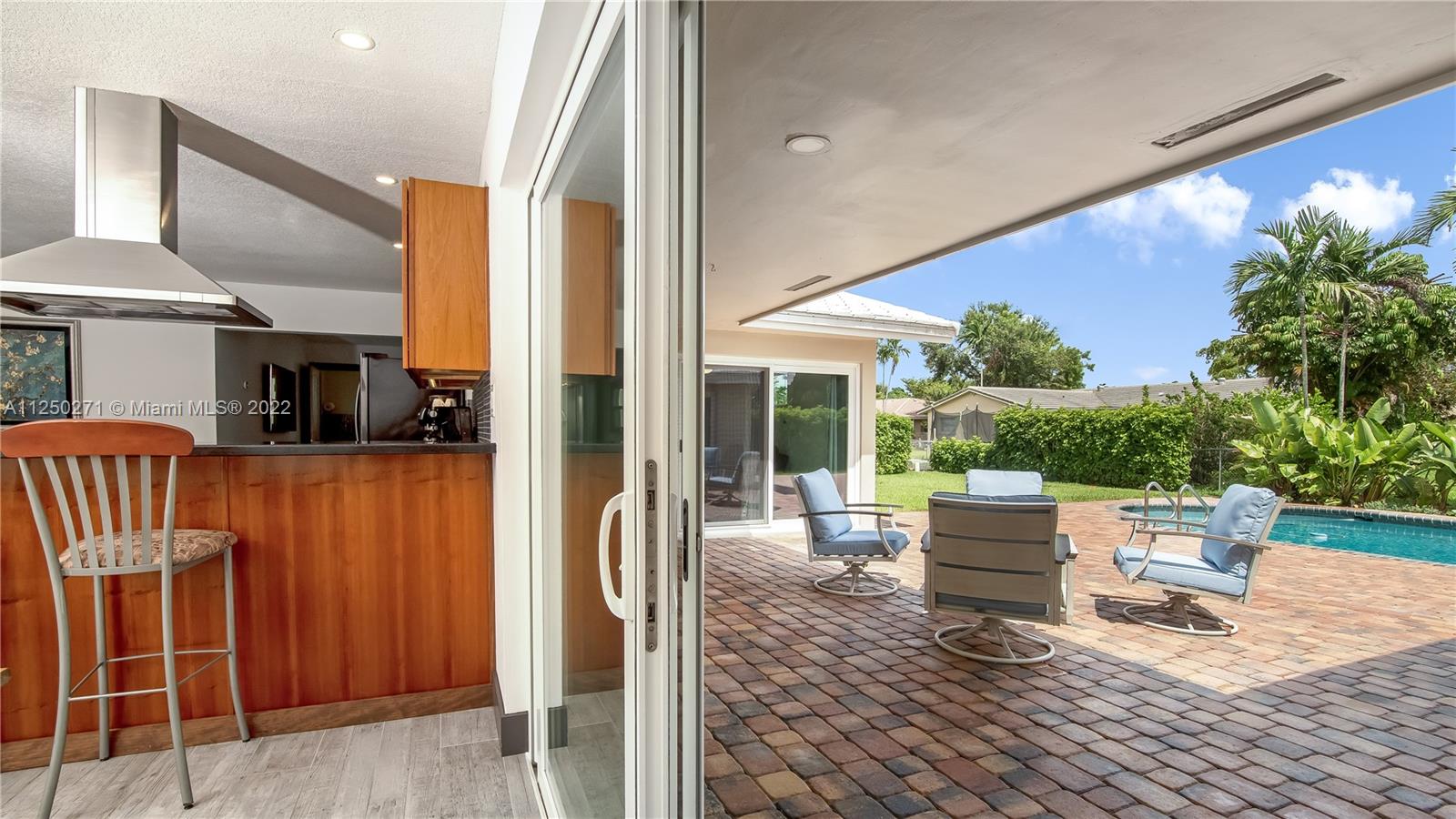 Upgraded and meticulously maintained Chevy Chase 3 Bedroom 2 Bath saltwater pool home with 2 car garage, All entry points are hurricane impact rated. New roof (2021). Chef’s kitchen with solid cherry wood cabinets, stainless steel appliances and granite countertops. Formal dining and den with double pane impact sliders leading out to large outdoor patio for entertaining. Porcelain tile imported from Spain in living areas with wood floors in bedrooms. Large paver circular driveway for guest parking. Central location to schools, dining, entertainment, and shopping. NO HOA.