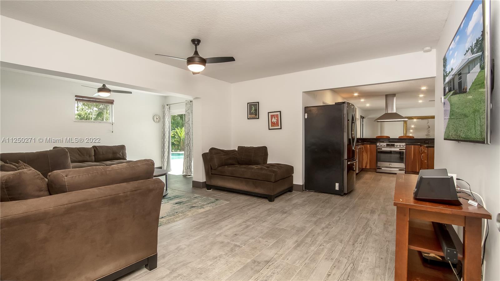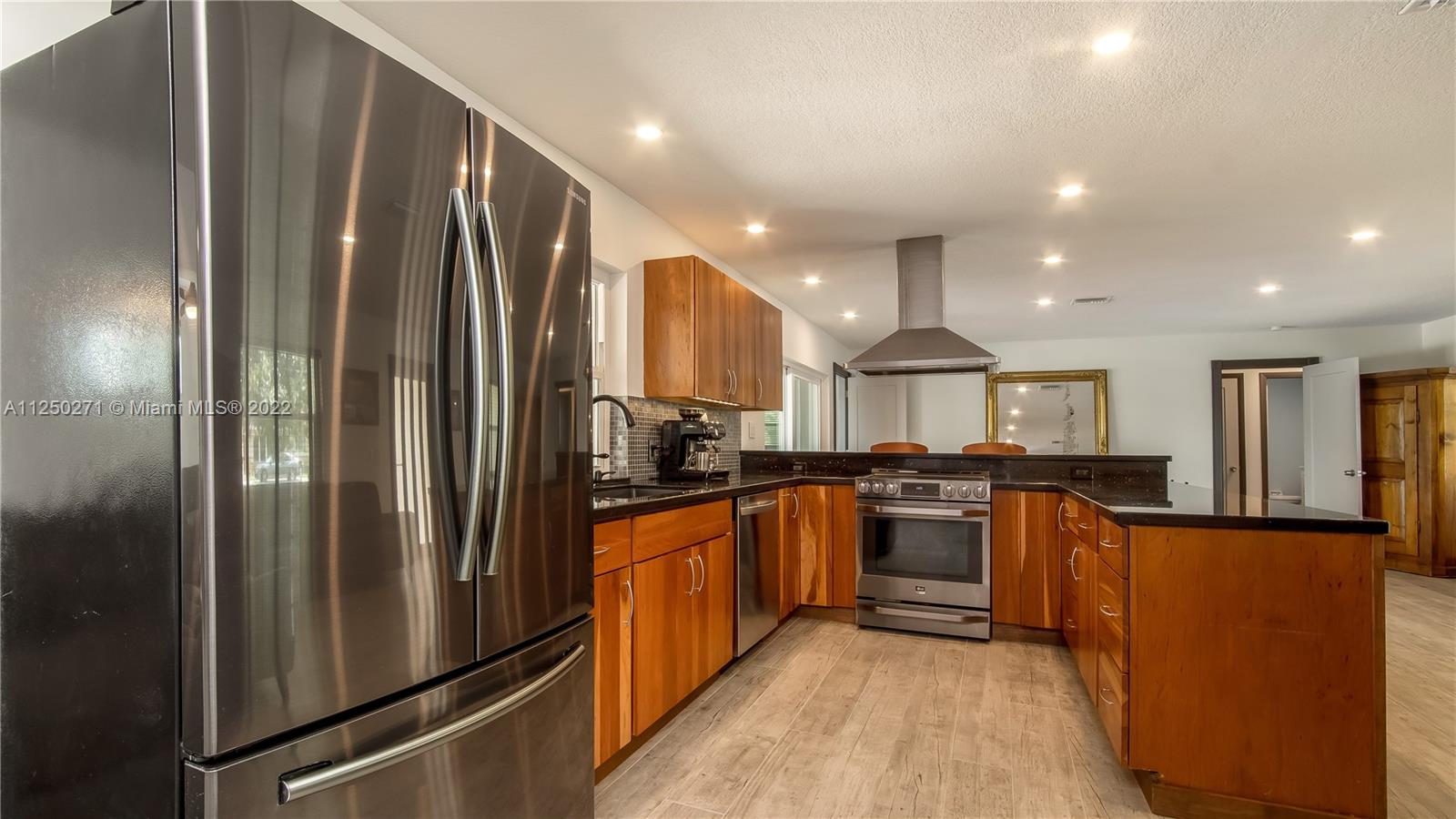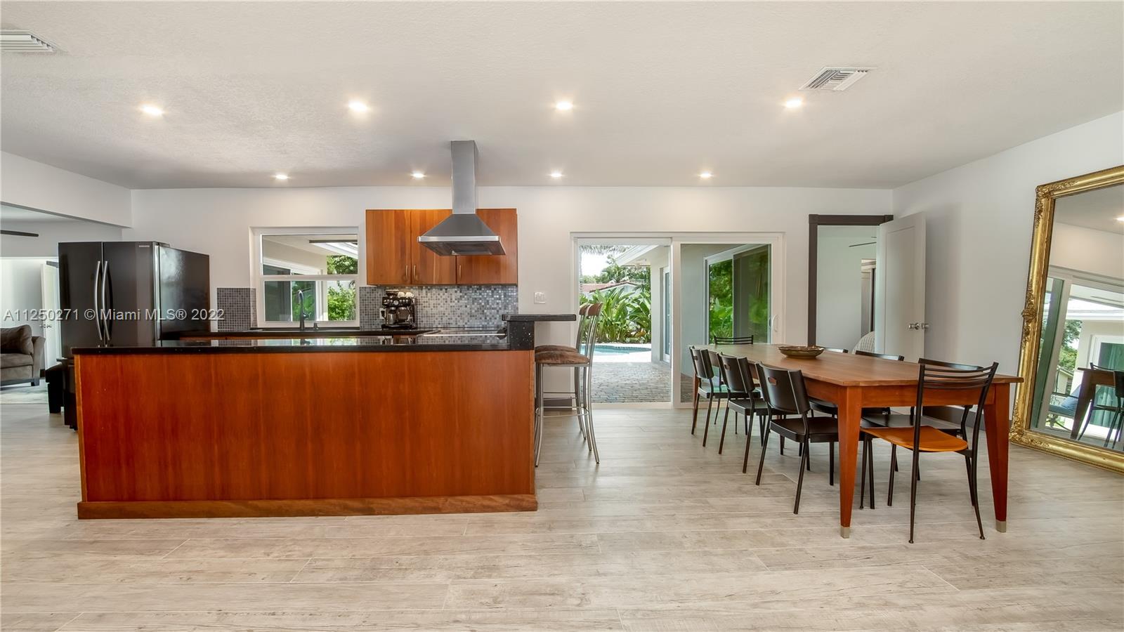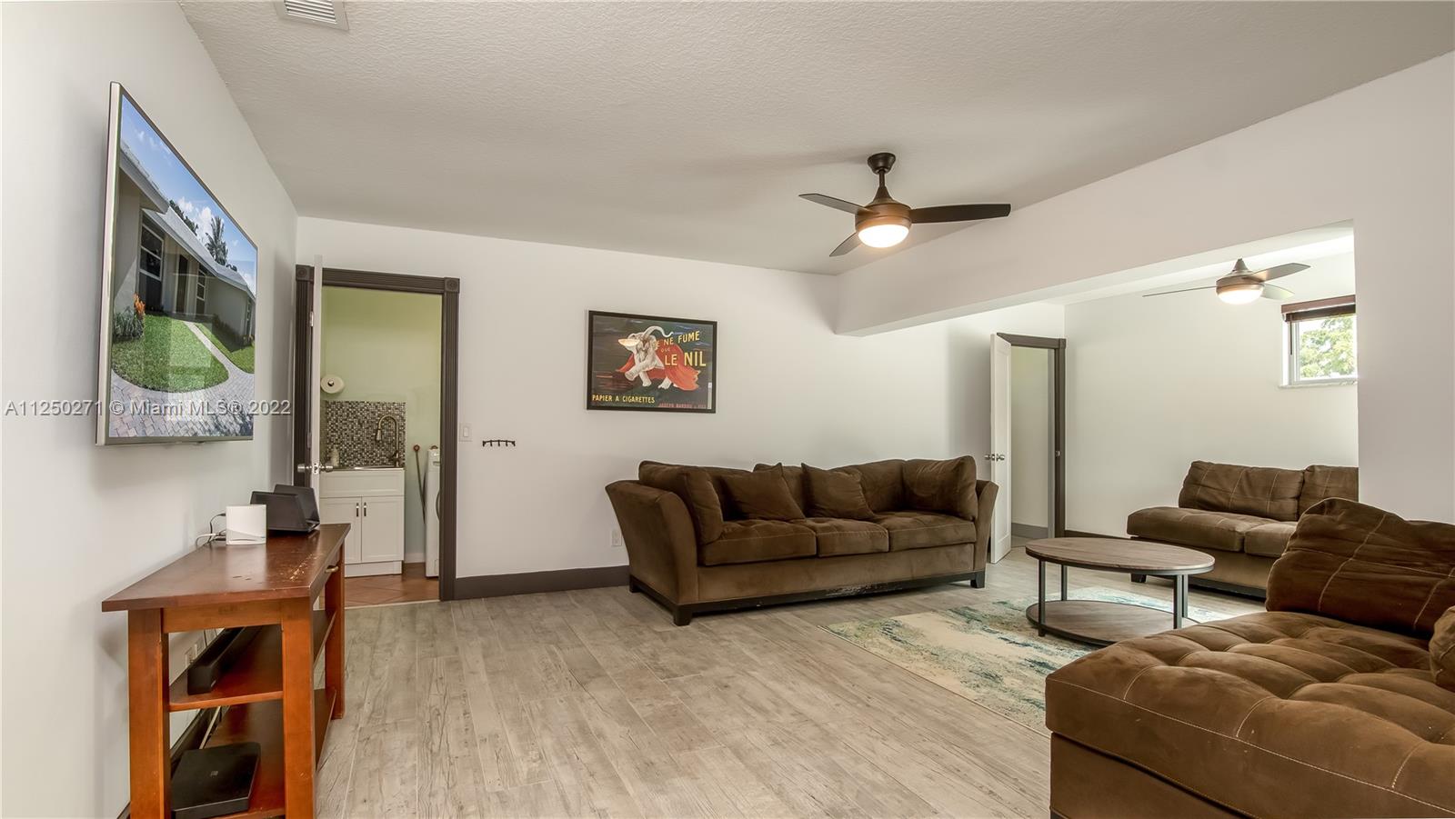 Upgraded and meticulously maintained Chevy Chase 3 Bedroom 2 Bath saltwater pool home with 2 car garage, All entry points are hurricane impact rated. New roof (2021). Chef’s kitchen with solid cherry wood cabinets, stainless steel appliances and granite countertops. Formal dining and den with double pane impact sliders leading out to large outdoor patio for entertaining. Porcelain tile imported from Spain in living areas with wood floors in bedrooms. Large paver circular driveway for guest parking. Central location to schools, dining, entertainment, and shopping. NO HOA.