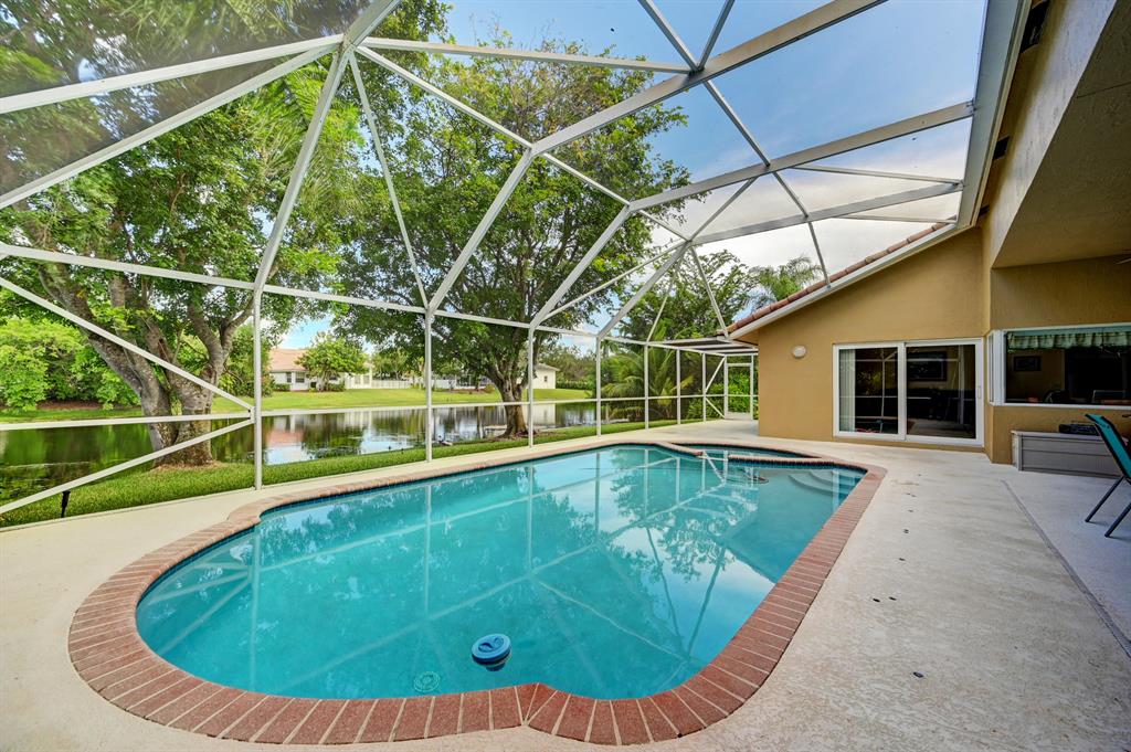Beautiful 4 BR 2.5 bath pool home with full PGT hurricane impact windows, sliders, doors in highly desirable Brookside development. Vaulted ceilings, split floor plan offers great flow thru LR, DR, Kitchen, FR, all overlooking pool and lake. Updated kitchen, 42'' cabinets, island, Silestone countertops, two large pantries. Updated 2nd bath, white vanities, walk-in shower, cabana bath, updated half-bath. Two walk-in closets in owner's suite, large closets other rooms. Large laundry room. Oversized paver driveway (4 cars). Roof 2009, Carrier Infinity AC 2016, water heater 2016, LED recessed lights, ceiling fans, sprinklers from lake (pump 2022). East facing screened in pool with large patio offers shade/breezes off lake. Close to neighborhood parks, shopping, good schools.
