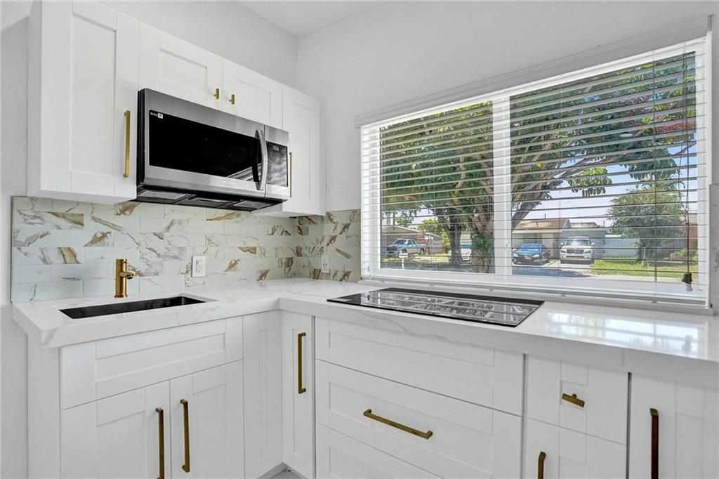 MULTIPLE OFFERS!!PLEASE SUBMIT YOUR OFFER BY 5 PM ON 08-09-22. Completely remodeled 3 BDR/3 BTH SFH (main house 2/2 & 1/1 attached Efficiency with full kitch and bth, & private entrance). Live in main house & collect income from efficiency or rent as 2 separate units as an investor. LOW taxes ($1,106 a yr). Roof 5 yrs old, all impact winds & drs, new AC. New kitchen, sitting island, Qtz countertops, new S/S appliances, farmhouse sink, cooktop stove, wall oven/microwave combo. 3 BTHs renovated with porcelain tile, frameless shower glass drs & new vanities. All new recessed lights throughout. Checkout the amazing statement wall in the family rm affixed with fireplace. Large lot, room for pool, covered patio, fully fenced yard, with new SOD. 10 minutes away from Hardrock Stadium.