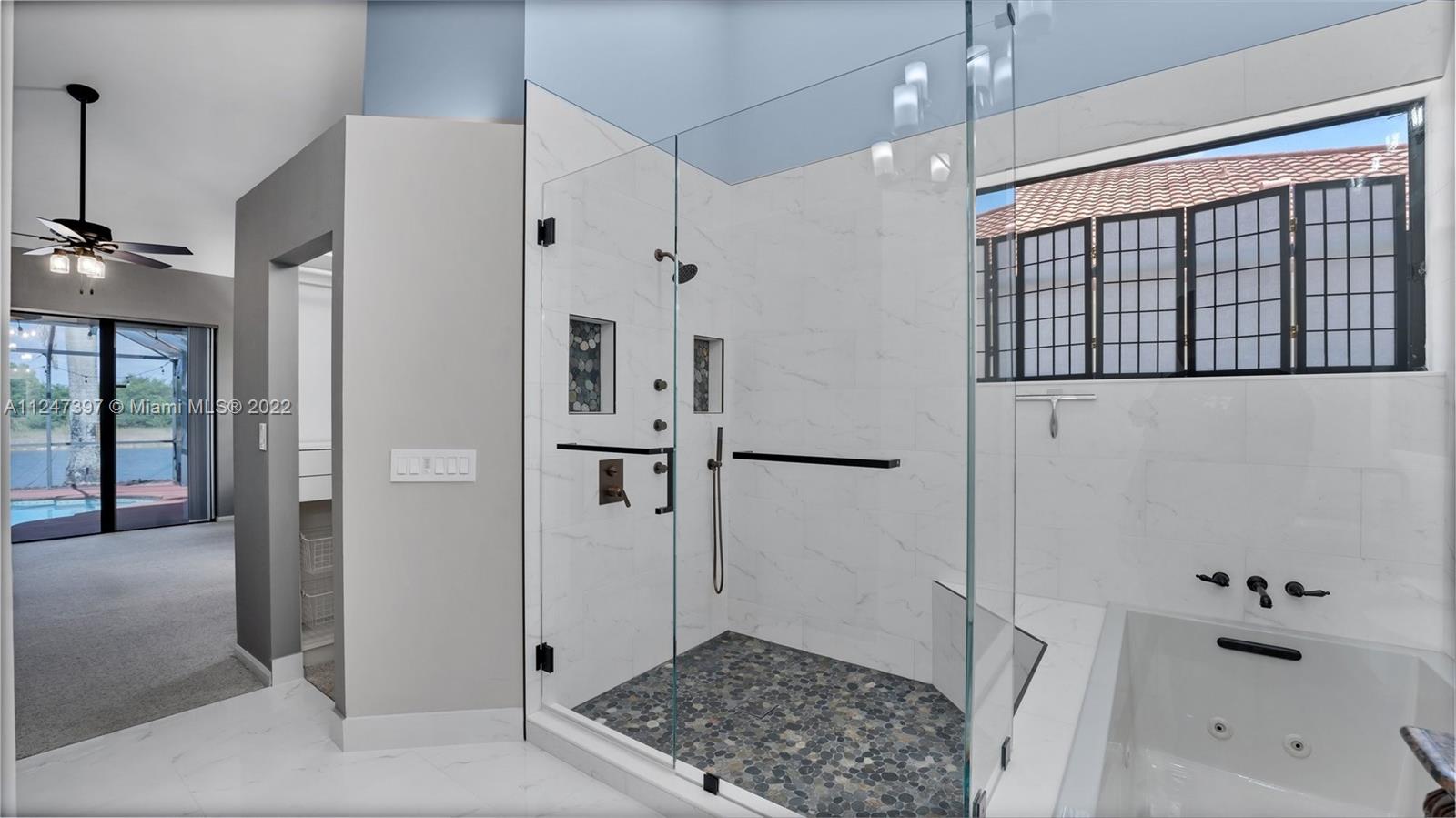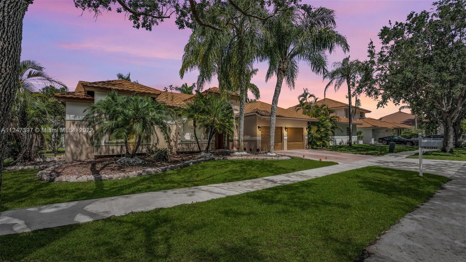This is a remarkable find! A beautiful and spacious 4 bedrooms 3 bathrooms located in the coveted Malibu Pointe - Silver Lakes gated community, within walking distance of Silver Trail Middle School. It boasts a flowing layout with soaring ceilings, a gourmet kitchen with hard wood cabinets, stainless steel appliances and granite countertops. This Newport model home places the main living area and the kitchen in the center of the house, with the master suite and the 3 bedrooms on the opposite sides. Master suite features 2 walk-in closets and a completely renovated bathroom (jacuzzi bathtub). This home has postcard perfect sunset views over the lake. It has double insulation, AC recently changed, indoors recently painted, screened patio, recently resurfaced pool. Excellent location, ask why