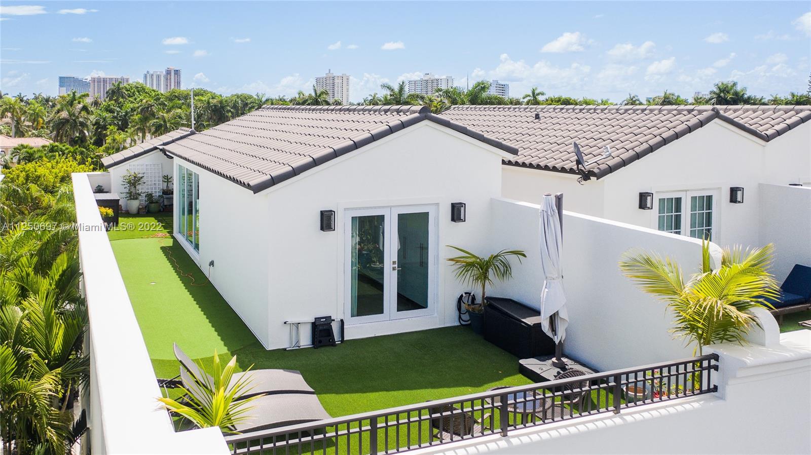 LAS OLAS ISLES - 4-Story Waterfront End-Unit Townhouse with Deeded Dock for up to 50' boat - no fixed bridges! This upscale residence includes of 4 bedrooms, 4 ½ baths, elevator, den, office, workout/hobby room, covered patio/balconies and an impressive rooftop terrace with putting green. Impact windows and doors, gated driveway, two-car garage. Units recently completed extensive exterior upgrades.