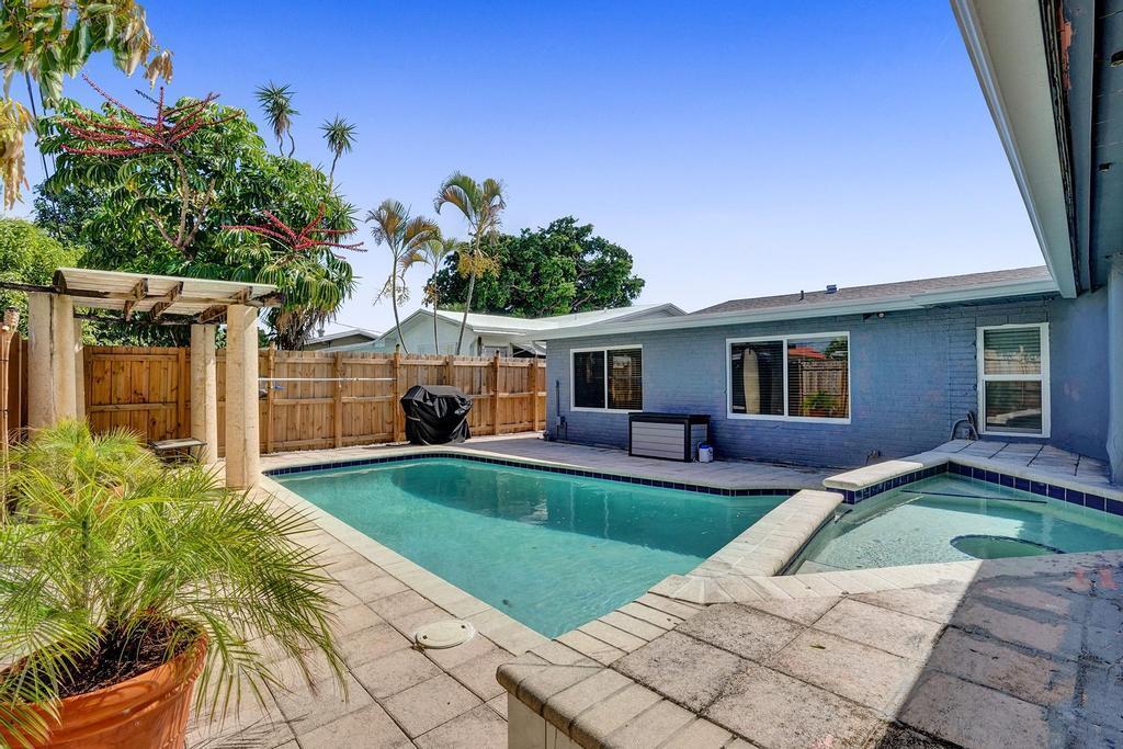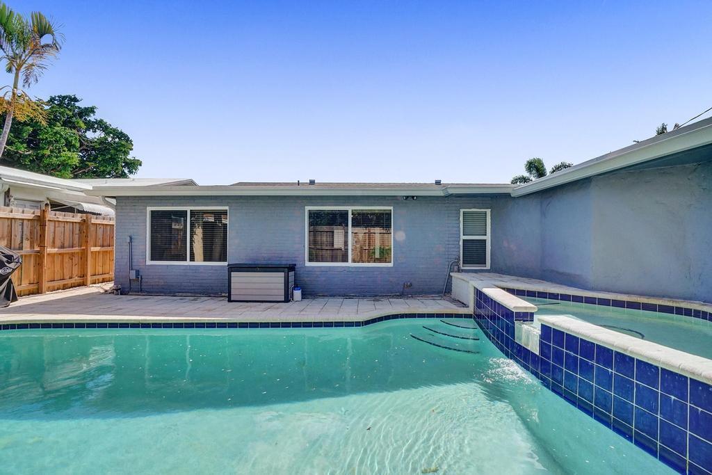 Updated Pool Home with a guest suite ideal for home office, in-law hangout, music room etc. Front Porch enclosed. New roof, new fence, new impact windows, updated baths and kitchen. Over $68,000 in property improvements. No rules No regs, pets welcomed and trucks and motorcycles ok too! East location great for beach and waterway access and shops and restaurants! Fully fenced yard with new fence. Florida Room overlooks pool patio area creates great lifestyle for Florida.One Car Garage, updated electrical. Driveway exceptional parking for cars, trucks, trailers, very flexible spaceSwimming pool area is a place to live the Florida Dream lifestyle! Set up the Grill and the blender and it's 5 o'clock somewhere! Perfect Pool Party house!