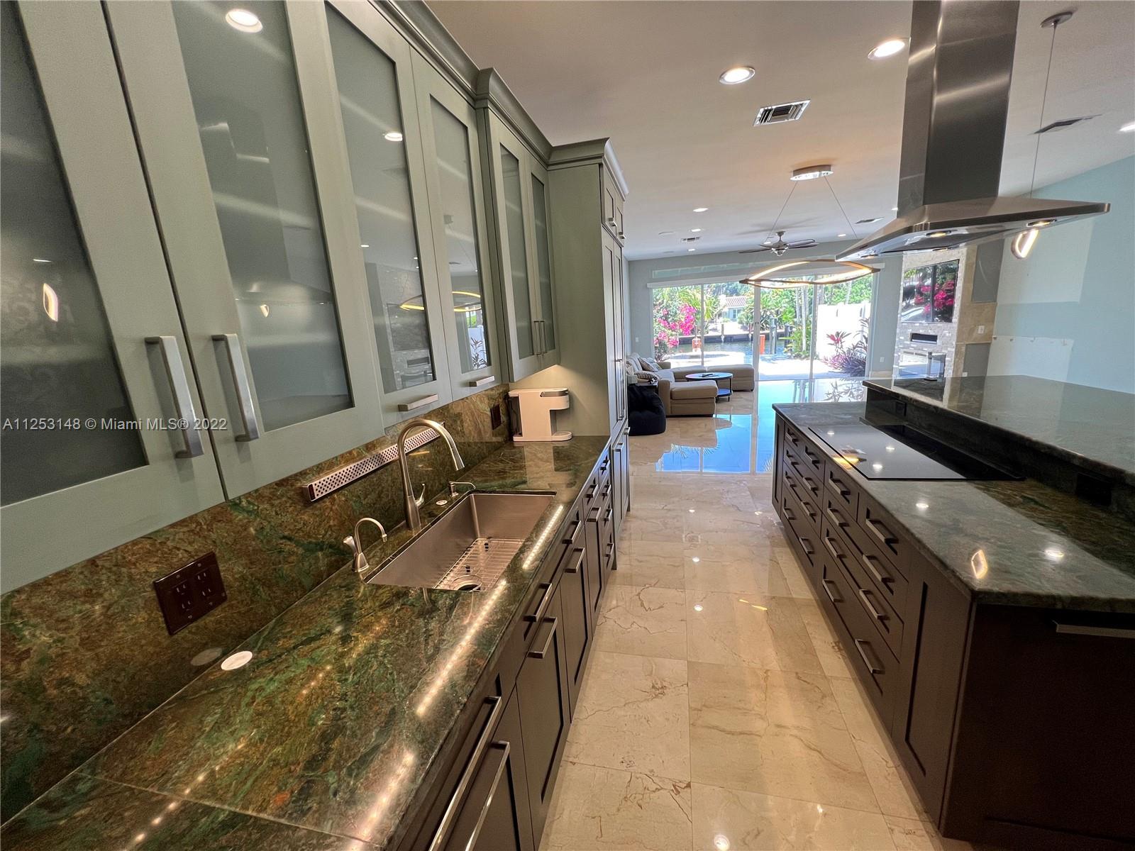 Waterfront townhome, fully renovated with custom designer touches, in exclusive Coral Ridge. Chef's kitchen: Thermador refrigeration, Miele double ovens, induction cooktop, custom cabinetry. Marble flooring throughout, custom designed lavish en suite bathrooms in two primary suites and one guest suite, remote blackout shades all rooms. All bedrooms have walk-in closets, custom built-ins. High ceilings all three levels. Dedicated boat slip up to 35' vessel, no fixed bridges to open ocean. Located just 5 minutes from the beach, walking distance to parks and A+ rated Bayview Elementary, 5 minutes to Galleria mall/ all daily needs, 10 minutes to Brightline station. One car garage + room for 4 additional cars in driveway. Best possible location to enjoy the south FL lifestyle.