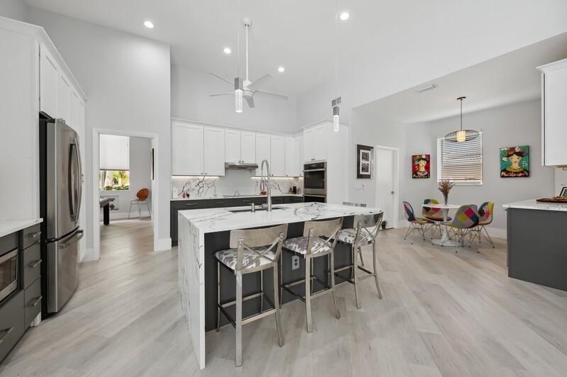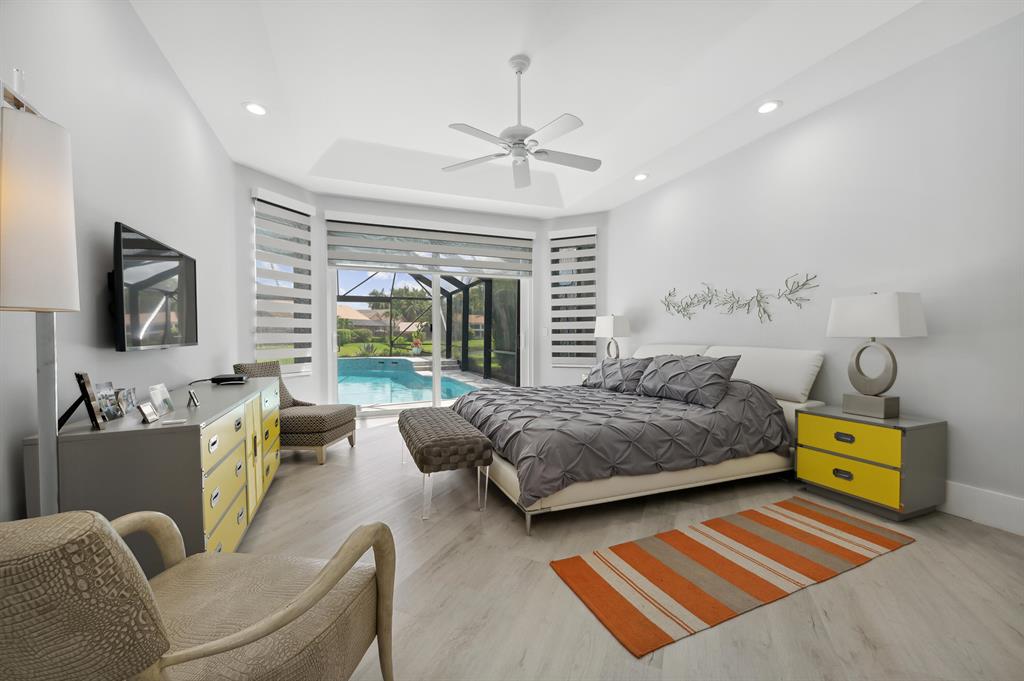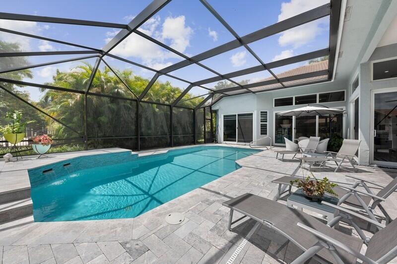 JUST REDUCED FOR QUICK SALE! Incredible lakefront residence with SOCIAL MEMBERSHIP totally renovated recently with amazing flair & creativity. The open floorpan presents beautiful views from every room. Attention to detail is evident throughout -- from the reimaginedliving/family room with its 85'' LG built-in TV & electric fireplace; kitchen with GE Profile & Bosch appliances, quartz counters & backsplash; spa-like master bath; heated salt water pool, travertine deck & scenic view screen enclosure; impact glass rear windows & sliders . . .and so much more. LVT flooring throughout, rebuilt closets, whole house generator -- this sensational residencelocated in a premiere ''boutique'' country club can bepurchased ''turnkey'' to include the sophisticatedfurnishings & accessories.