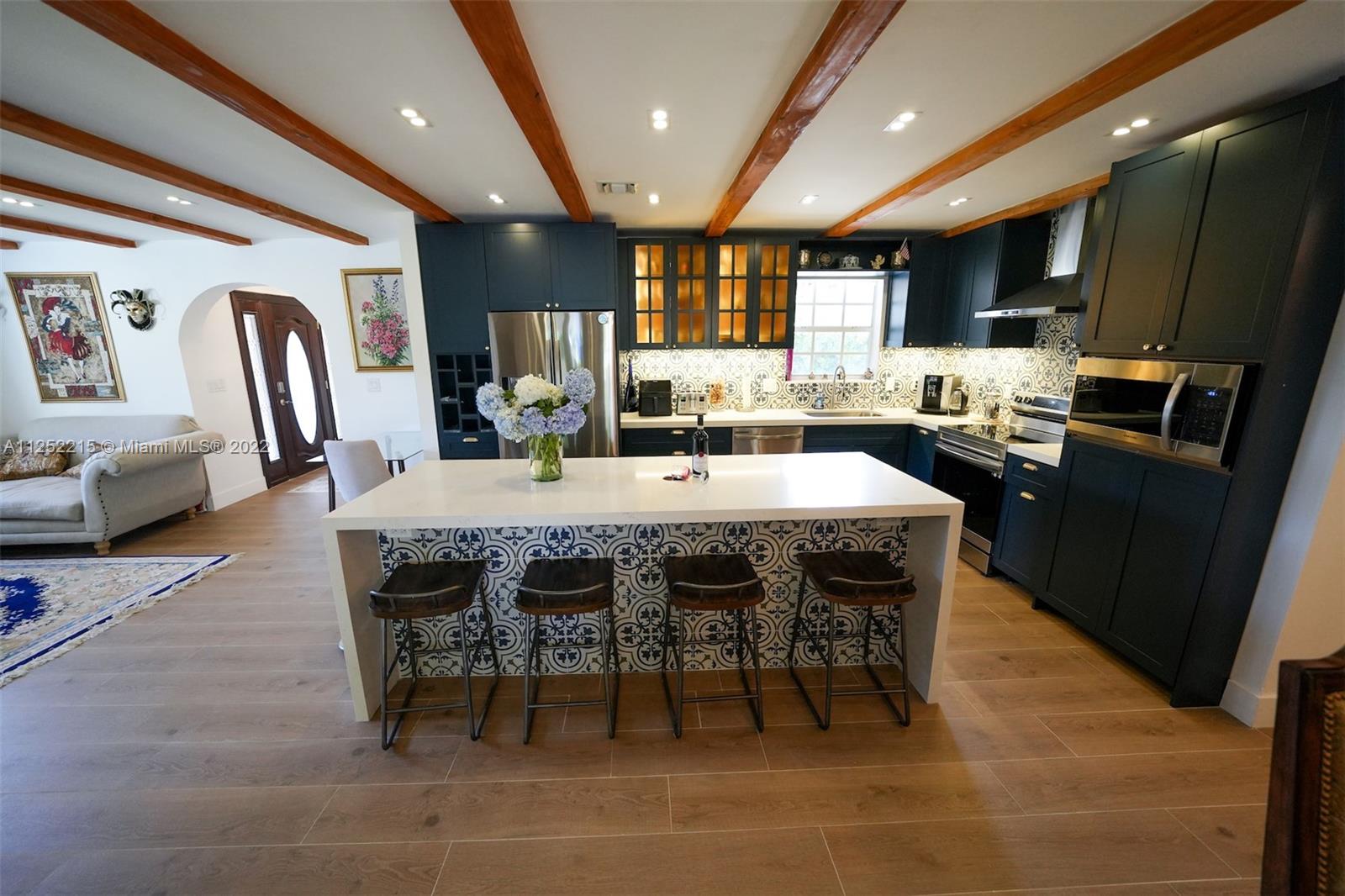 This home has interior design from famous interior designer. House is completed in traditional Authentic Spanish style with traditional elements such as tile finishes and kitchen. This home has 4 bedrooms and 3 bathrooms. Beautiful Master bath with stand alone Tub, big walk-in closets. House has handcrafted curtains, wood beams, arches, handcrafted furniture and more. Beautiful landscape, travertine backyard with pool and with waterfall, new pool pump and filter. New electric panel. Electric vehicle charger inside of garage and outside. One car garage has A/C and ready for your ride. Brand new garage door. New appliances, washer dryers with boxes. Osmosis filtration drinkable water system. Custom Restoration Hardware Chandlers. Can be sold fully furnished. No HOA.