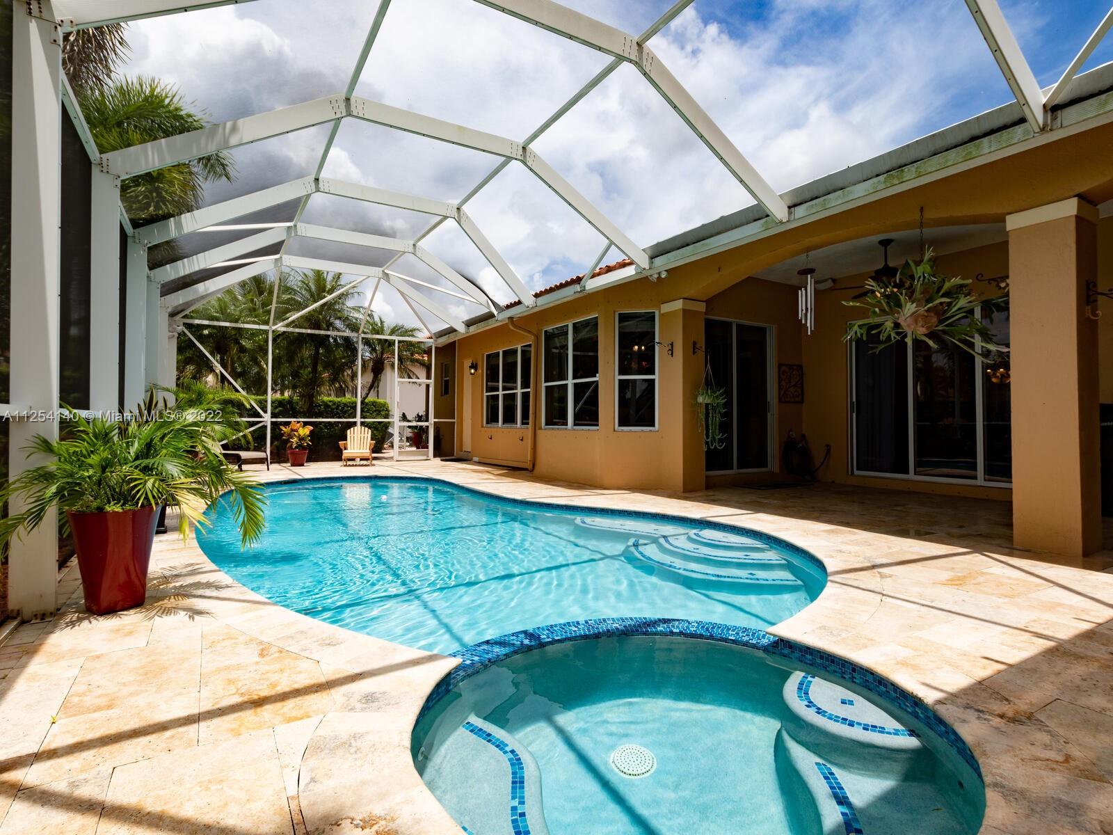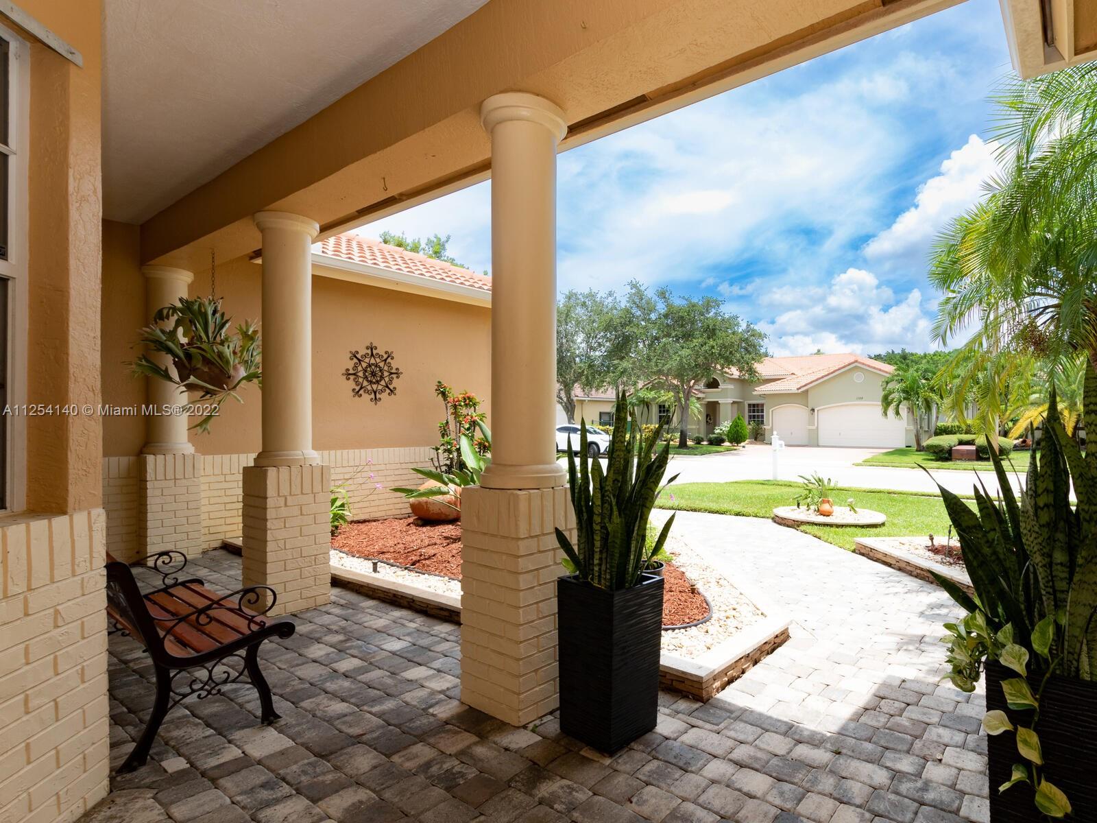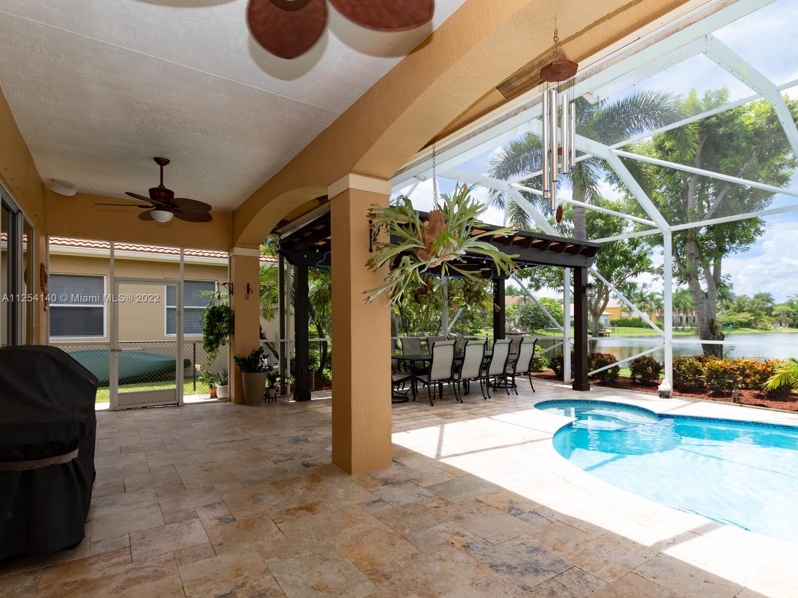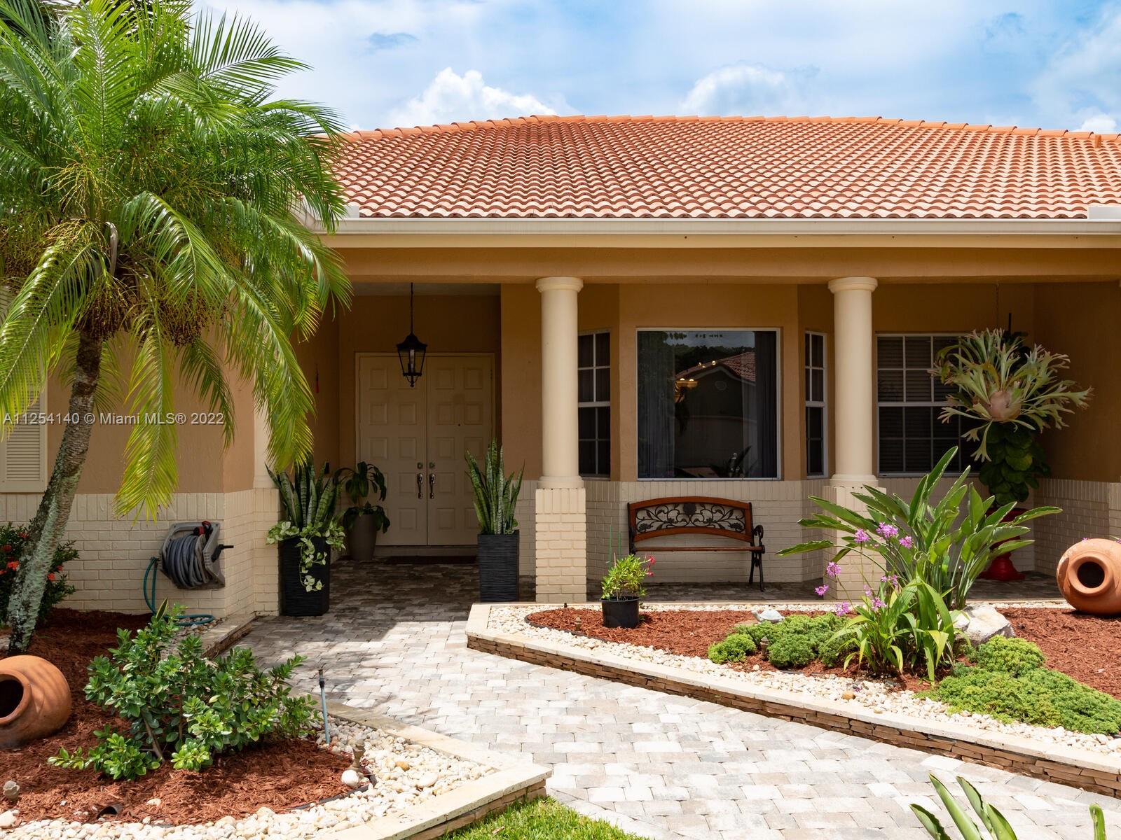 Come see this gorgeous 4 bedrooms, 3 bathrooms, 2 car garage Ranch home in the exclusive "Estates of Pembroke Shores". Home features newer roof - 2018, 24x24 inch Porcelain tiles throughout the house and hardwood floors in all the bedrooms. The master bath was recently remodeled with custom cabinets and jacuzzi tub. Kitchen is also updated with new cabinets and stainless steel appliances. Washer and Dryer - 2019, Water Heater - 2018, A/C 2012. Wait until you step outside and see the beautiful Gazebo installed in 2021 with lighting and fans. Not to mention the heated pool (salted) and jacuzzi with a spectacular view of the lush garden and lake. Then there is the garage with built in storage closets all around to keep everything organized including documents and files. This will not last!!