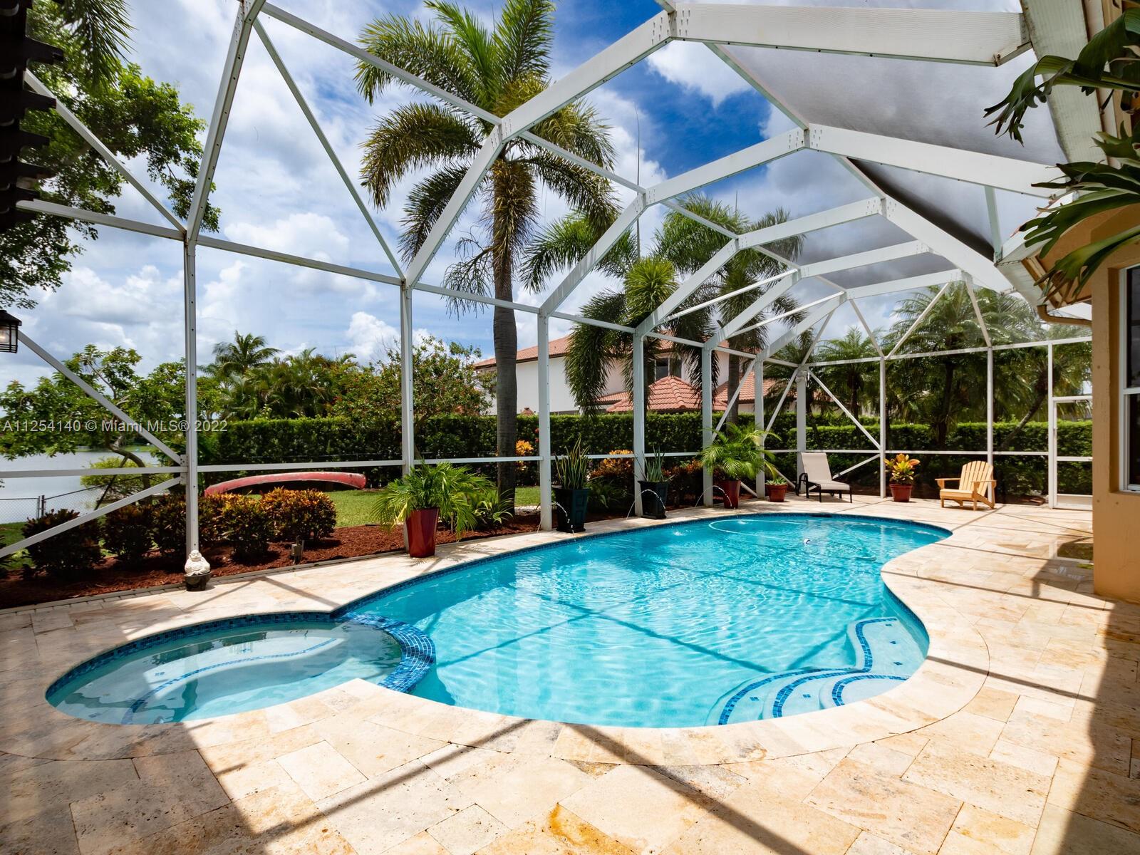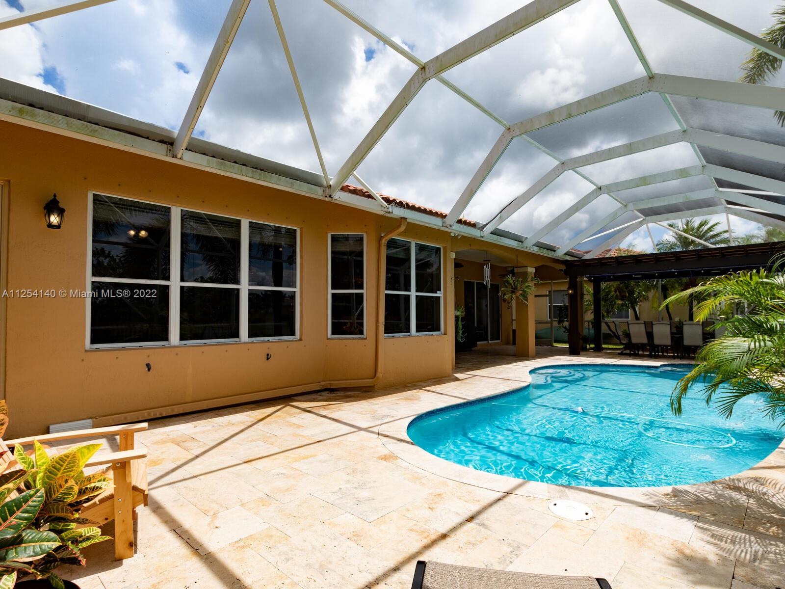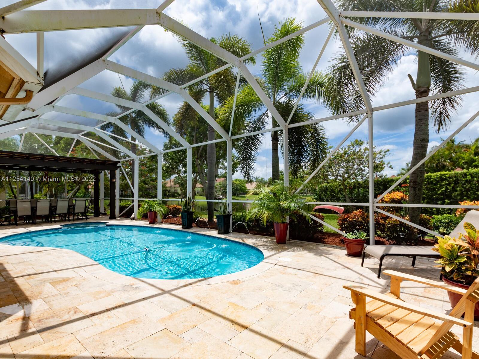 Come see this gorgeous 4 bedrooms, 3 bathrooms, 2 car garage Ranch home in the exclusive "Estates of Pembroke Shores". Home features newer roof - 2018, 24x24 inch Porcelain tiles throughout the house and hardwood floors in all the bedrooms. The master bath was recently remodeled with custom cabinets and jacuzzi tub. Kitchen is also updated with new cabinets and stainless steel appliances. Washer and Dryer - 2019, Water Heater - 2018, A/C 2012. Wait until you step outside and see the beautiful Gazebo installed in 2021 with lighting and fans. Not to mention the heated pool (salted) and jacuzzi with a spectacular view of the lush garden and lake. Then there is the garage with built in storage closets all around to keep everything organized including documents and files. This will not last!!