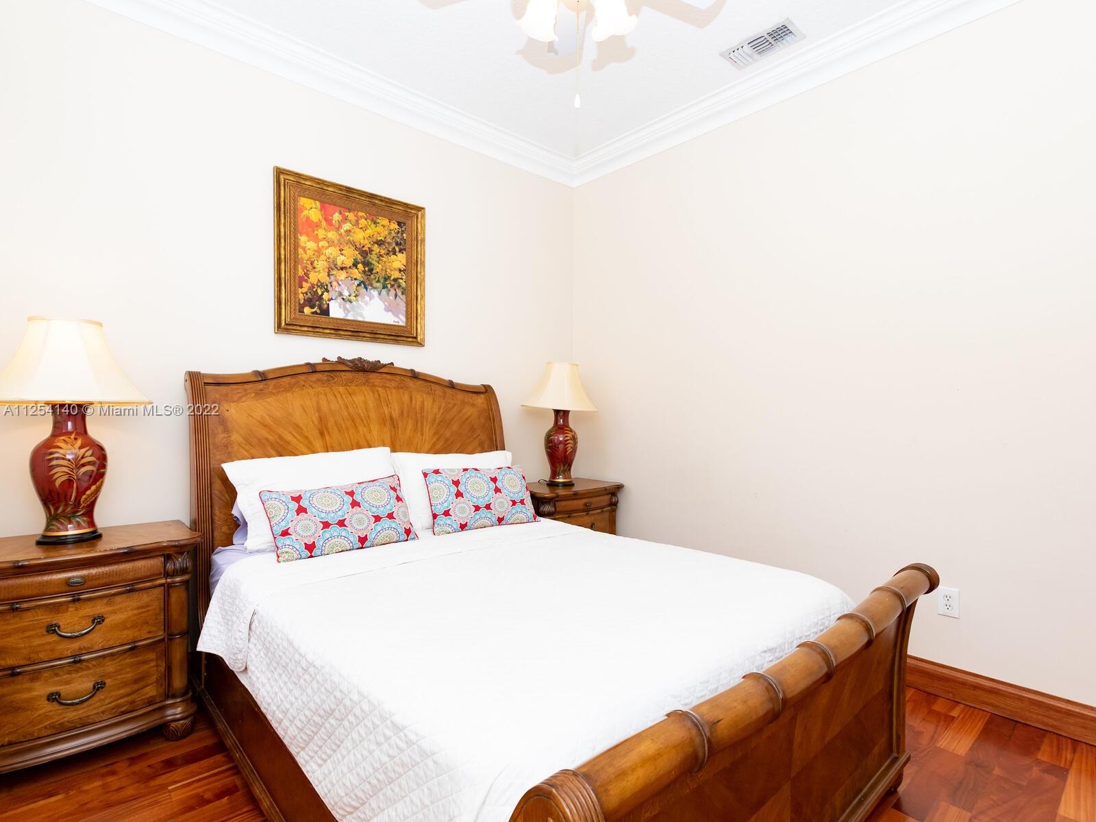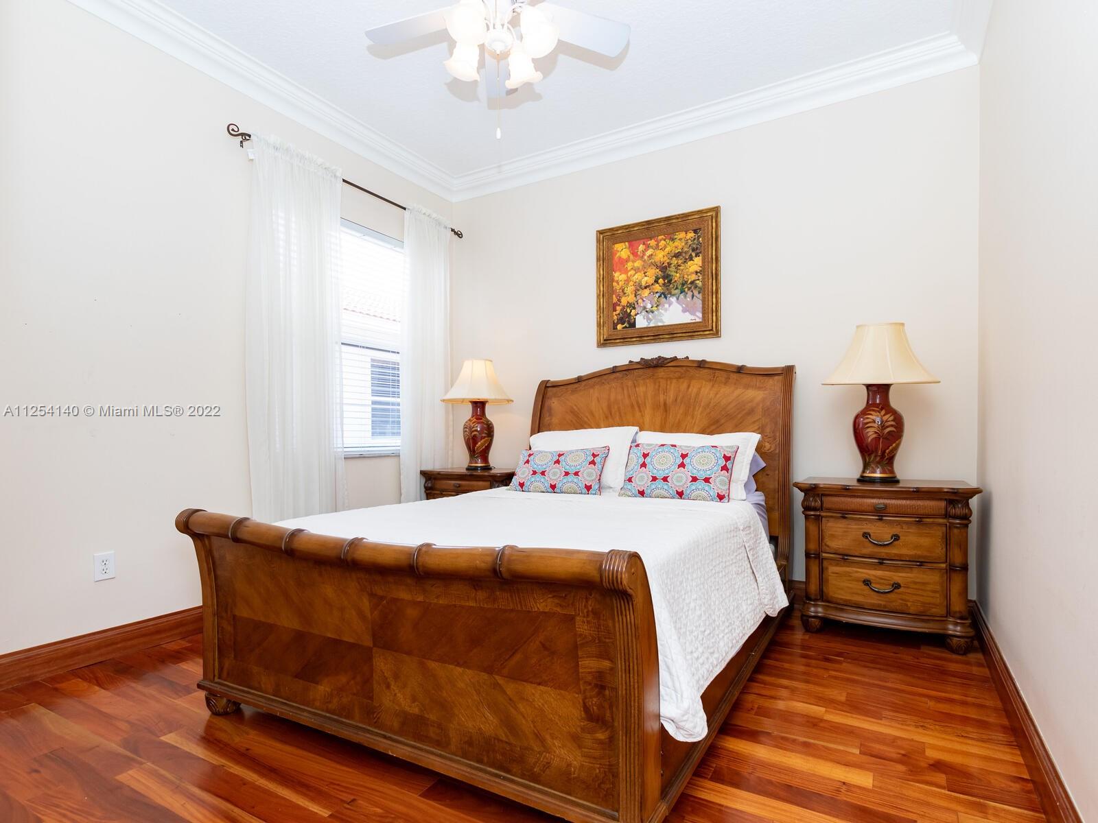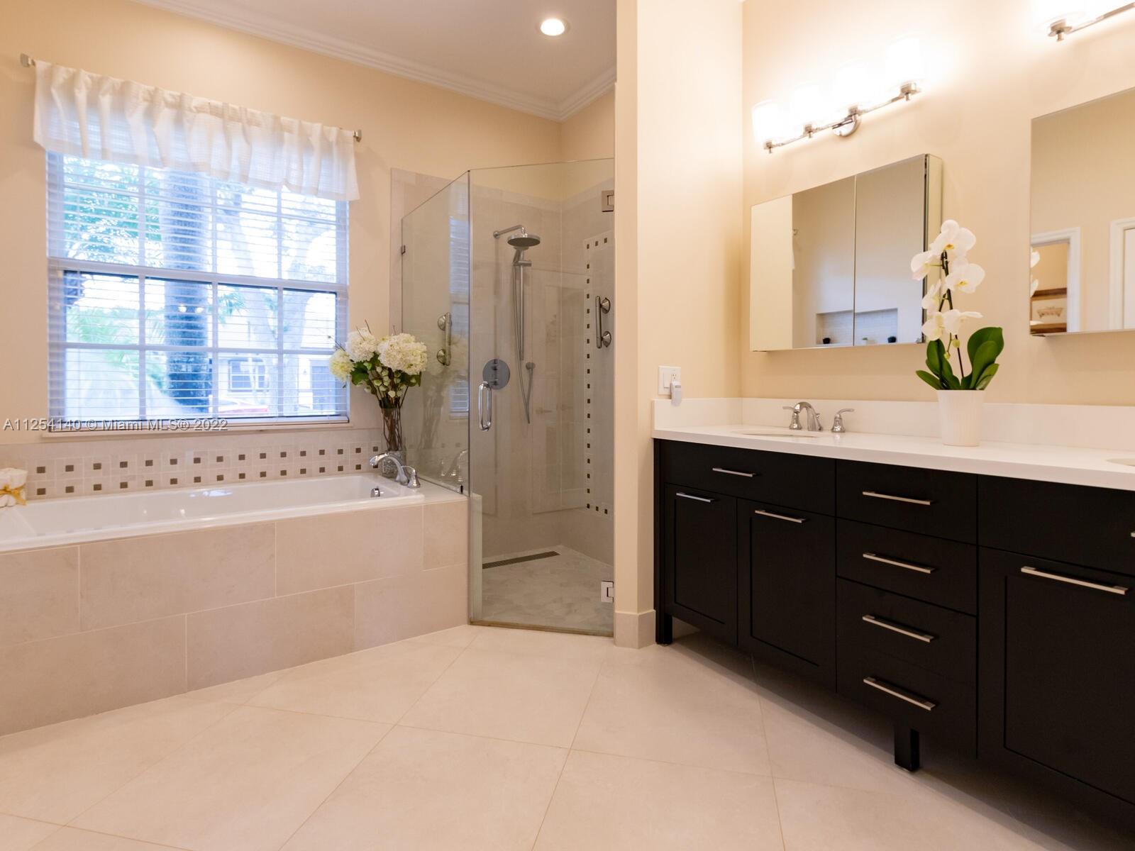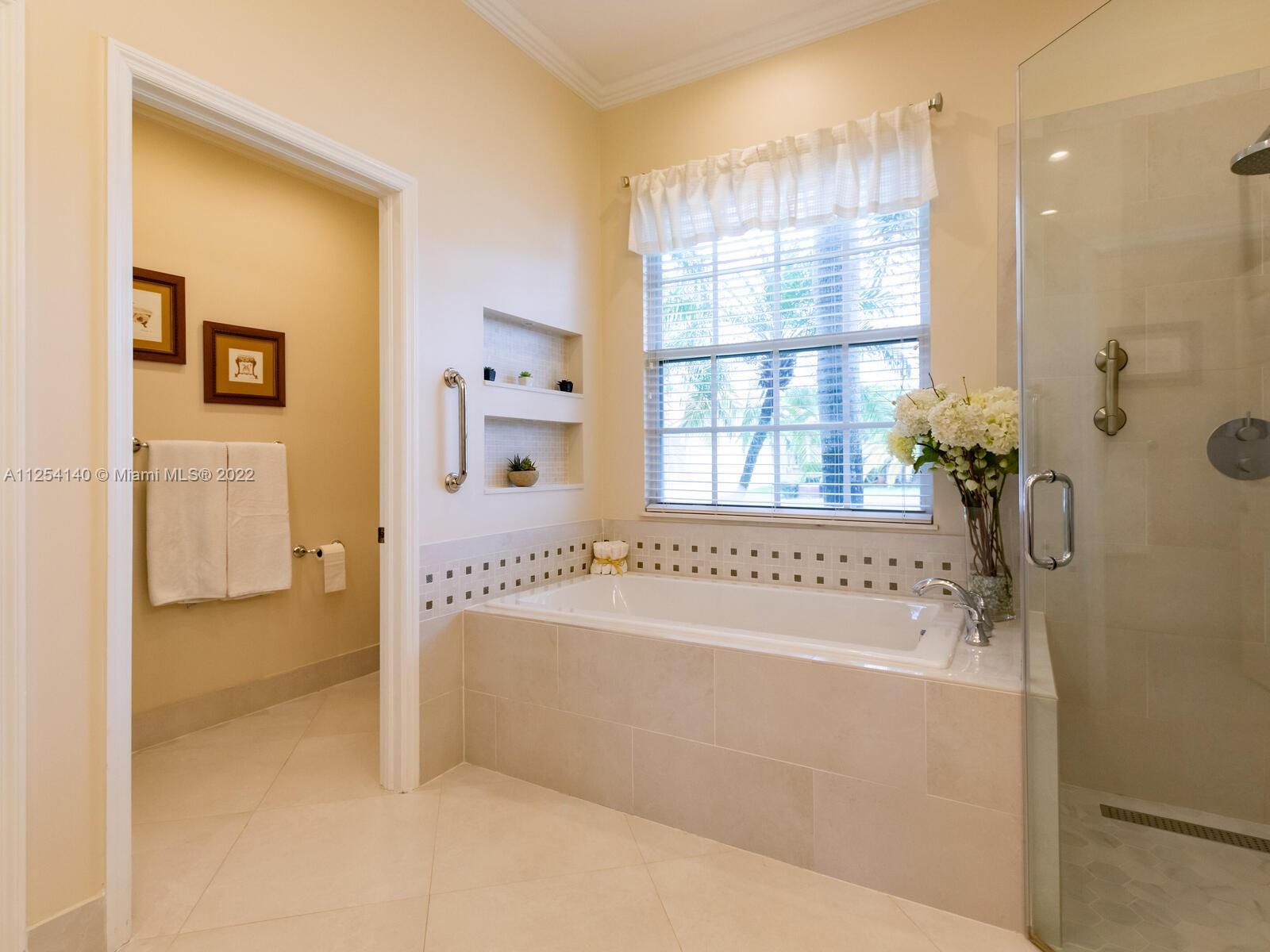 Come see this gorgeous 4 bedrooms, 3 bathrooms, 2 car garage Ranch home in the exclusive "Estates of Pembroke Shores". Home features newer roof - 2018, 24x24 inch Porcelain tiles throughout the house and hardwood floors in all the bedrooms. The master bath was recently remodeled with custom cabinets and jacuzzi tub. Kitchen is also updated with new cabinets and stainless steel appliances. Washer and Dryer - 2019, Water Heater - 2018, A/C 2012. Wait until you step outside and see the beautiful Gazebo installed in 2021 with lighting and fans. Not to mention the heated pool (salted) and jacuzzi with a spectacular view of the lush garden and lake. Then there is the garage with built in storage closets all around to keep everything organized including documents and files. This will not last!!