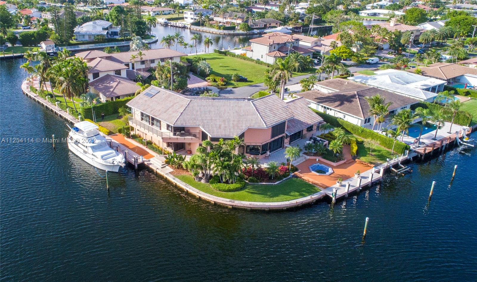 YACHTERS DREAM POINT LOT on 352' of seawall with ocean access ready for you to relax, take in the breathtaking full ocean and intracoastal views in this exclusive neighborhood of Golden Isles. Extraordinary double corner lot 19,261+ sq ft. waterfront lot!! Unique property beautifully maintained with 4 cars garage electric boat lift/dock for (2) yachts and patio areas, 4 Bedrooms and 4 bathrooms beautifully island kitchen with granite countertops soaring light filled entry atrium custom built-ins included. marble topped bar + dual living rooms formal dining room huge M. Suite with corner water views family room. Seller provides Finance. "This GEM property will not last".