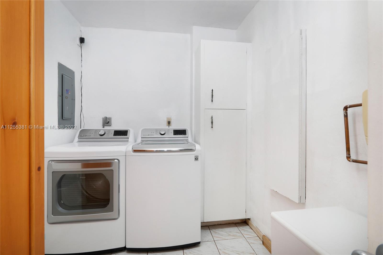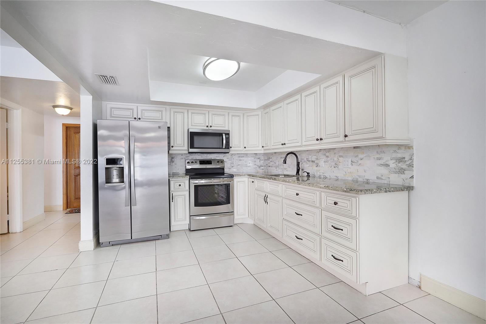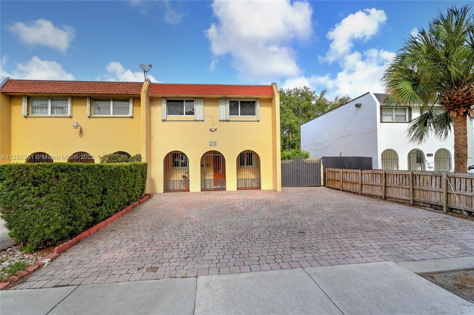 One of the biggest townhouses and lots in Palm Springs Villas with three bedrooms and parking for up to 7 cars, boats and commercial vehicles including secured side carport! Updated kitchen and bathrooms. Great open floor plan downstairs with huge living/dining room that opens to the private fenced terrace. Impact windows upstairs, accordion shutters downstairs. Separate laundry/utility room with newer LG washer & Dryer. Tankless/instant water heater. Great location within walking distance to Amelia Earhart Park, restaurants, shopping, and close to major highways. Only $19/mo HOA.