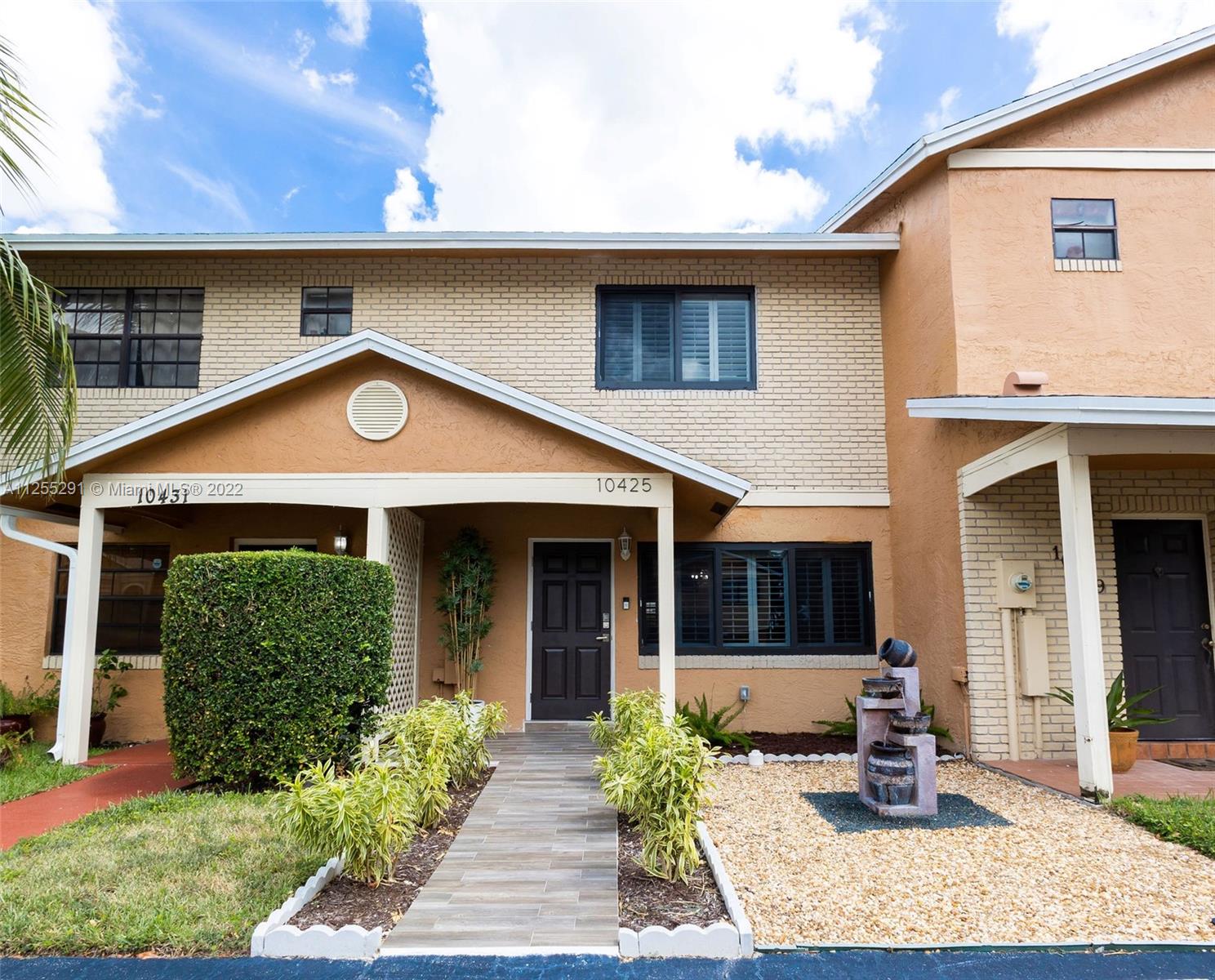 Beautiful Upgraded Townhouse. This home styles an updated Modern Kitchen with Stainless Steel Appliances, Wood Floors upstairs with Modern Tiles throughout first floor. This Unit Has Beautiful Lake View. Both Bedrooms Upstairs, 1 Bath Upstairs- 1/2 Bath downstairs with Spacious Living And Dining Area to relax with family and friends- Lake View from the Kitchen is a Plus. Extra storage room outside. Open patio fenced in for outdoors entertainment. Location is prime in Coveted Neighborhood. Close to highways, Shopping Centers, and minutes from Miami. This is the place to settle down in. REQUEST ALL APPOINTMENTS USING SHOWINGTIME!