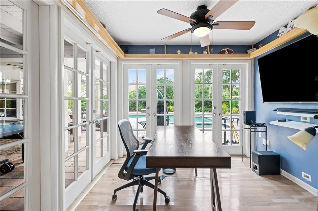 Beautiful home on a corner lot in Lakes of Emerald Hills. Split floor plan with 3 bedrooms plus office and playroom. Marble floors in the living areas and wood in the bedrooms. The recently renovated master bath has large rainfall shower with sitting area and a double sink vanity. French doors lead out to the pool and covered patio which is perfect for entertaining. New roof in 2021 and new AC 2022. Tankless hot water heater, pool heater, and LED lighting. The Lakes of Emerald Hills is one of the most desirable communities in Hollywood and features 24 hour security, dog park, playground and basketball court.