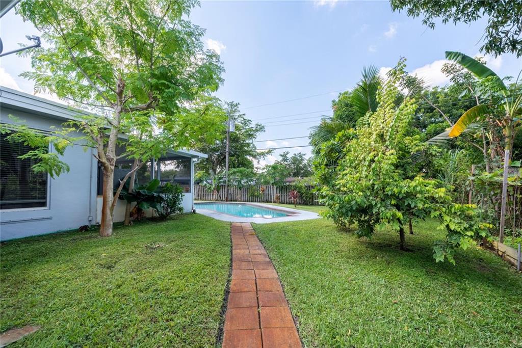 Brand new roof 2022! This beautiful 3 bedroom, 2 bathroom home is move in ready! Features include beautiful wood flooring, White kitchen, Tile backsplash, Granite counters and Stainless Steel appliances, screened in porch, swimming pool and large yard with a tropical fruit garden of Mango, papaya, avocado and jack fruit trees plus lemon and orange bushes! Great space for outdoor entertaining! NO HOA! Beautiful Golf course view from your relaxing front porch. Side yard features slab for special storage. Great neighborhood schools! Don't miss this one! Walk in and fall in love!