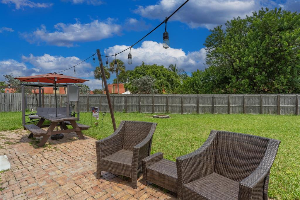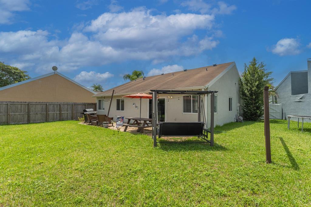 Recently renovated & freshly painted 3 bedroom, 2 bath home ready for immediate occupancy. Very light and bright with high ceilings in the living area. The spacious fenced backyard is one of the things that makes this home unique. Perfect for gatherings and plenty of room to add a pool or enjoy the ccommunity pool close by. Kitchen features quartz counter tops, stainless steel appliances and white shaker-style cabinets. Newer washer & dryer. A/C just 2 years old. Impact windows. Both bathrooms have redone. The extra long driveway is another special feature of this home.