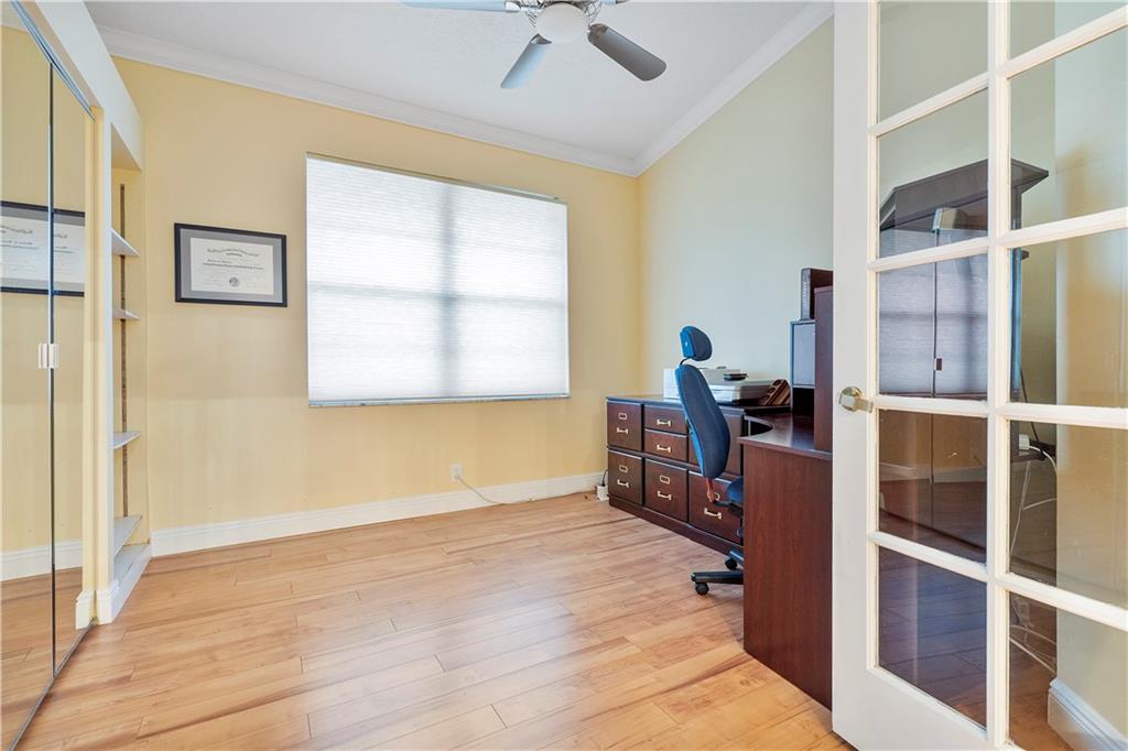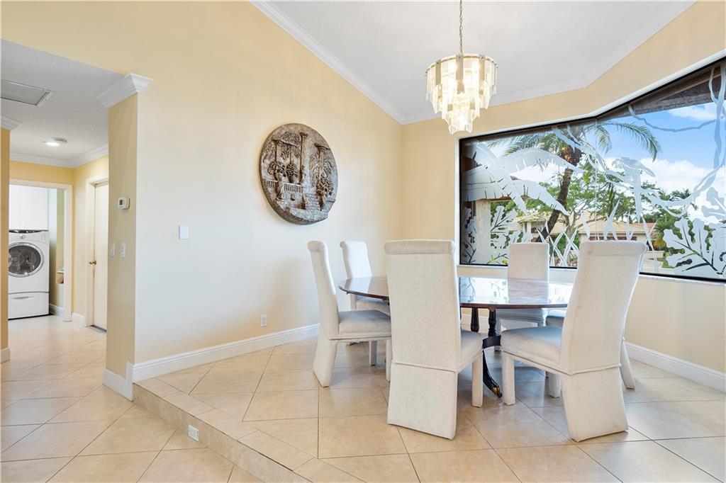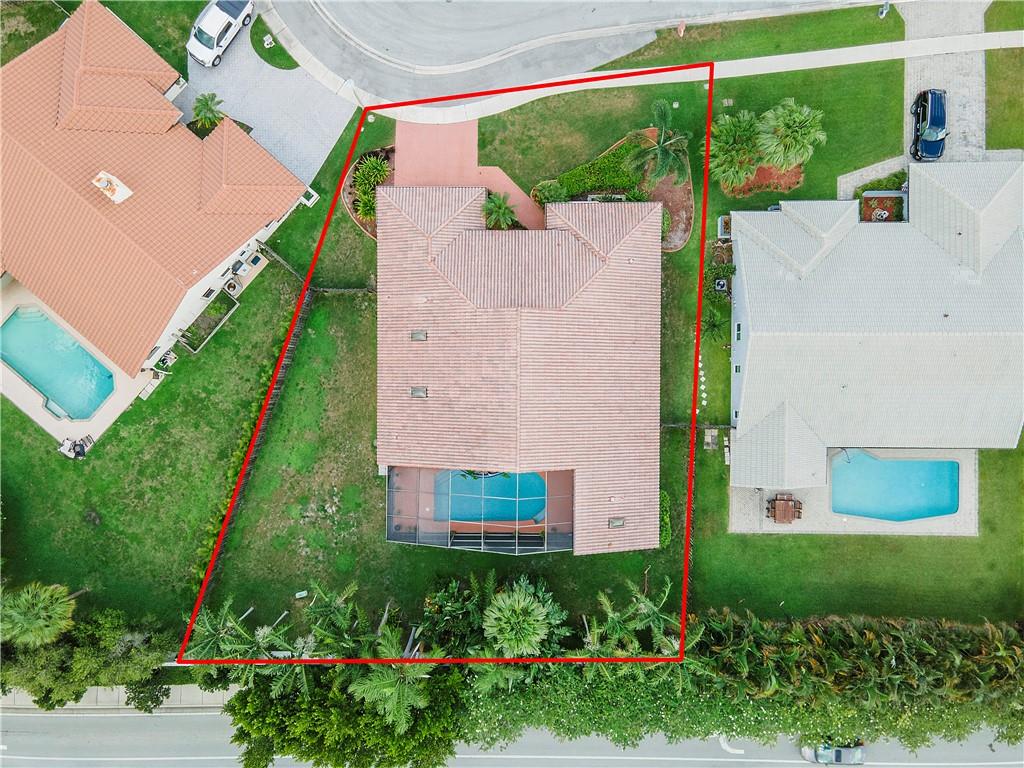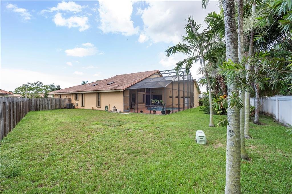 One or more photo(s) has been virtually staged. A rare picturesque custom home beautifully designed on both the exterior and interior while being located on a cul-de-sac. Approx. 2600 SF with a 2-car garage and a tile roof. Two sky lights located in living area and one in the master bathroom. Hurricane safe with combination of accordion shutters and impact glass windows. Electric panel recently replaced. Vaulted ceilings with windows extending from ceiling to floor in living areas and kitchen. Bedrooms have laminate wood flooring. Crown moldings throughout home with LED recessed lights in the kitchen and living areas. An oversized kitchen with lots of cabinets, granite counter space, a polished glass backsplash and a central island with views of the pool/patio.