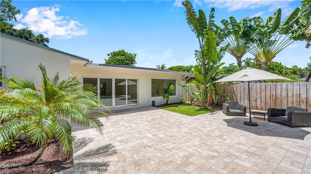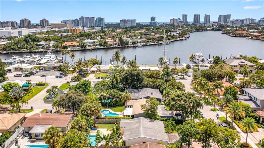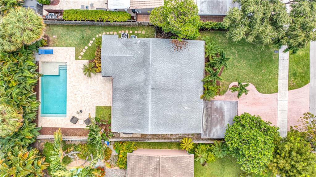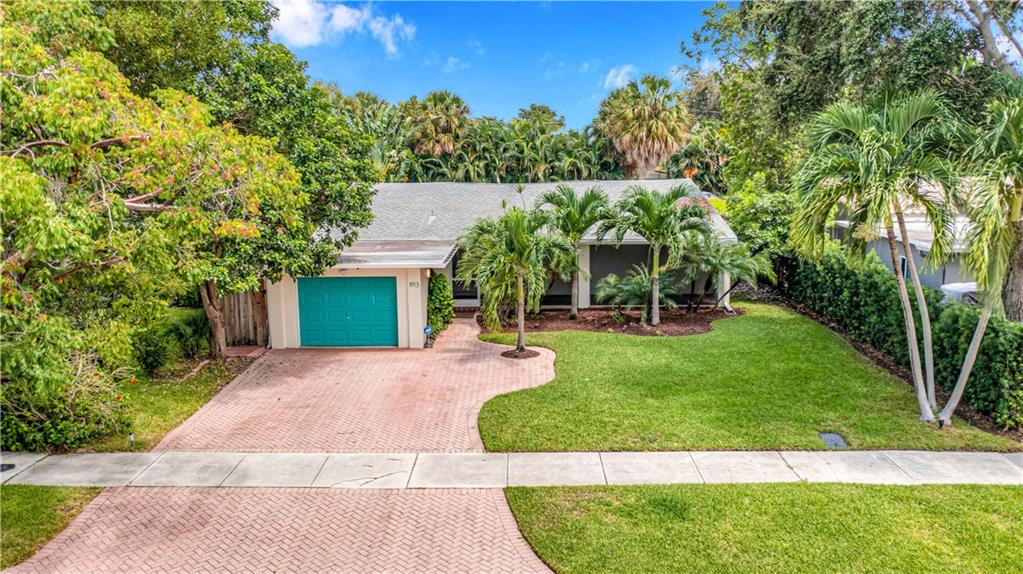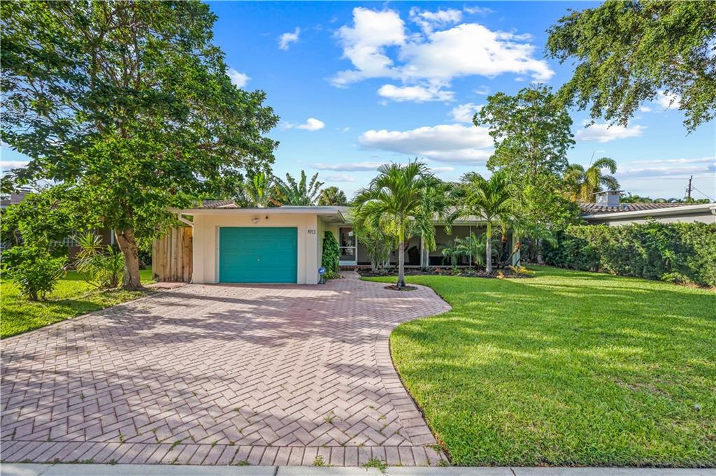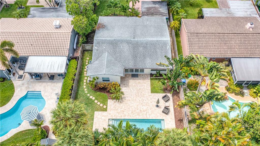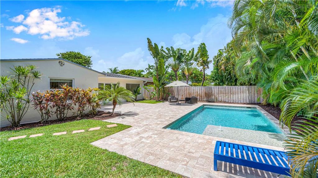 Bright and spacious home on a deep, private lot approximately a mile from the beach. Located in the Highlands section of Victoria Park, this cool mid century has sleek terrazzo floors, generously sized rooms, updated kitchen and baths, a home office, impact rated windows and doors. A wide driveway leads to a large, screened entry porch. An L-shaped living dining area opens through wide sliding glass to the pool and large surrounding yard Adjacent is a modern, eat-in kitchen with quartz tops fully equipped & including a wine chiller. Off the kitchen is a full laundry with wash sink leading to the air conditioned office cleverly constructed within the garage area allowing plenty of remaining storage area. The neighborhood is lined with sidewalks. Parks, stores and restaurants are all nearby.