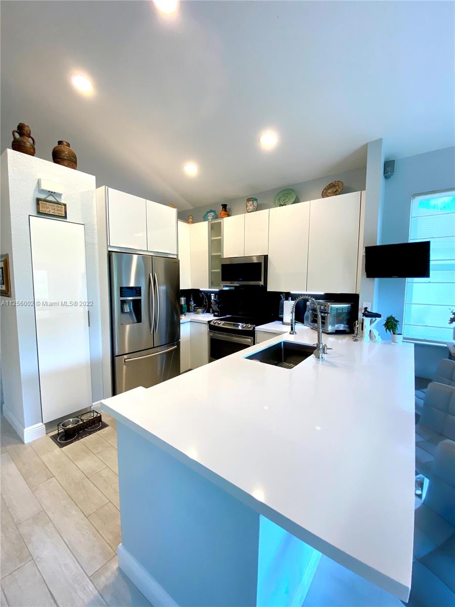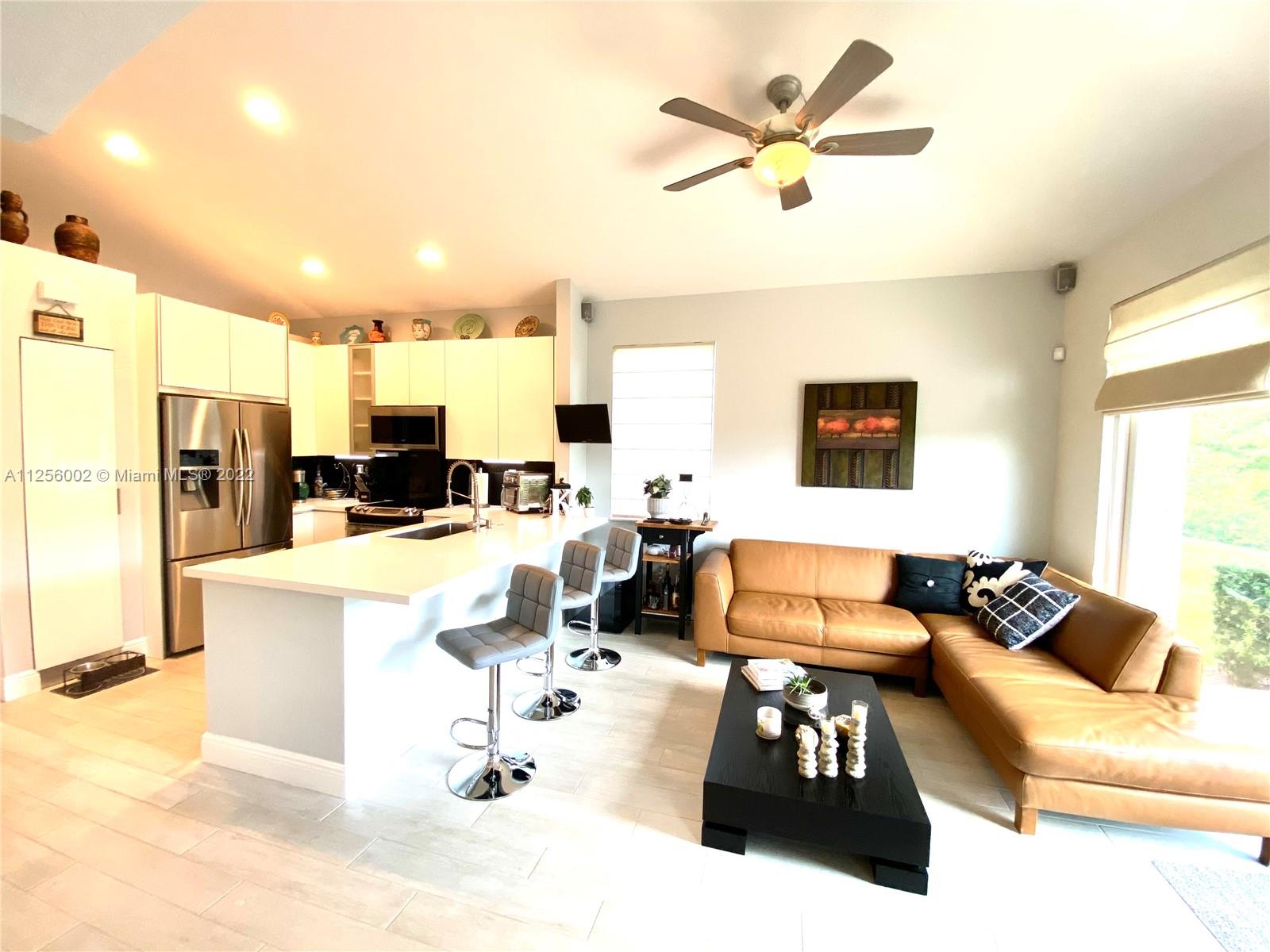 Completely updated - one story townhome. 3 Beds/2Baths+Family room+1 car garage, open kitchen, new stainless steel appliances, quartz counter tops, Italian white cabinets, recessed lighting, pantry. New tile floors in living/dining room. Master bath fully updated, dual sinks, granite counters, glass shower sliding doors. Built-in office space, laminate floors in bedrooms & walk-in closet. Custom made doors in laundry+ guest bath. Natural light flows through the windows in this unit; high impact windows & hurricane shutters. Built-in awning in the patio. Extra-sized premium lot. Walnut Creek, a resort style comm. offers a bike/jog path, business center, clubhouse, gym, pool, tennis courts, spa, gated, 24hr. security! HOA includes Premium TV cable/Internet. No HOA approval required.