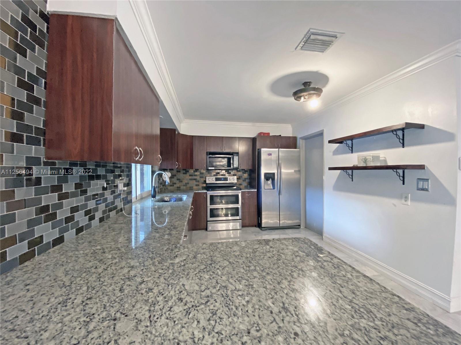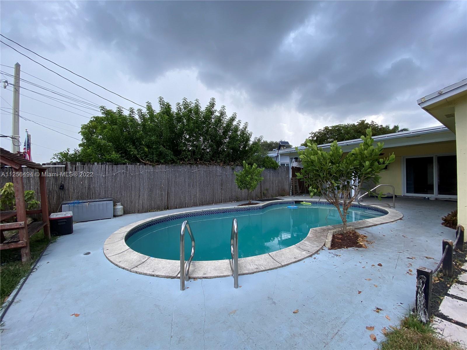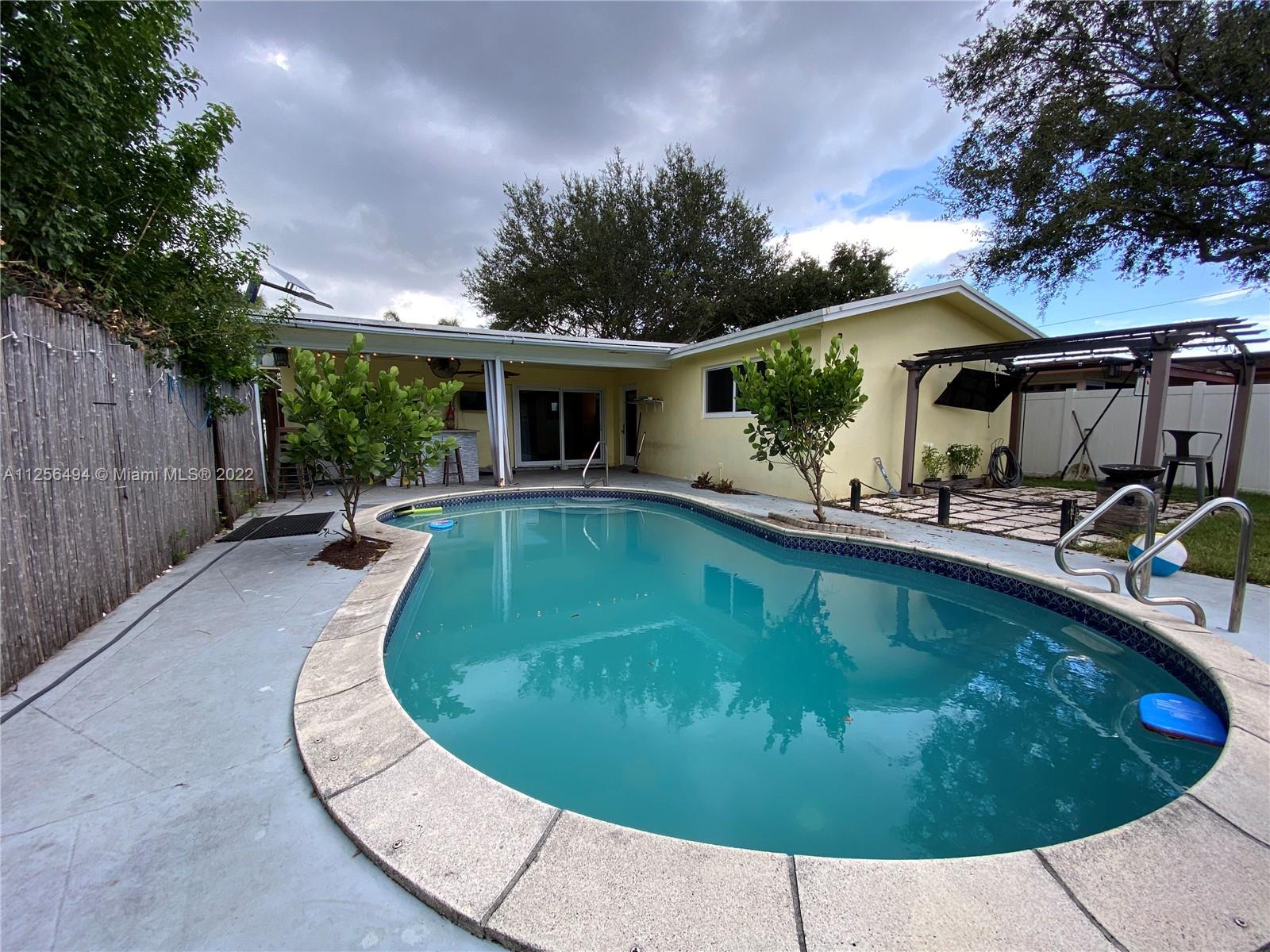Beautiful 3 bedroom, 2 bath pool home on an oversized lot in desirable Hollywood Hills. Enjoy the open and spacious design of this updated home featuring a modern kitchen, new granite countertops, stainless steel appliances, oversized master suite, designed bathrooms and more. Living and dining rooms shows beautifully with tons of natural light entering from the patio area overlooking the pool. Great private backyard, outside granite bar, tiki area, playground included. Lots of room for entertaining family and friends or just relaxing outdoors. Roof 10 years, PVC pipes, bonus room, new flooring, AC 6 years, hurricane impact doors and windows, extended circular driveway. Conveniently located near great schools, parks and shopping. Design this home with your own style. No HOA. Must see.