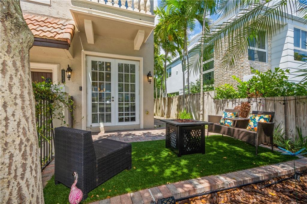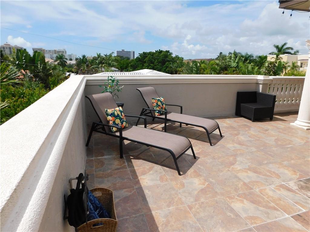 Beautiful 3 bedroom, 3½ Bath tri-level corner townhouse is located in the highly desirable Bayview/Coral Ridge neighborhood and has a large rooftop terrace overlooking the city, with privacy for sunbathing or social gatherings. High ceilings, lots of square footage & designer touches make this large smart home with 2 car garage, light & bright! Travertine marble floors throughout, granite counter tops, stainless steel appliances & lots of cabinet space in the kitchen; plus a wet bar just off the open dining & living area. Primary suite with spa bath, separate shower & two walk-in closets. Laundry room on the second floor with the bedrooms. All Impact windows and doors. The fenced in yard with garden patio is so inviting. Near excellent schools, shopping, restaurants, the park, & the beach!