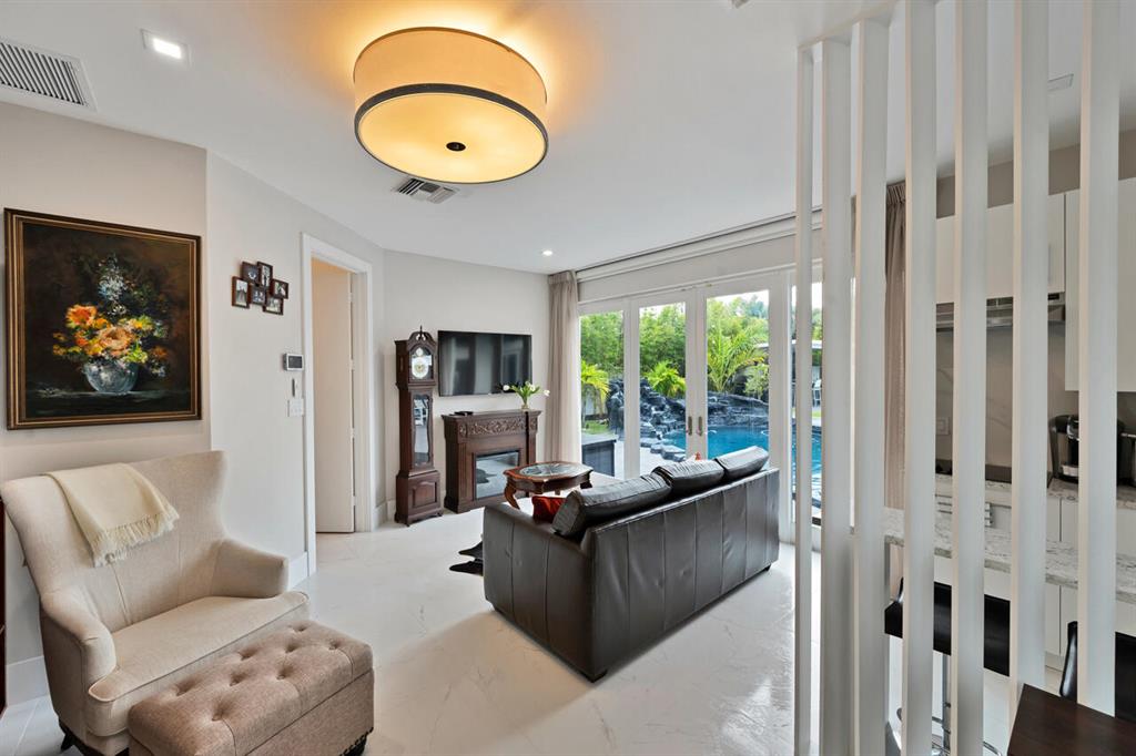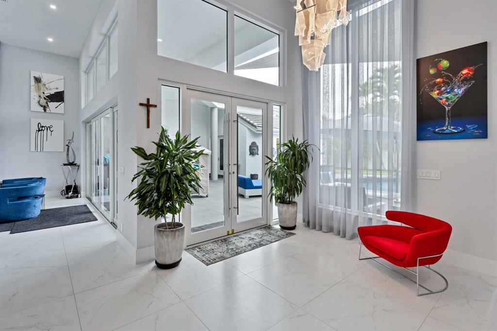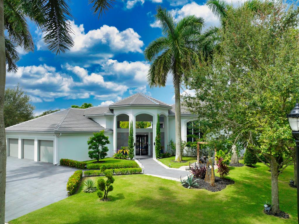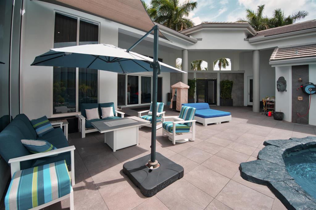 Wait to you see this spectacular, 5/4 newly renovated estate courtyard home that sits on over a half acre lot with a backyard large enough to fit a tennis court. Some of its features include impact windows, floor to ceiling windows, 3 car garage, soaring ceilings, open floor plan, 32X32 porcelain tiles, an ultimate chef's kitchen with waterfall island, tons of storage, double refrigerator, double ovens, & inside/outside SONOS music system. The private courtyard home includes a salt system heated pool, grotto waterfall and an outdoor Florida kitchen with bar seating. This contemporary home has it all!