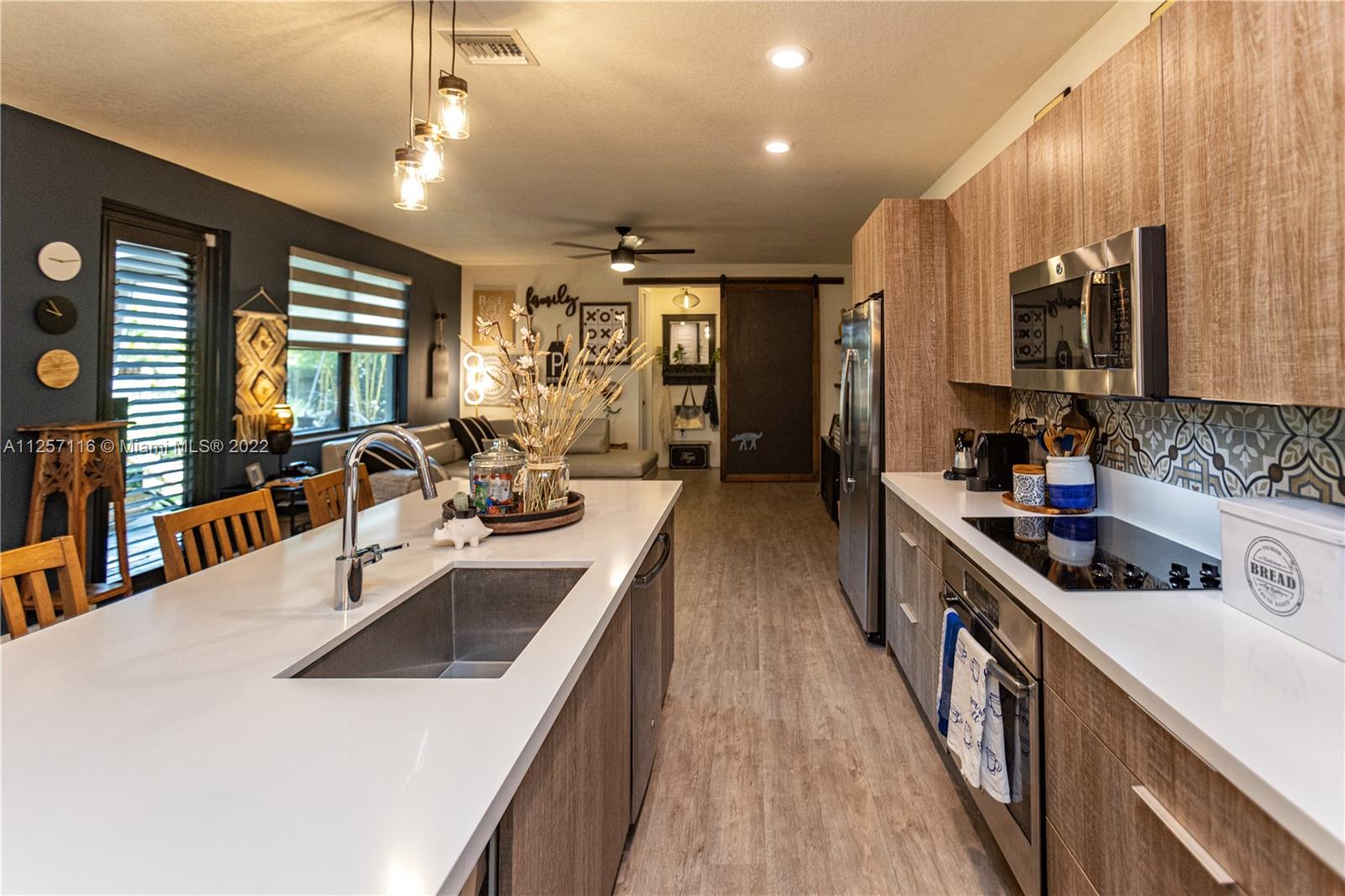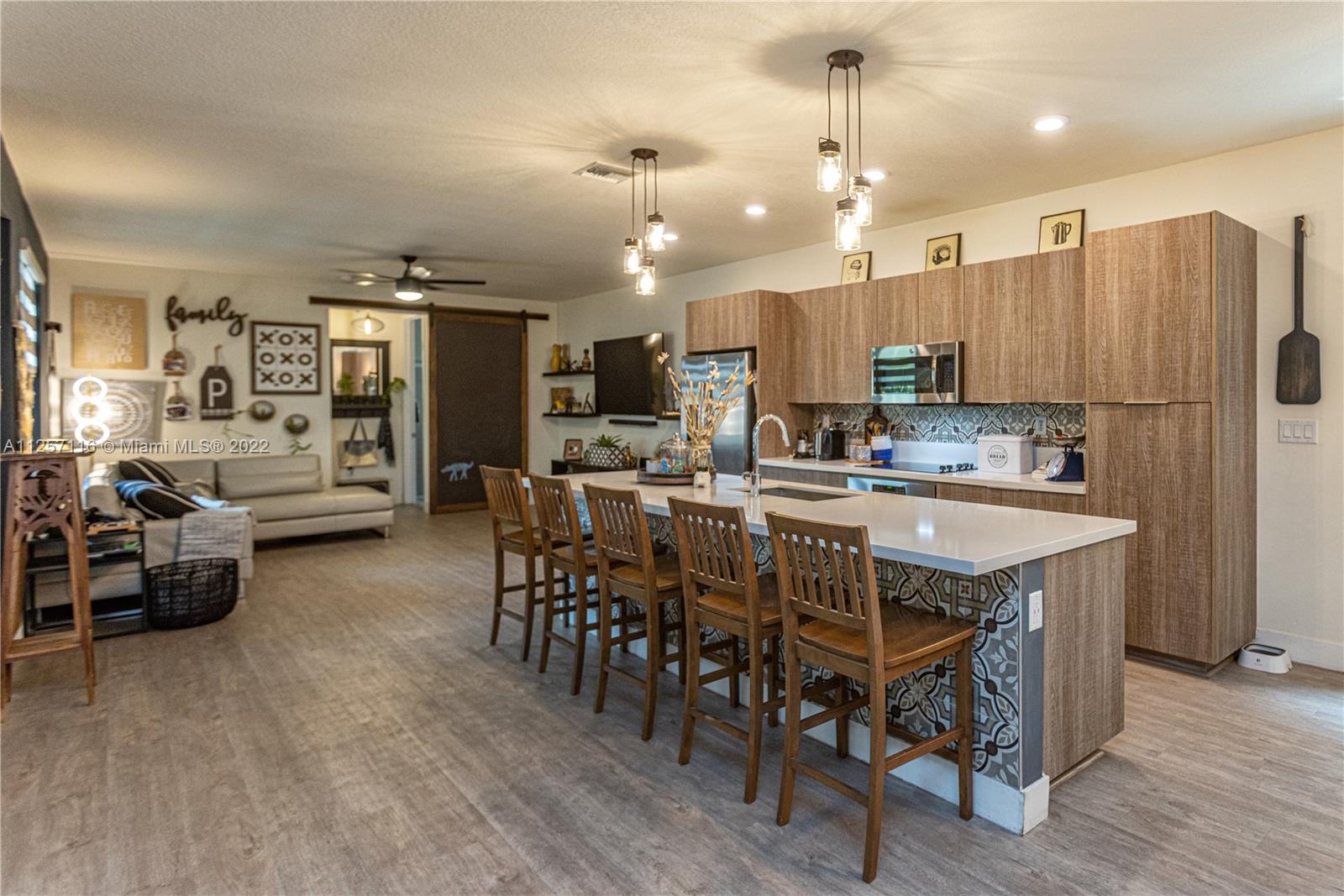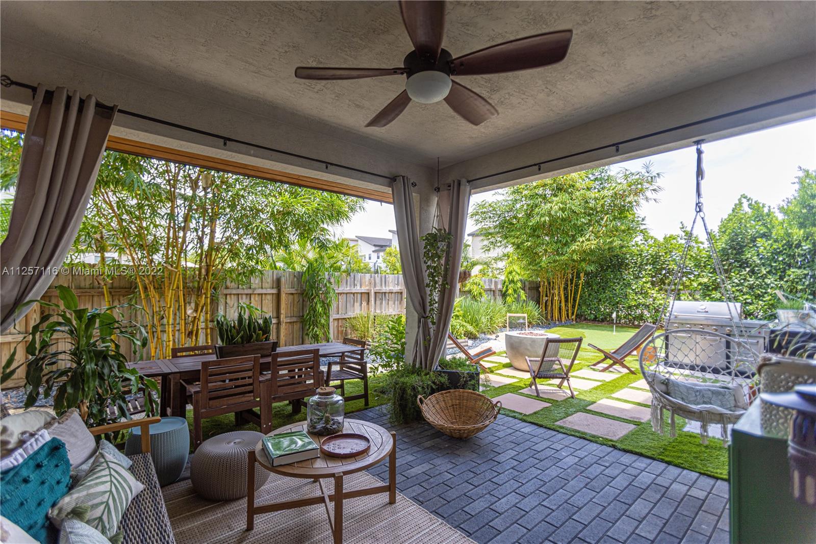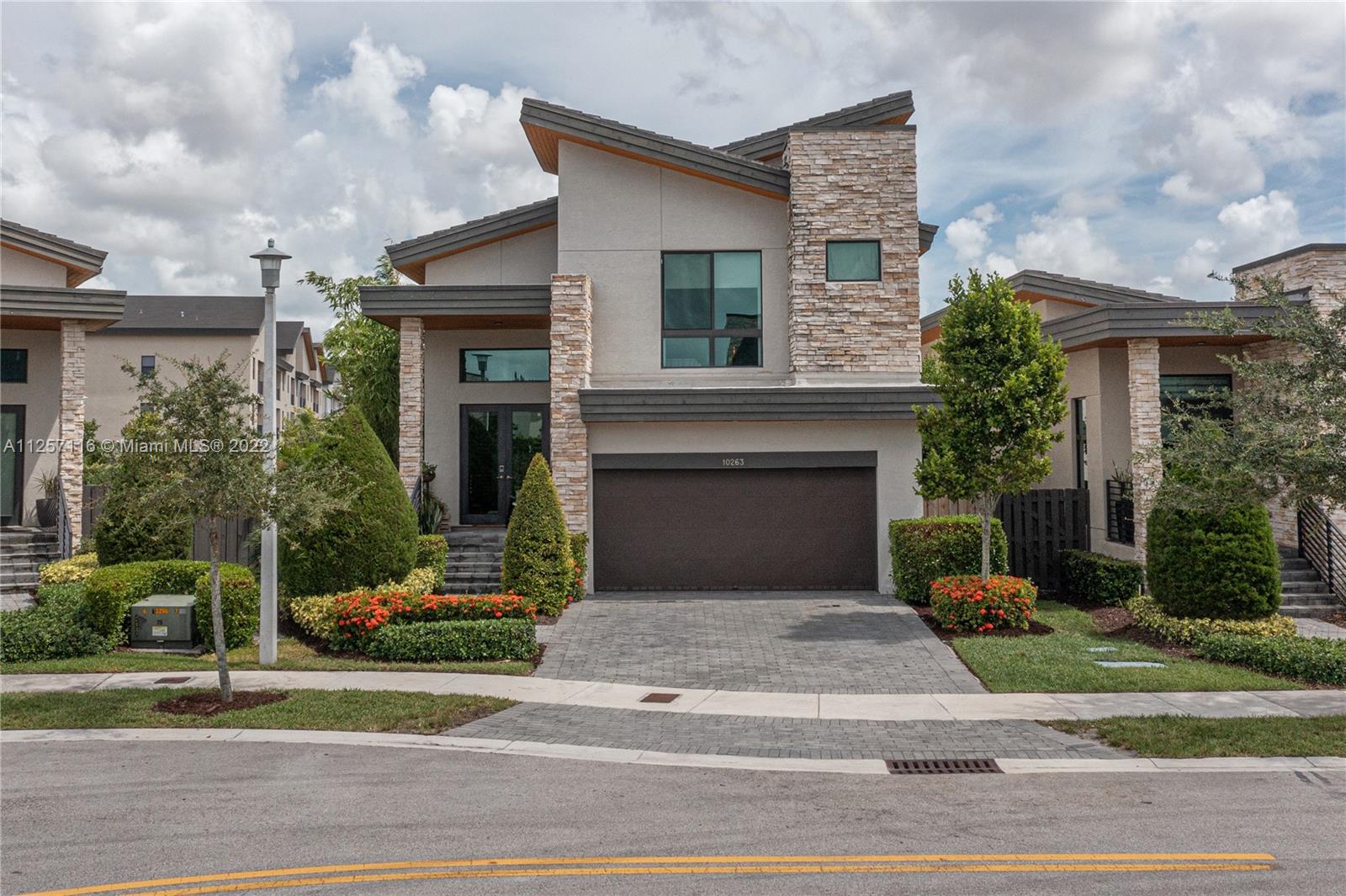 Family-friendly community in Doral. Residence with five bedrooms and four spacious bathrooms with double car garage. Patio area professionally designed landscape with tropical bamboo specimen plants, landscape lighting throughout the whole house providing a 360° night view, automated irrigation system, and mosquito control misting system. Outdoor kitchen surrounded by putting green with three holes and sand bunker. Open floor plan with wine bar and one bedroom and bath downstairs. A community pool, gym, meeting room, tennis court, kids and adults playroom are among all the amenities the clubhouse offers. Close to A+ schools, dining, shopping, main roads, highways, and the Miami Airport.