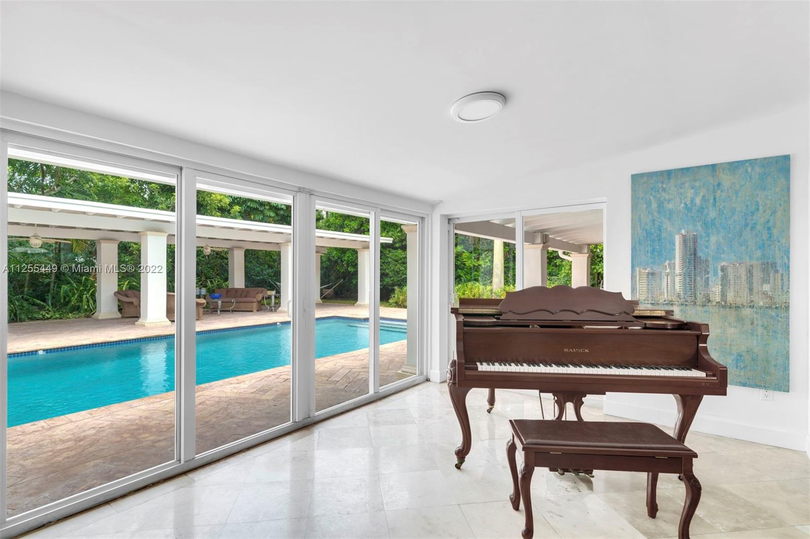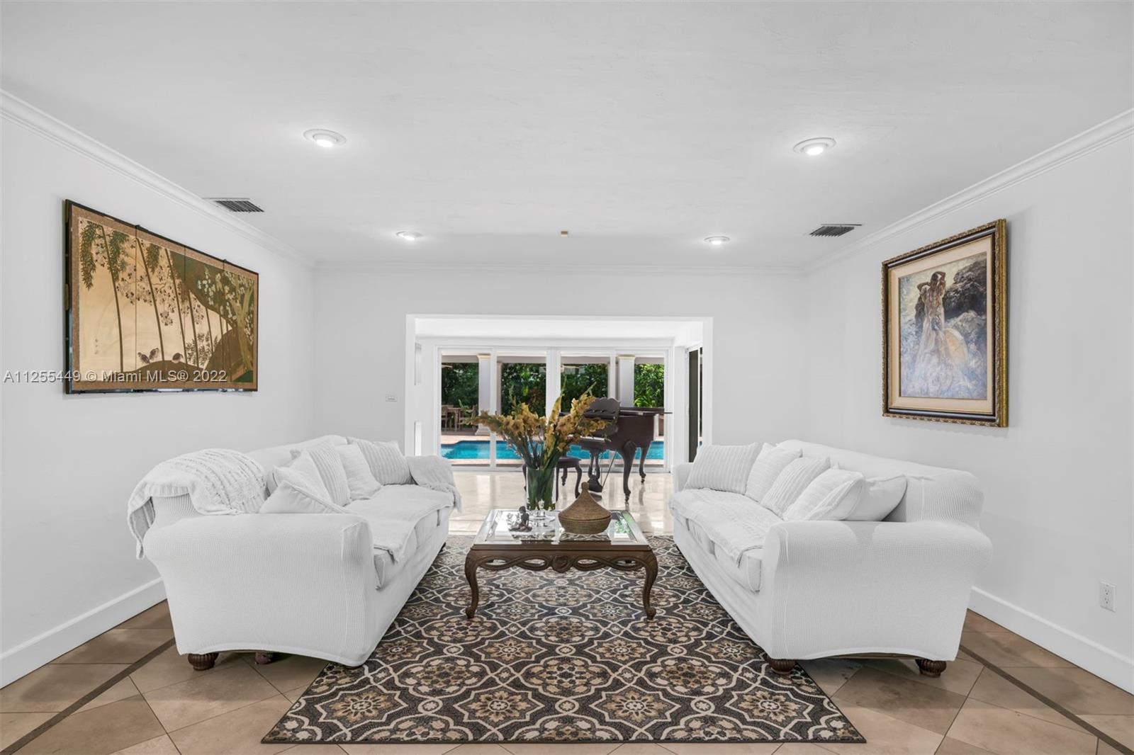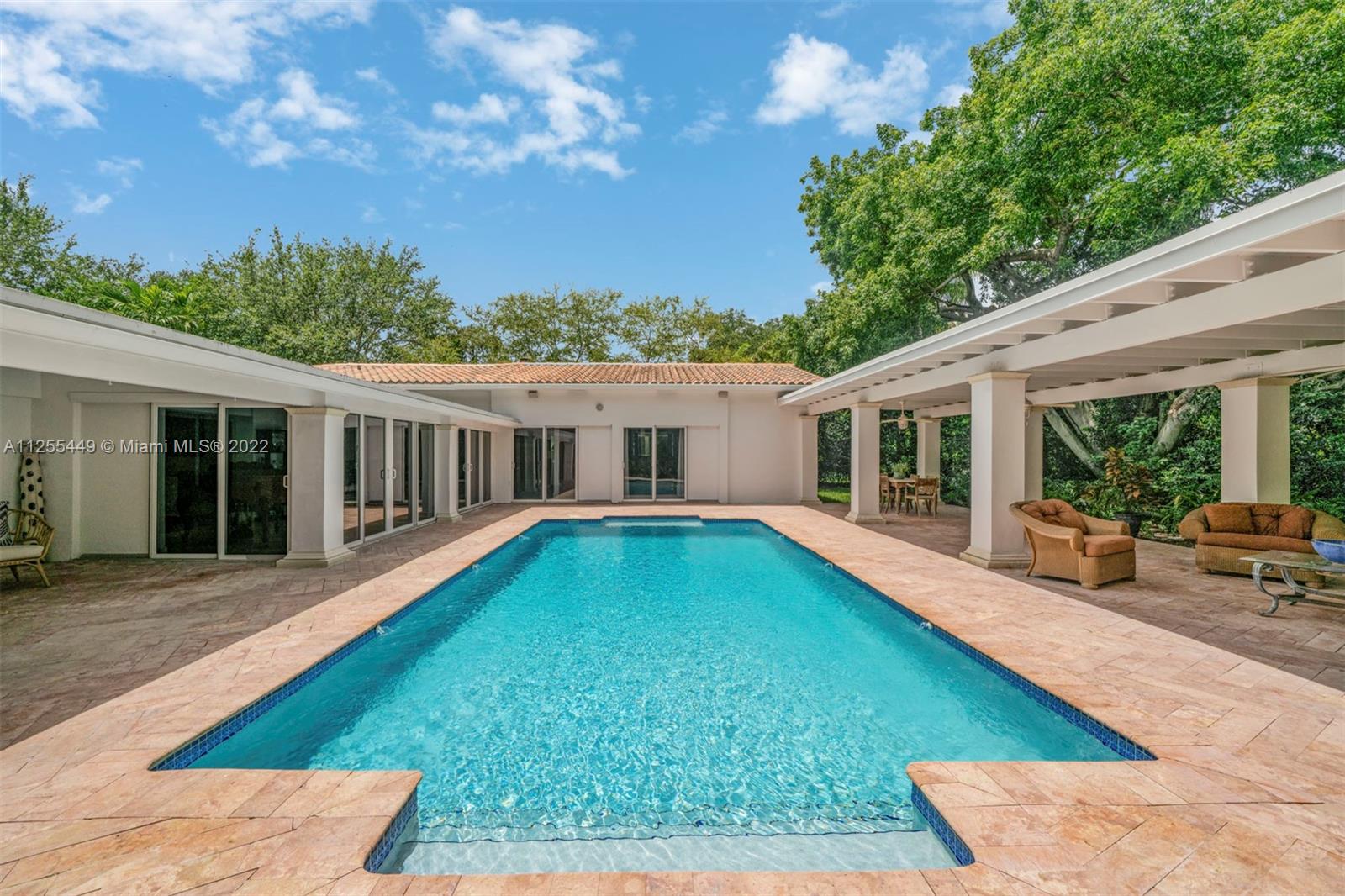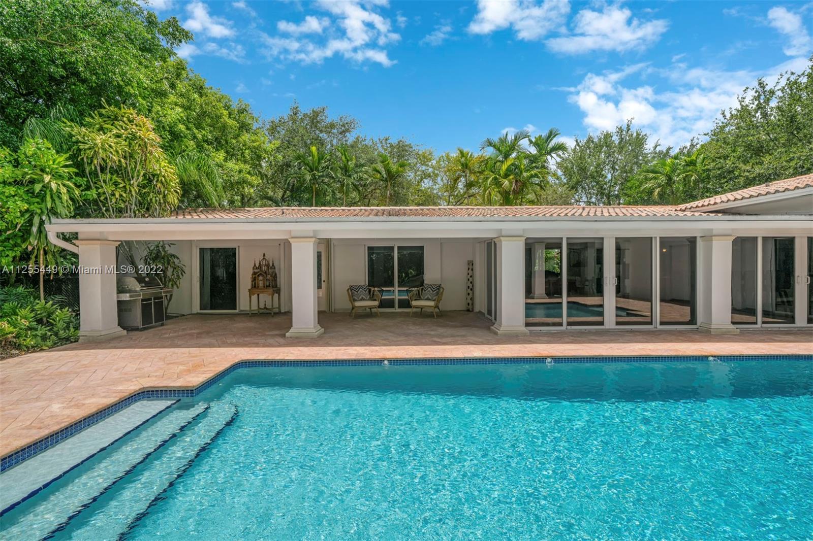 Beautiful 3,811 Sq. Ft. 5-bedroom 4-bathroom home surrounded by lush green landscape. Attention to detail can be seen throughout, with a seamless flow between the family room, living room, and dining area. The light-filled open floor plan leads to a tranquil and private backyard with a lap-style pool and water features. The sleek kitchen includes custom cabinetry, quartz countertops, stainless-steel appliances, and an island. The main suite has two walk-in closets, jacuzzi, dual vanities and direct yard access. Also includes an office, laundry room, wood-burning fireplace, 2-car garage and semi-circular driveway. A rare find and tranquil escape, minutes away from schools, restaurants, shops and parks.