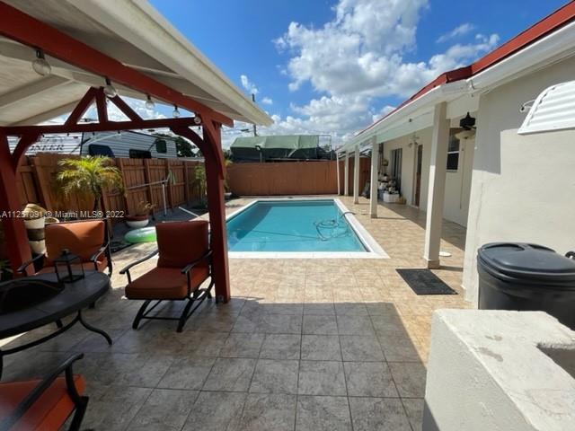 Great corner home. Centrally located. Huge fenced lot with private pool. Perfect open spaces to entertain. Open kitchen with plenty of cabinet spaces including pantry. Granite countertops. Completely tiled home. Laundry space in garage with plenty of storage space. New A/C and water heater, and pool salt pump. Large driveway with space for 8 vehicles. Partial Impact windows plus hurricane shutters. Enclosed patio includes extra fenced space where you could build in-laws quarter or have extra storage space. Roof life expectancy is over but roof is in good shape. Owner occupied. Easy to show.