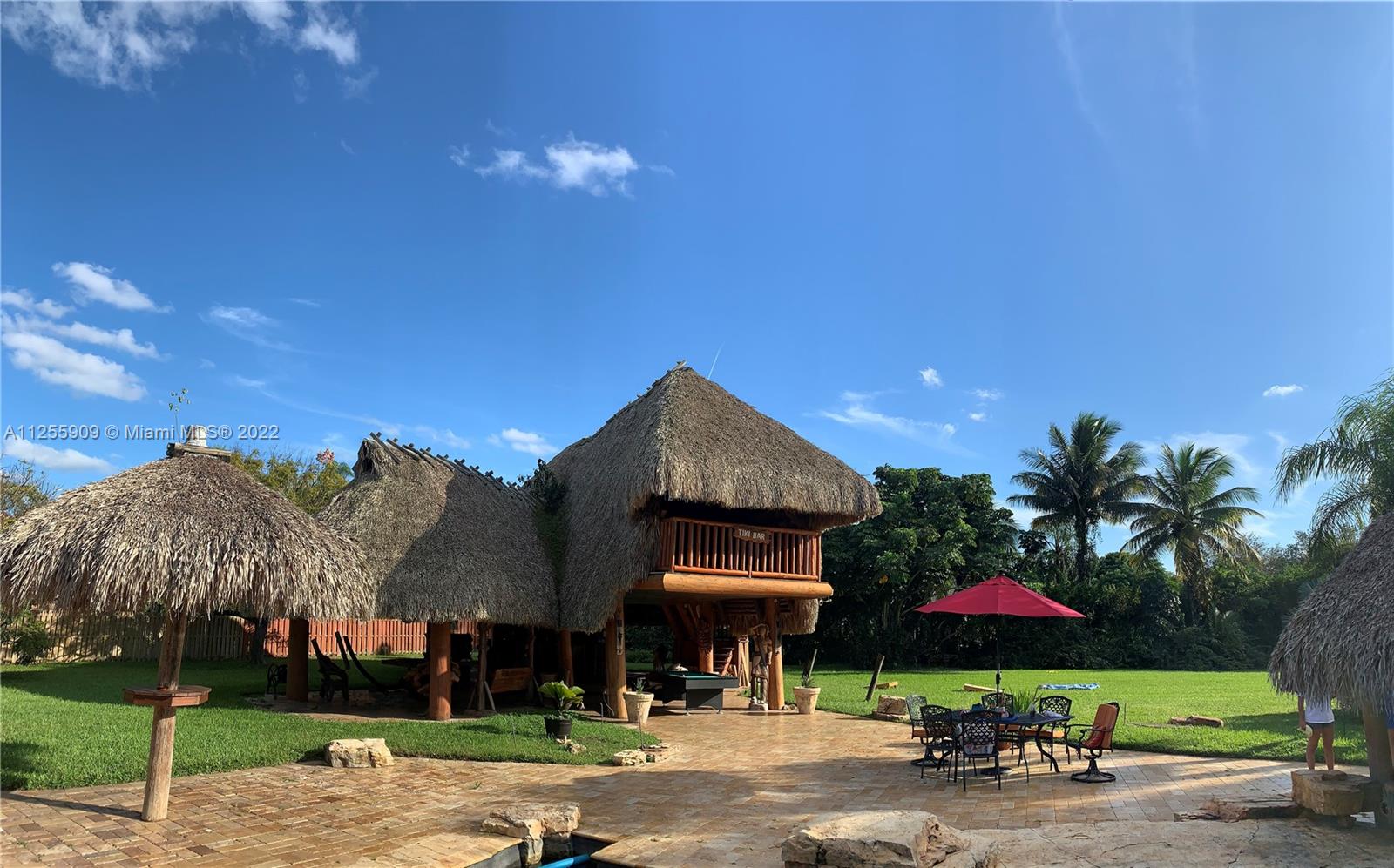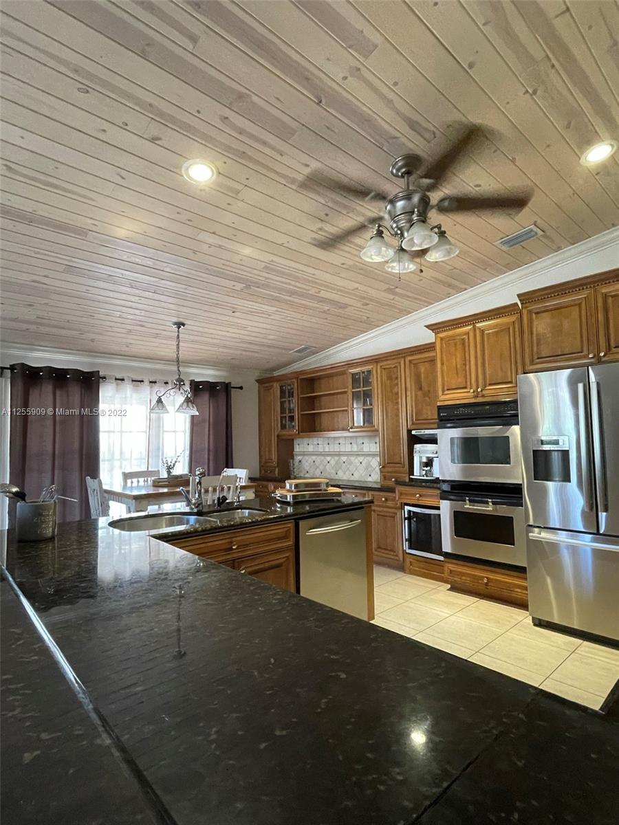 Spectacular home with total area living of 4,500 sq. ft. 5 bedrooms and 3 bathrooms along with huge kitchen and plenty of living space. Circular driveway with enough space for guest parking. Backyard activities include enjoying the tiki bar, swimming in the pool, playing pool, and sun bathing. PLEASE NOTE THAT THE FOLLOWING ITEMS ARE NOT INCLUDED IN THE SALE OF THIS PROPERTY: All the fabric curtains, dining room chandelier, mini wine cooler, win cellar in the living room along with the glass doors, big freezer in the laundry room, all outside fans in the patio and tiki area, the lamp, chairs, BBQ, and kitchen in the tiki area, Ring Doorbell system, and outside surveillance cameras.