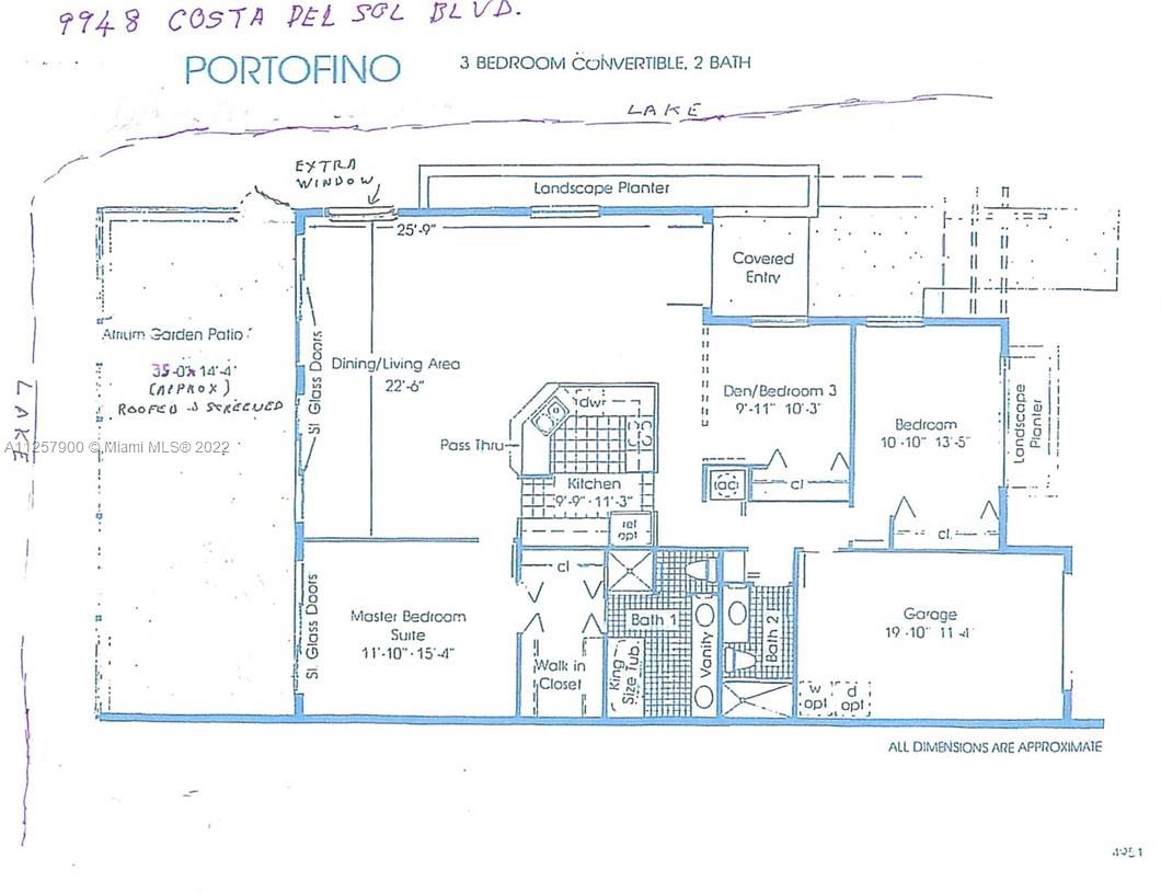 This was the original sales office and Lennar chose the absolute best location and then added some extras! The lake wraps around on two sides of this popular one-story Portofino and an extra window was added to better enjoy the stunning views. The huge terrace was tiled, screened and roofed (Assoc. managed}– a perfect place to watch fantastic sunsets across the widest lake with a fountain plume in the center. The property is rented through April, please do not disturb the tenants. The home has accordian shutters, is tiled throughout and the garage has finished cabinetry, tile floor, ac and the potential to be extra living space. The community offers first class communication services including security, TV and Wi-fi to all homes. Gourmet restaurant and lounge in community.