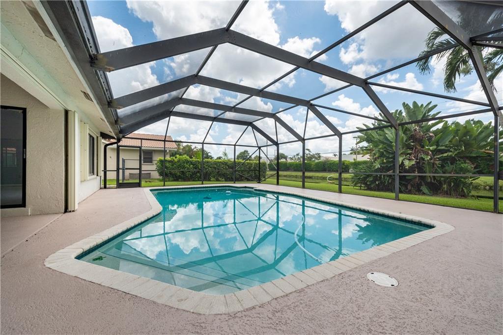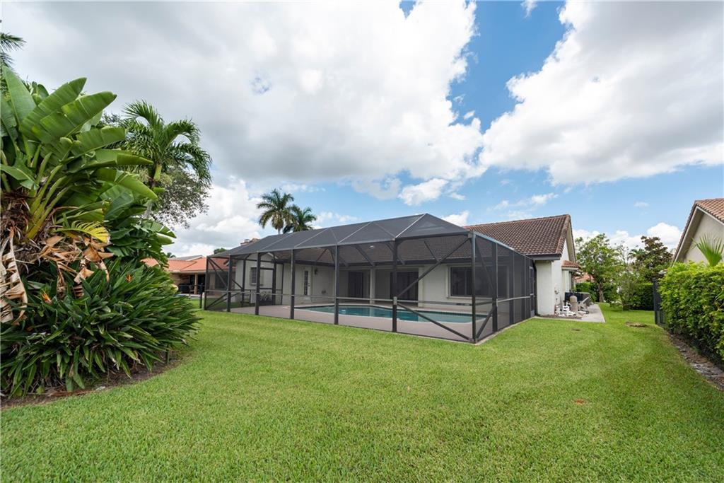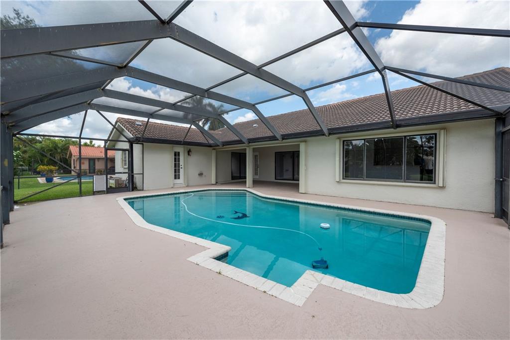 JACARANDA LAKES 4/ 2.5 bath waterfront pool home located in a kid friendly neighborhood. Great curb appeal w/ a circular driveway and 2 car garage. The living rm, dining rm, and family rm areas have vaulted ceilings and flow into the kitchen which features an island and eat in kitchen. The stacked bedrooms make this home perfect for a growing family! The Master Bedroom has two large walk-in closets and access to the pool/patio. The Master Bath has dual vanities and separate tub and shower. Entertain guests Florida style while relaxing in the screen enclosed pool. Fantastic water views of the pool and canal from most rooms. All windows have accordion shutters as well as accordion shutters across the covered patio. Walking distance to shopping, schools, and places of worship.
