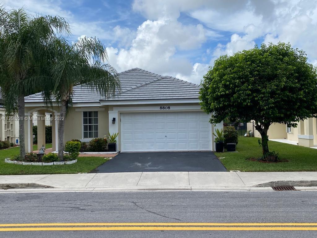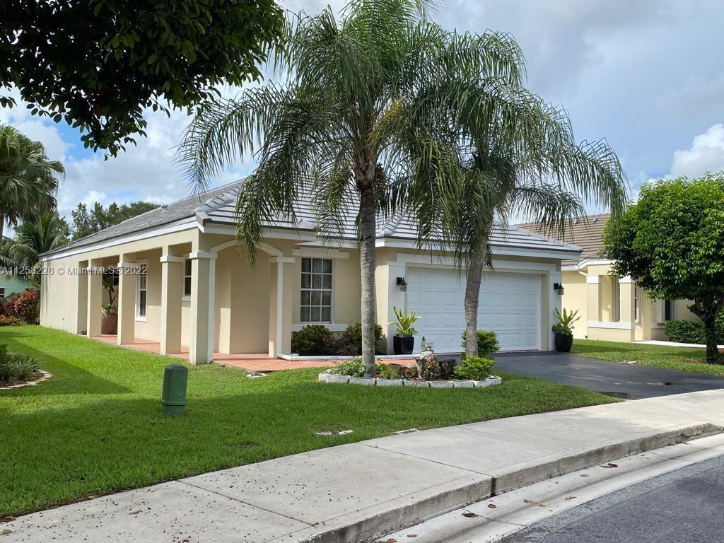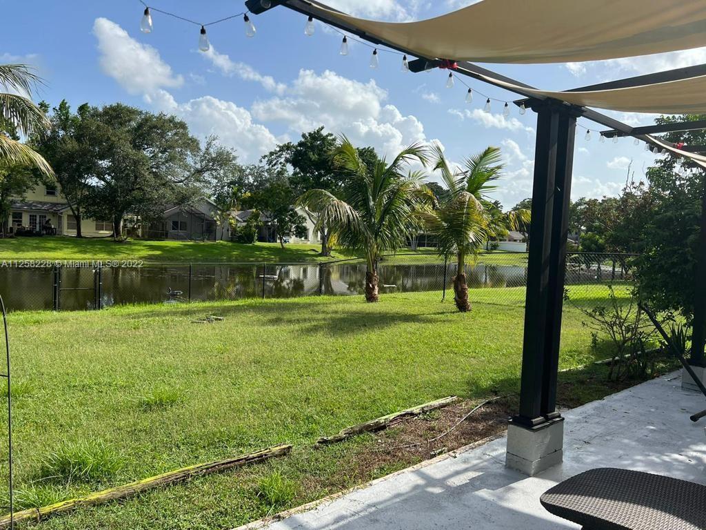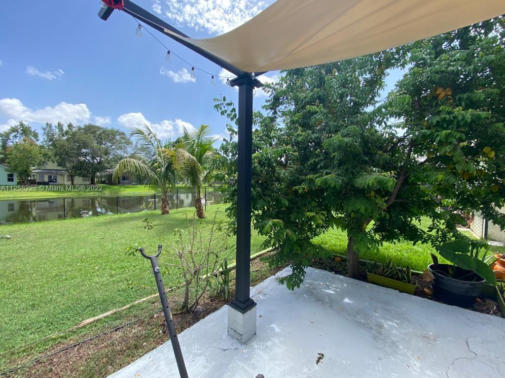 This beautiful house with 3/2 double garage a large patio in front of the lake remodeled bathrooms and floors in social area and vinyl floors in the rooms a remodeled kitchen, new washer and dryer, AC 4 years changed, new roof, heater 3 years electric, fruit trees, fence and security cameras can be rented and community pet friendly