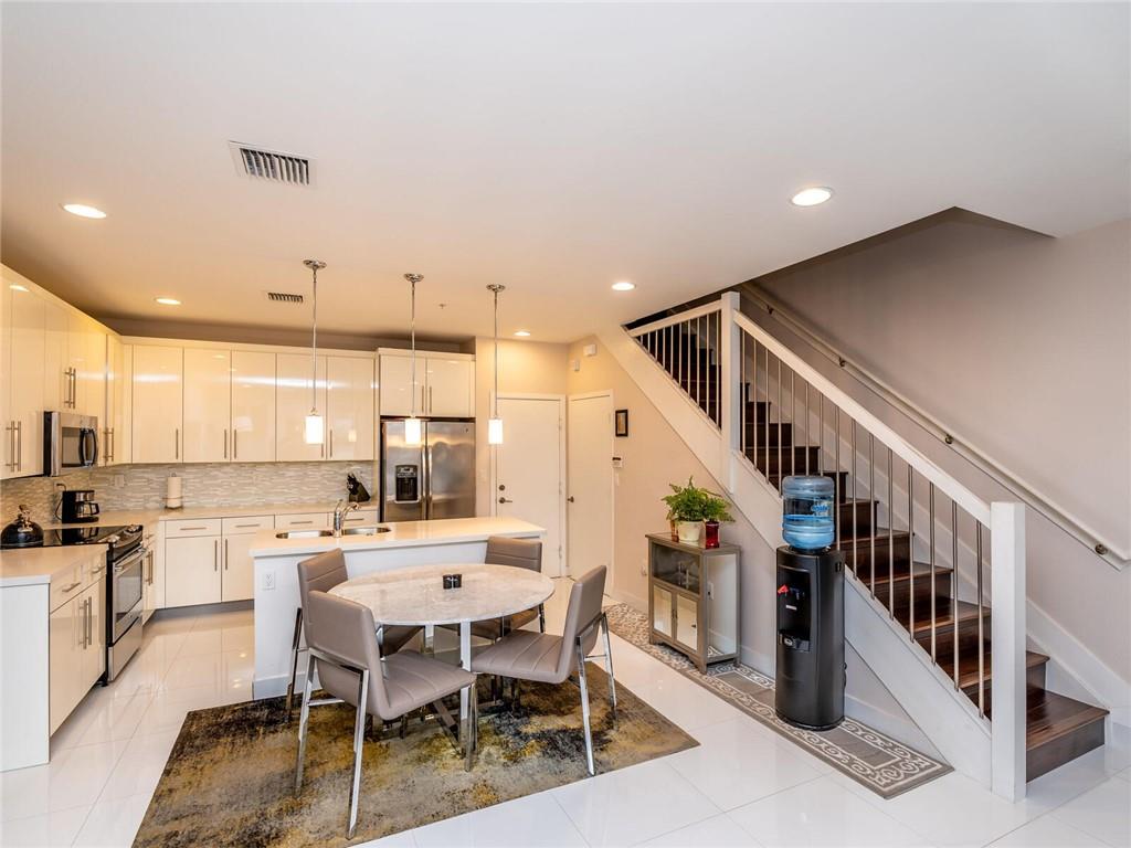This pristine 3 bedroom, 2.5 bath, two car garage townhome is centrally located in Aventura Place and offers a great open floorplan. First floor features a huge kitchen with an island overlooking the dining & living area. Stone countertops, 24"white porcelain tile. Rich hardwood staircase leads to all spacious bedrooms & laundry area upstairs. Primary suite includes an oversized walk in closet & balcony. Big open landing used as a home office. Volume ceilings, plenty of storage space & natural lighting. Condo fees include building exterior, basic cable, alarm & pool. Plenty of guest parking. Impact Windows and Doors. 1 block away from Waterways, the best School in Aventura. Close to Aventura Mall, Aventura Hospital, restaurants, shops, airport, beaches & major highways.