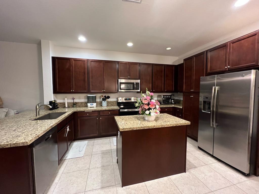 Amazing 3-bedroom, 3.5-bathroom townhome is located in the desirable Townhome at Raintree Community! Tri level townhome. The house features Espresso Shaker Cabinetry, Granite Countertops, SS Appliances, very large Island, Pantry, Spacious Master Suite w/Private Balcony, His & Her Walk-in Closets, Spa Style Bath, Dual Sink Vanity, Guest Rooms OR game room, Neutral Tile Flooring, Modern lighting. Impact doors & windows. One bedroom & full Bathroom on the first floor. Big storage room on the first floor. Residents will Enjoy Gated community, Clubhouse, Fitness Center & beautiful Pool. HOA Includes Landscaping & common areas. Neighborhood is conveniently close to Shopping centers, Dining, Entertainment, Travel, Top Rated Schools. House was cleaned professionally and ready for next owner.