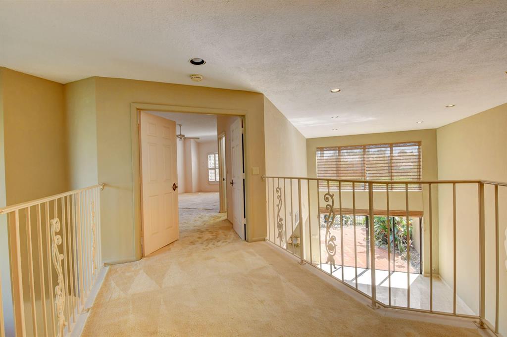 Spacious town home in popular community of Caravelle at Boca Pointe. Floor plan features soaring ceilings in main living areas, downstairs bedroom or office and master plus third bedroom upstairs both with private baths. Master has 2 walk in closets and upstairs bedroom has large walk in closet. This home is an end unit and has a beautiful side and backyard with pretty lake views. Kitchen was redone with white cabinets, granite counters and stainless appliances. Both A/C units replaced within the last 4 years. Covered patio was enclosed for additional living space and has impact glass doors. Marble floors in main living areas downstairs. Nice size laundry room with sink. Close to community pool.