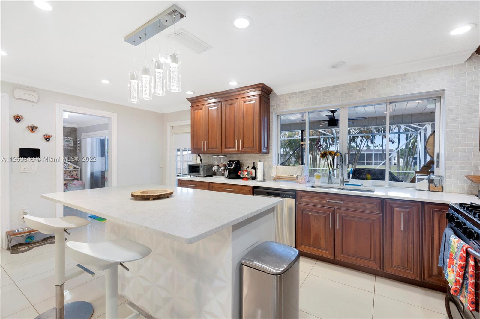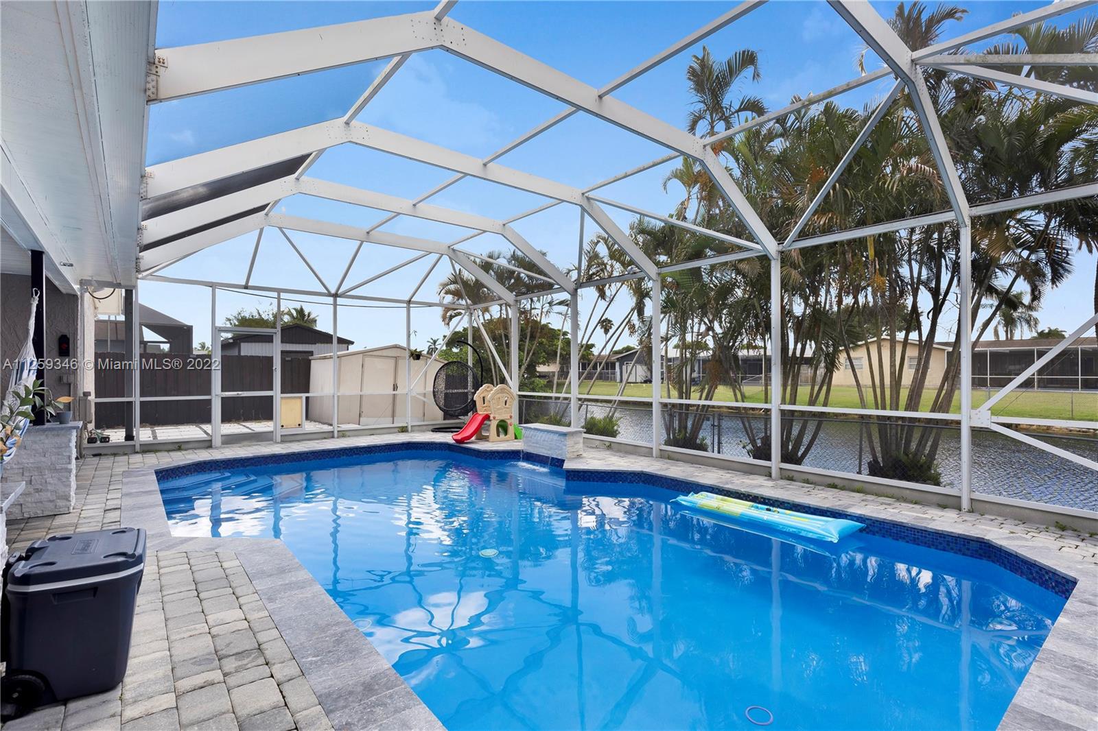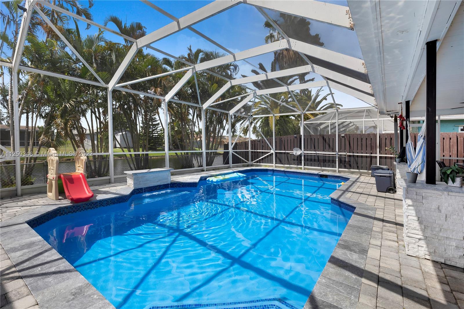 Beautiful renovated home with 2,020 Sqf, 3 bed, 2 bath, nice pool, water softener system in the whole house and the payments are included in the property tax, but seller will pay it off at closing, Italian ceramic tile, 2 car garage. Front windows and door are impact glass and rear has shutter panels. This home is located close to Schools, restaurants, shopping and entertainment.