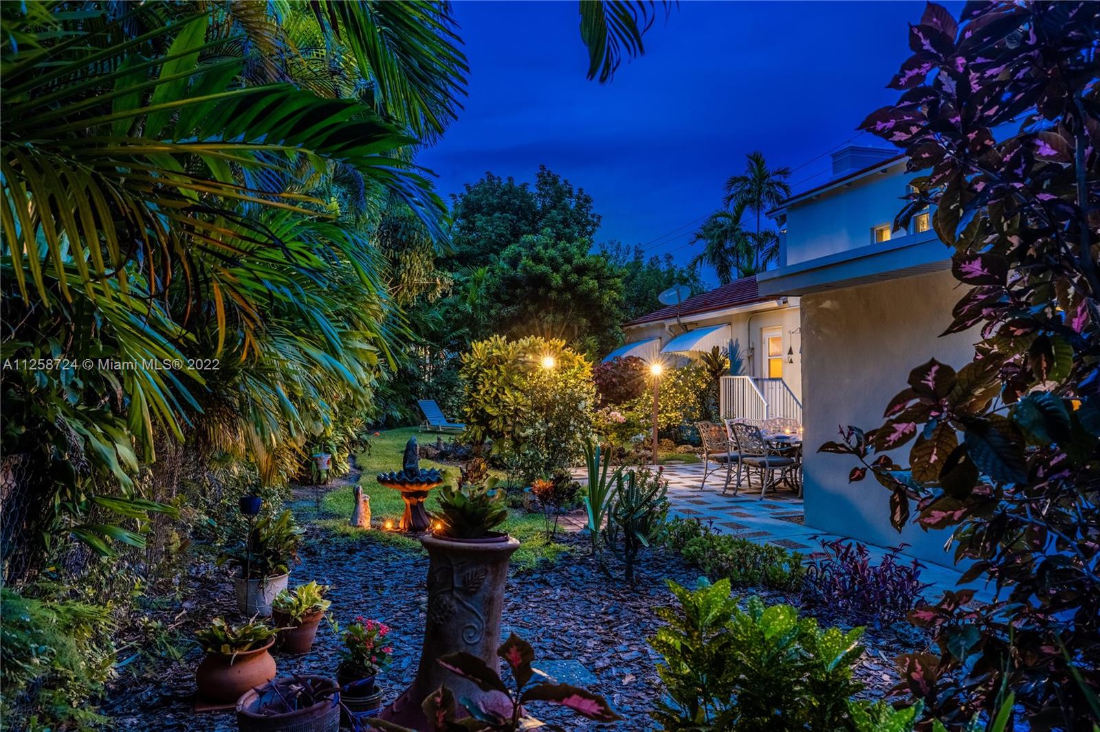 What you get is so much more than what you see in this stately Miami Shores Classic! This grand 1934 home with high ceilings, spacious rooms, iconic “love birds” carved Art Deco fireplace and great wrap-around gardens awaits your personal updates. Expansive formal living opens to bright sunroom, perfect as home office or media room; large dining; galley-style kitchen with door to lush rear relaxation and entertainment gardens, including a separate flex workshop-cabana space, great as home gym, office or zen den. One bedroom and one bath downstairs, two large bedrooms and an Instagram-ready violet deco “purple-passion” bath upstairs, impact windows-doors, two-car garage and room for expansion and pool. Endless possibilities await in a great location, just a block to downtown Miami Shores!