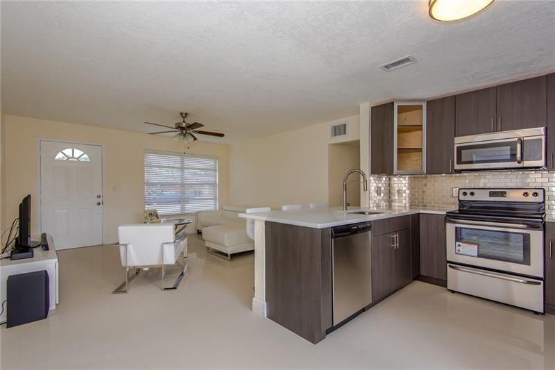 Beautiful 3 Beds / 2 Full Baths home totally upgraded in up and coming neighborhood in Davie! Porcelain floors throughout, kitchen w/ modern cabinets, quartz counter tops, back splash, top of the line s/s appliances, light fixtures, ceiling fans, knockdown walls, Remodeled baths w/ modern vanities, frameless shower doors, faucets, fence backyard for more privacy, room for pool, finish laundry room w/new washer & dryer, New water heater 2022. Great location, NO HOA!! Close to Colleges, FIU, FAU, BCC, UM, NOVA, minutes to FFL, Beaches, major highways and more.