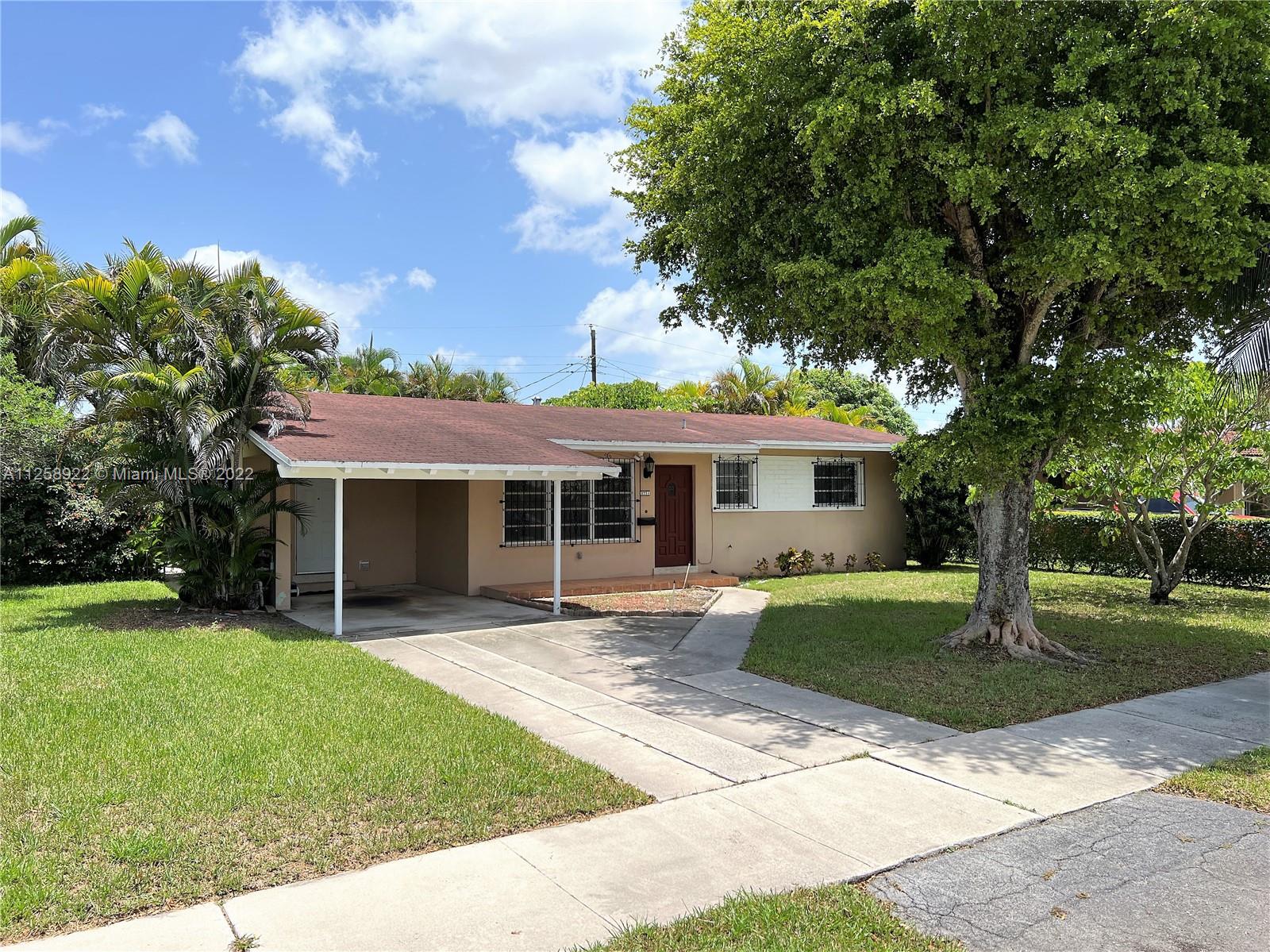 Single Family home in the desired and quiet area of Palm Springs in Hialeah. Walking distance to 49th/103 Street to restaurants, shopping, medical offices and quick access to Palmetto. This 3 beds & 2 baths home with carport sits in a 7,500 sq. ft. tropical lot with a Florida room and laundry room. Gas stove and oven uses city gas. Nice 8’ x 10’ shed in the backyard for additional storage. Sprinkler water provided from a natural well. Very quiet street near Goodlet Park. Must see it to appreciate it.
