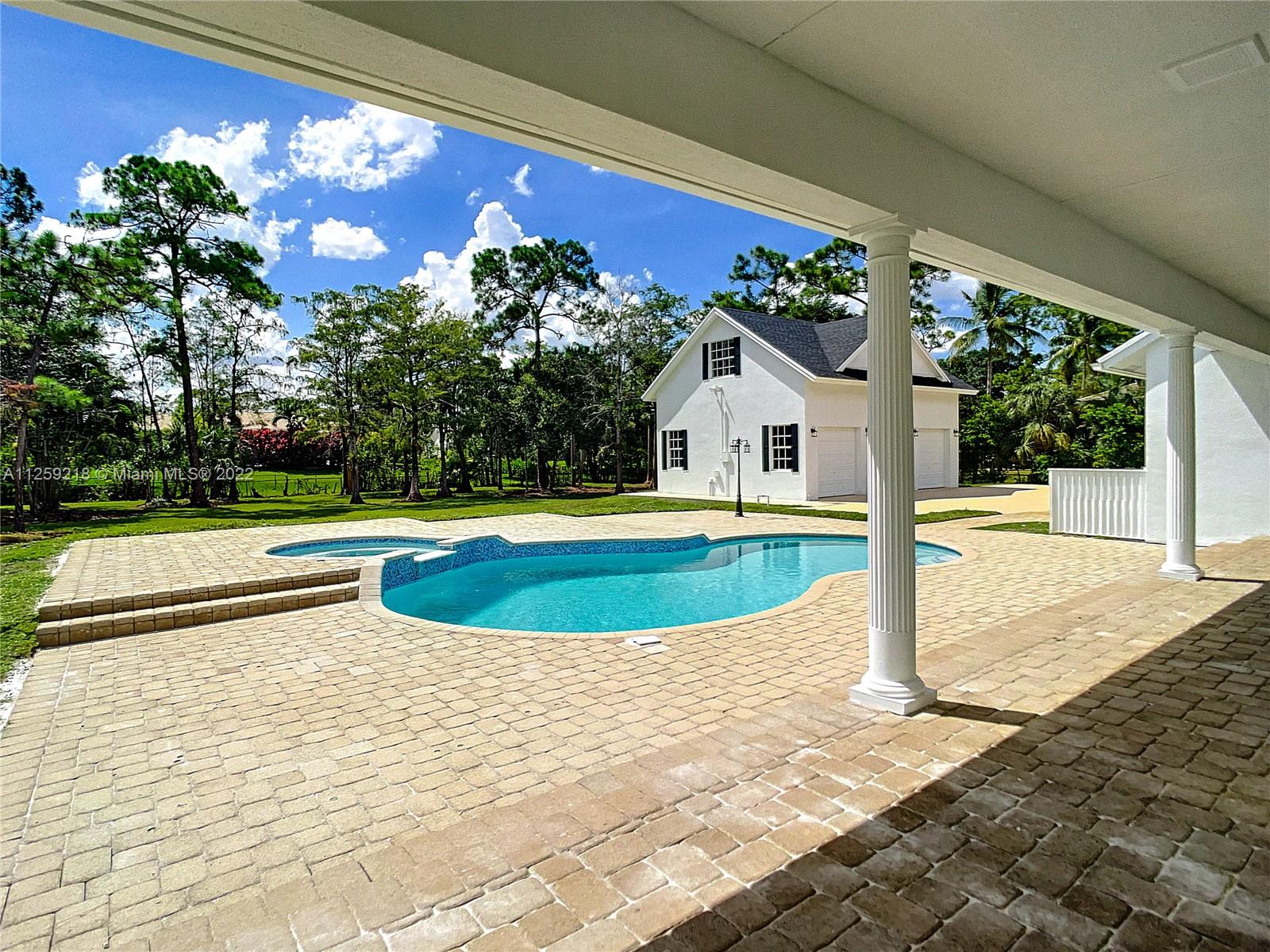 Updated Pinetree Estates under $400/SF. Completely renovated 5 Bedroom, 3.5 bath main home and additional 1 bedroom, 1 bathroom above garage apt. Over 1 acre surrounded by a ranch style fence. This home has it all--office, formal dining area, living room and huge entertainment room. New roof. New floors. New washer/dryer and brand-new GE Profile kitchen appliances. New quartz kitchen counter tops. New stone-face on the wood burning fireplace. Upgraded bathrooms. New lighting. Pool has been completely updated. 4 a/c units. 3 Car garage with epoxy flooring for easy maintenance. House comes with hurricane shutters along with plantation blinds throughout.